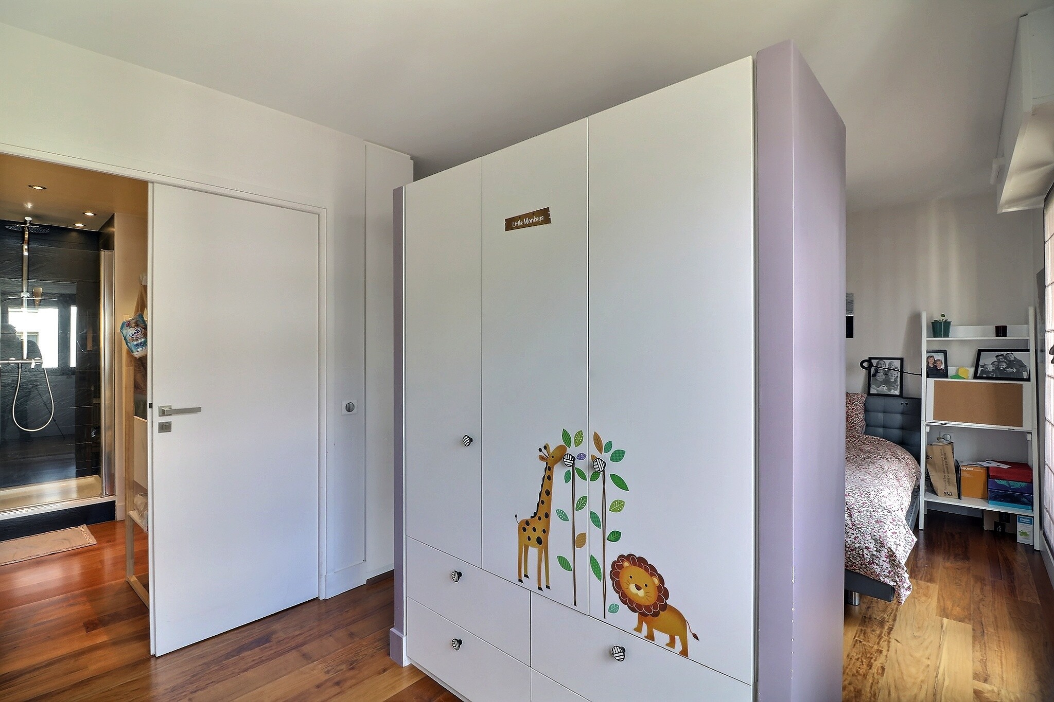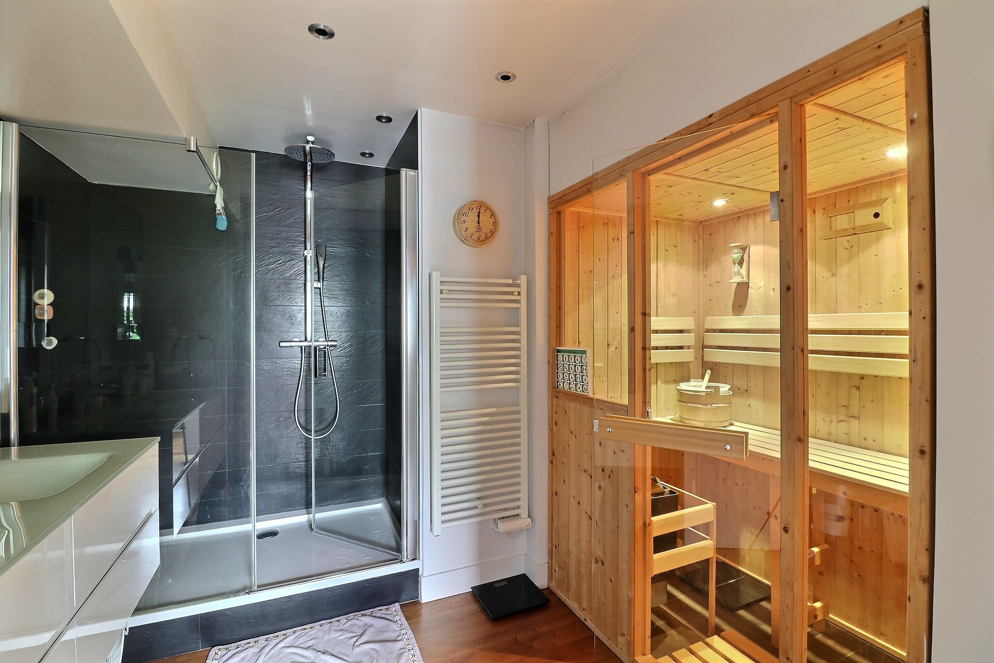 Situé au 7ème étage avec ascenseur d'un immeuble récent de standing, un appartement traversant profitant d'une terrasse et de deux balcons. Entièrement pensé par architecte, cet appartement est composé d'une entrée avec placards, d'un double séjour, d'une cuisine ouverte entièrement aménagée et équipée haut de gamme avec un espace dinatoire, l'ensemble donnant sur une grande terrasse de 26 m² avec une belle vue dégagée. Une partie nuit avec trois chambres, dont une avec une loggia et une bibliothèque sur-mesure, une salle de bain, une suite parentale avec un petit balcon, un dressing attenant, une grande salle bain équipée d'une douche à l'italienne et d'un sauna et enfin d'un toilette indépendant. L'appartement profite de nombreux aménagements de confort, un sauna, des volets électriques, système d'arrosage automatique. Deux emplacements de parking dont l'une, pré équipée véhicule électrique/hybride. une cave.