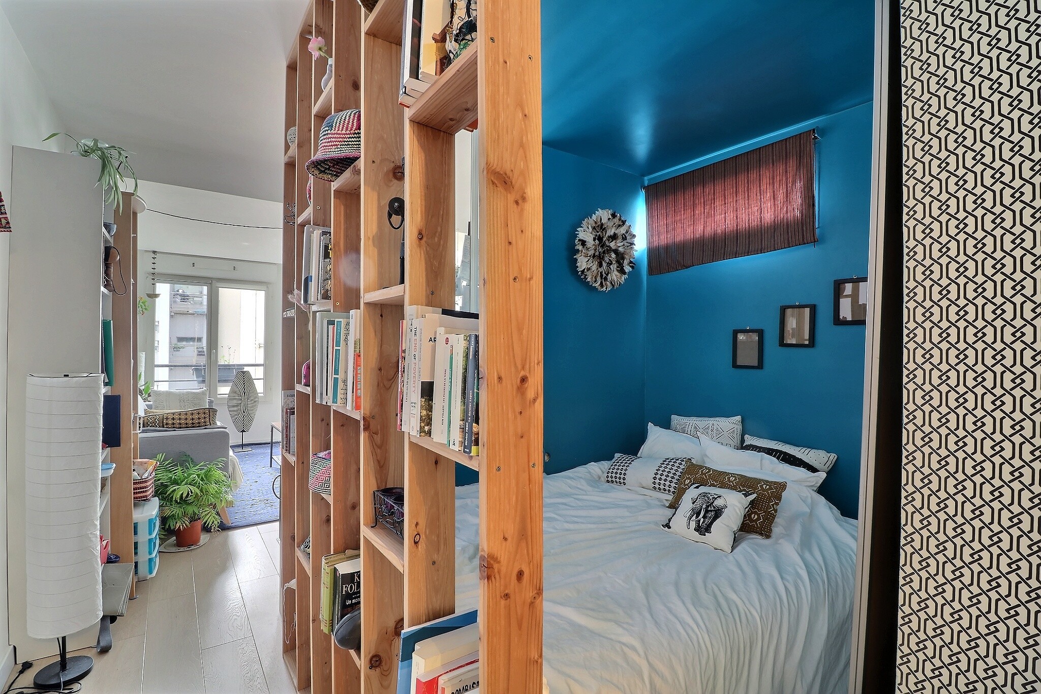 [EN'APARTÉ] vous propose, un charmant studio/alcôve de 29 m2 composé d'une pièce principale, d'une kitchenette équipée ouverte, d'un espace nuit avec placard sur mesure et d'une salle d'eau avec toilettes.
