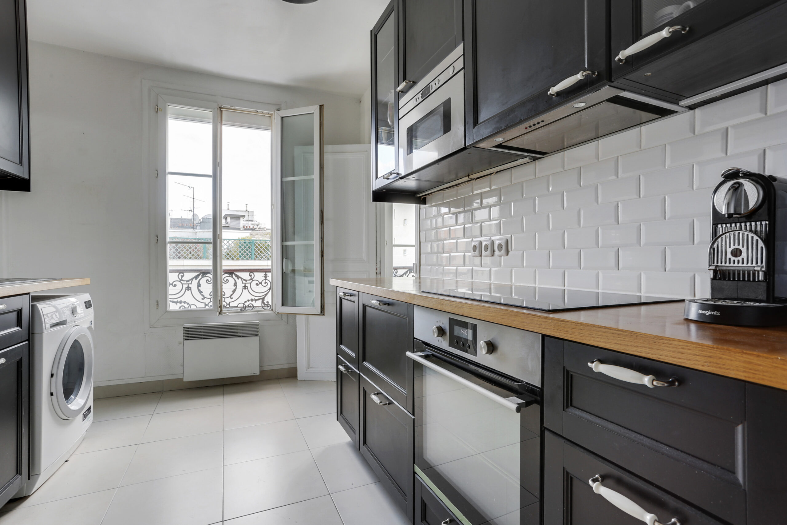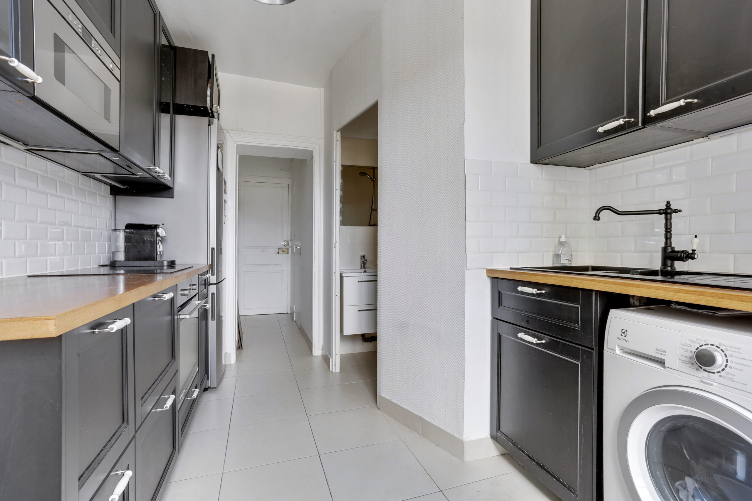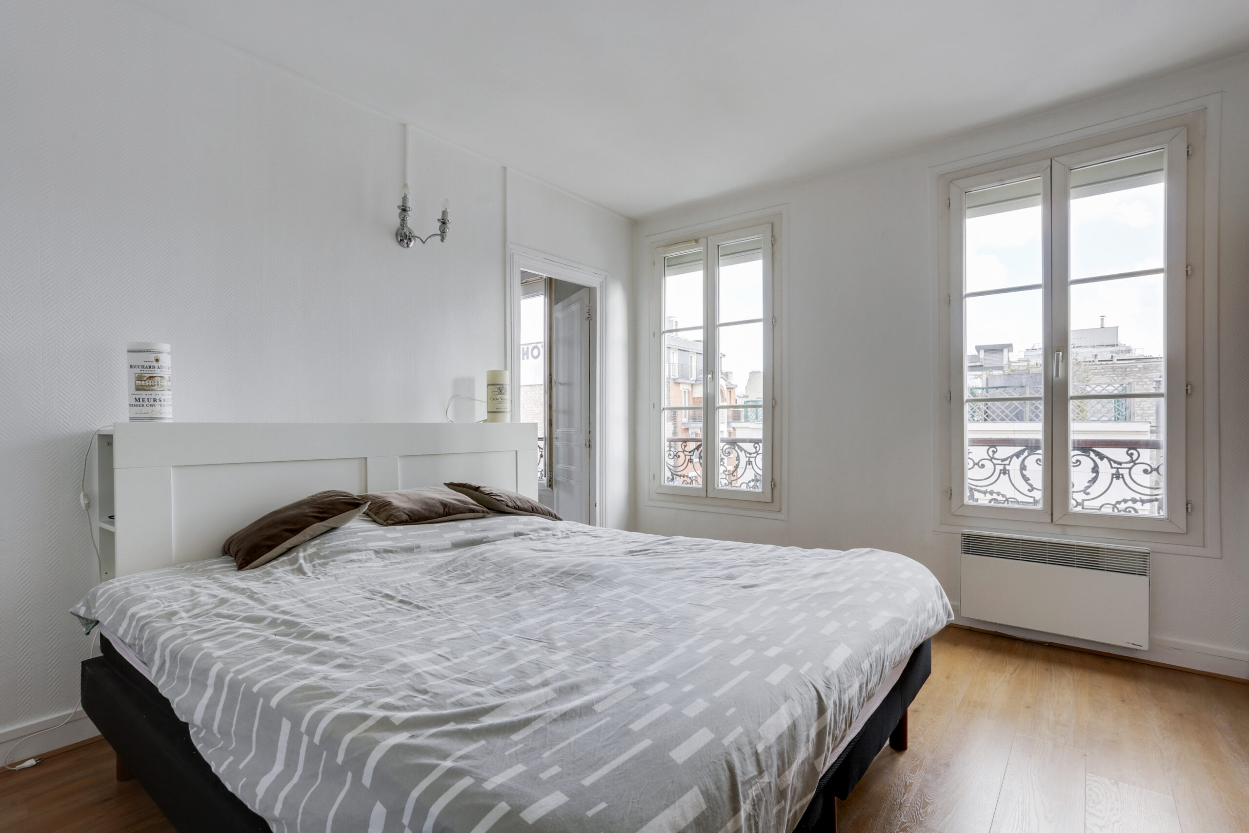 Bénéficiant d'un ensoleillement direct grâce à son exposition sud-est et d'une vue dégagé sur les toits parisiens, un 2 pièces composé d'une entrée, une cuisine ouverte, une salle d'eau, un WC séparé et une chambre.