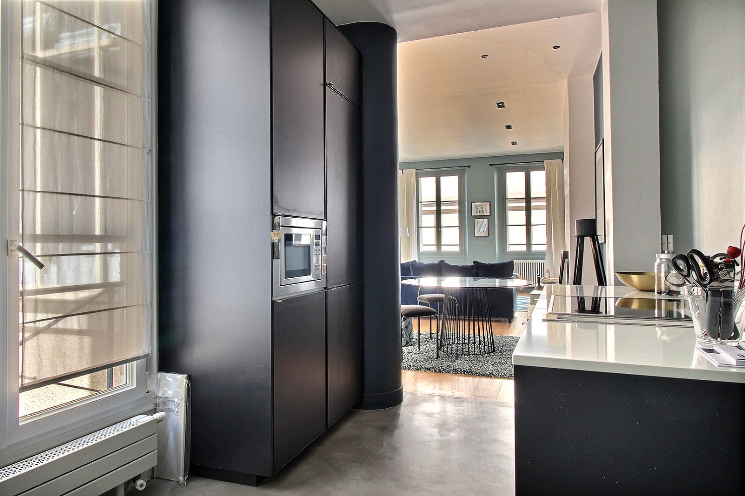 Au 2ème étage par ascenseur d'une belle copropriété, magnifique 2 pièces de 80 m2 au sol (79,08m2 Carrez) entièrement rénové composé d'une entrée, d'un séjour traversant, d'une cuisine semi-ouverte, aménagée et équipée, d'une chambre avec dressing, d'un espace bureau, d'une salle de bains et d'un toilette séparé. Une cave complète cet ensemble. Rénové avec goût et offrant de beaux volumes, cet appartement bénéficie d'un environnement calme et lumineux
