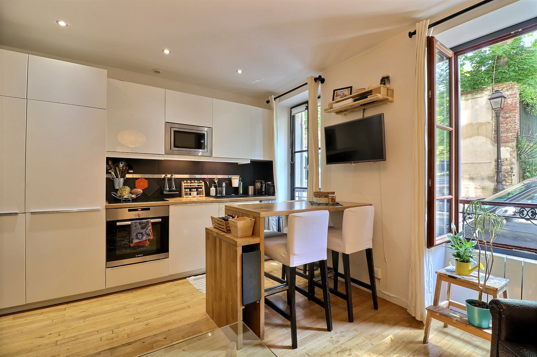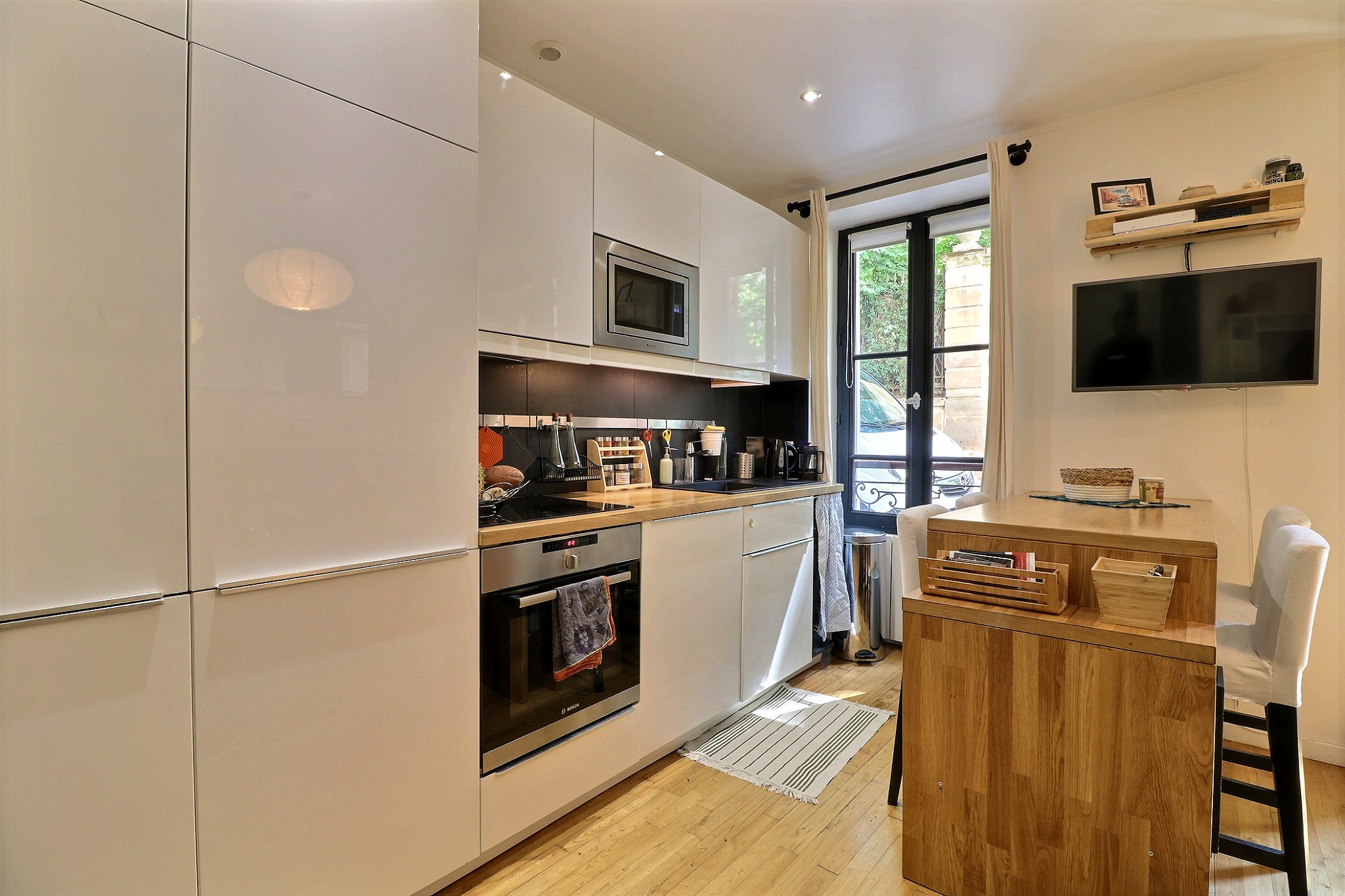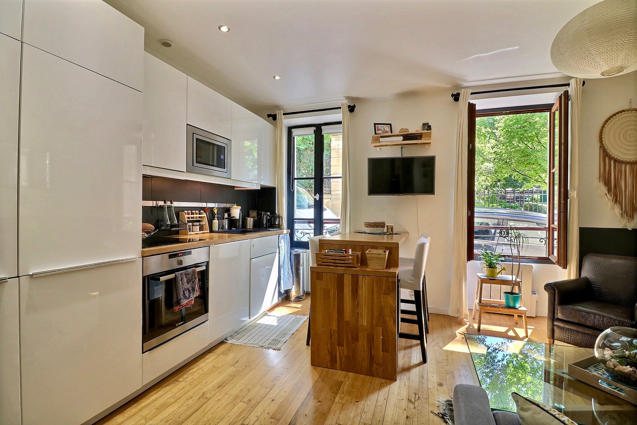 Situé au RDC d'un bel haussmannien parfaitement entretenu, un studio/alcôve profitant d'un plan sans perte de place et d’une vue dégagée. Entièrement refait et offrant de belles prestations, il se compose d’une entrée, d’une pièce principale avec une cuisine ouverte aménagée et équipée haut de gamme, d’une chambre/alcôve avec placards sur-mesure et une salle d’eau avec douche à l’italienne. Cet appartement a su conjuguer esprit contemporain et charme de l’ancien. Son absence de vis-à-vis et sa vue dégagée et son exposition Est lui confèrent une bonne luminosité tout au long de la journée. Une cave agrémente ce bien.