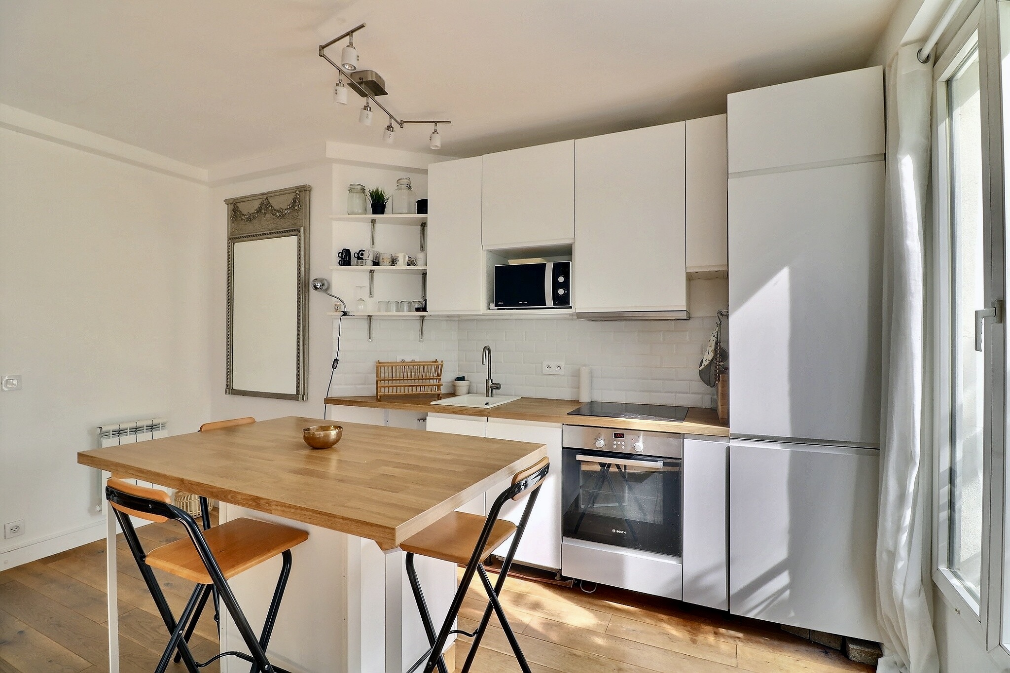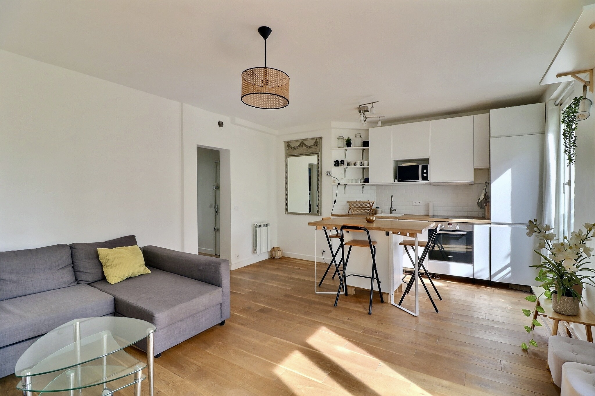 Cet appartement parfaitement agencé a su conjuguer esprit contemporain et charme de l'ancien. Son caractère traversant, son exposition plein Sud et sa vue dégagée, lui confèrent une bonne luminosité tout au long de la journée.