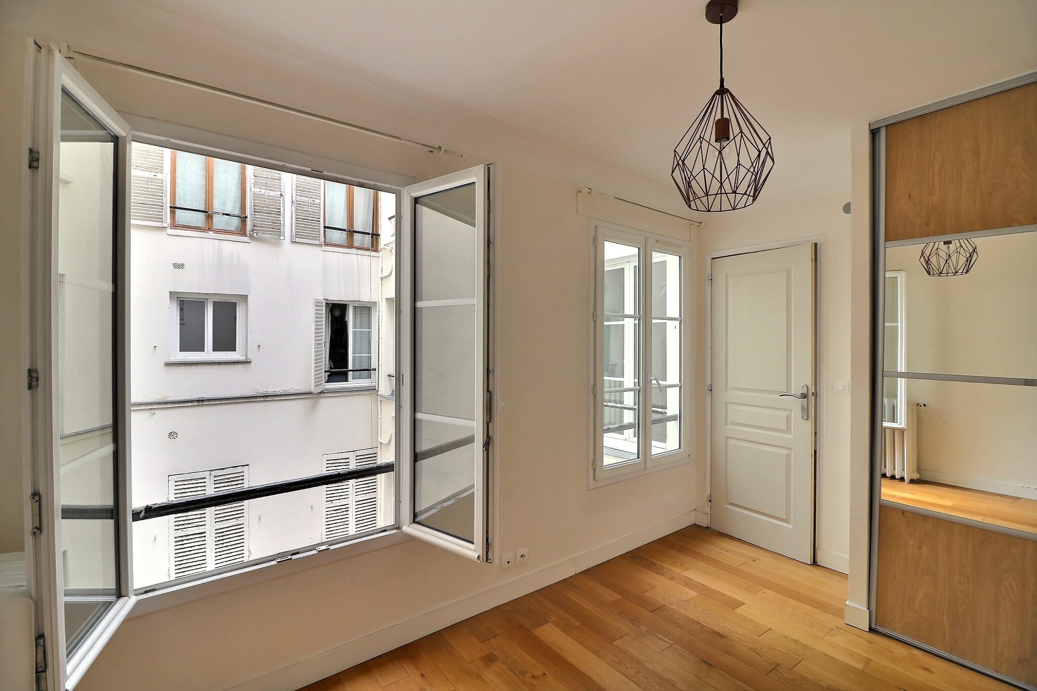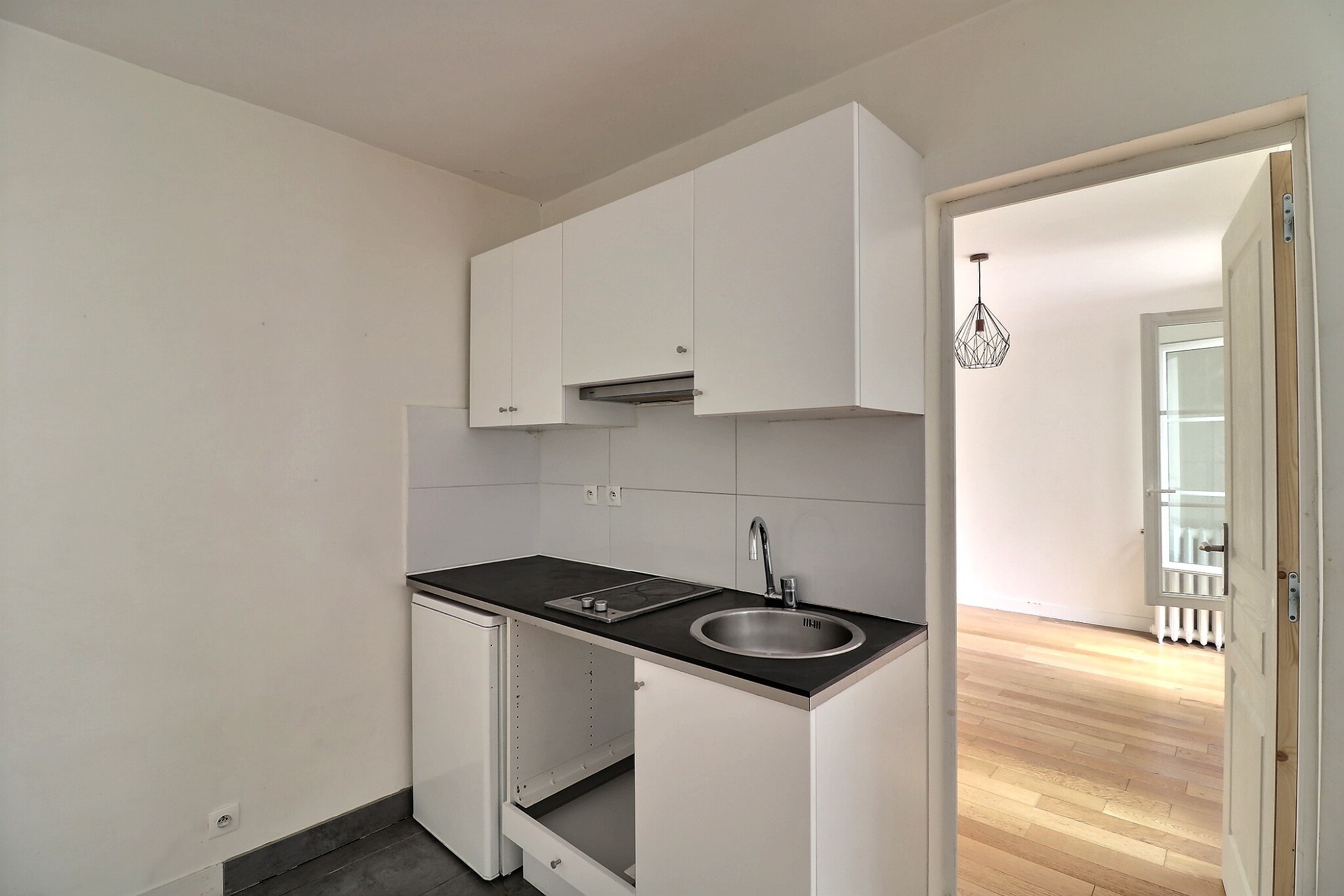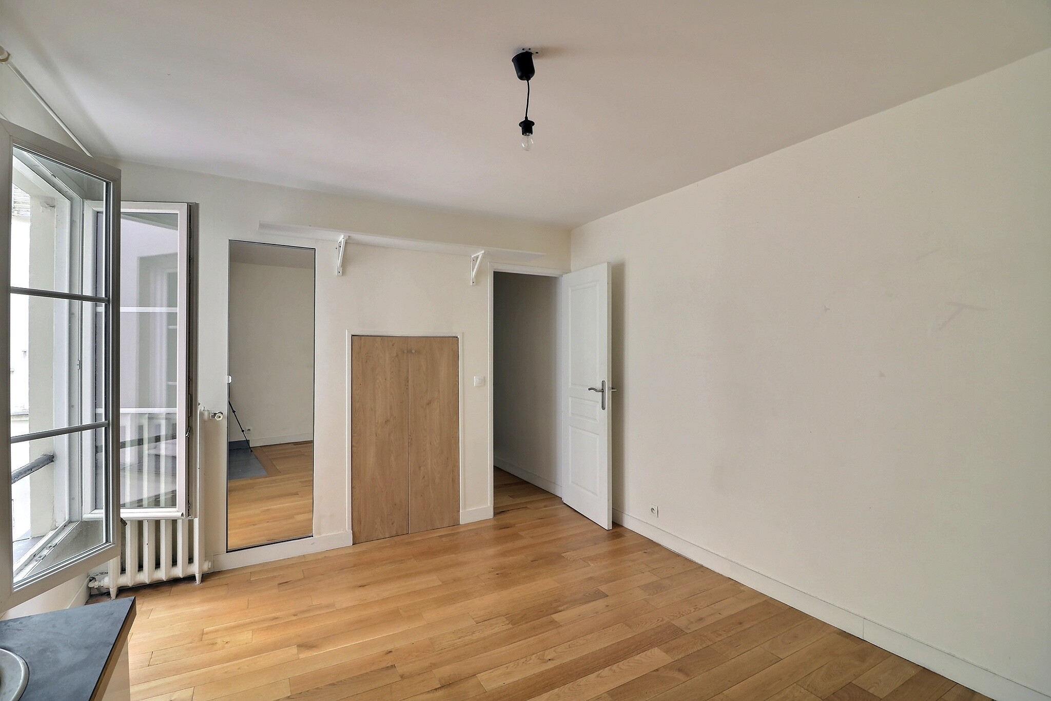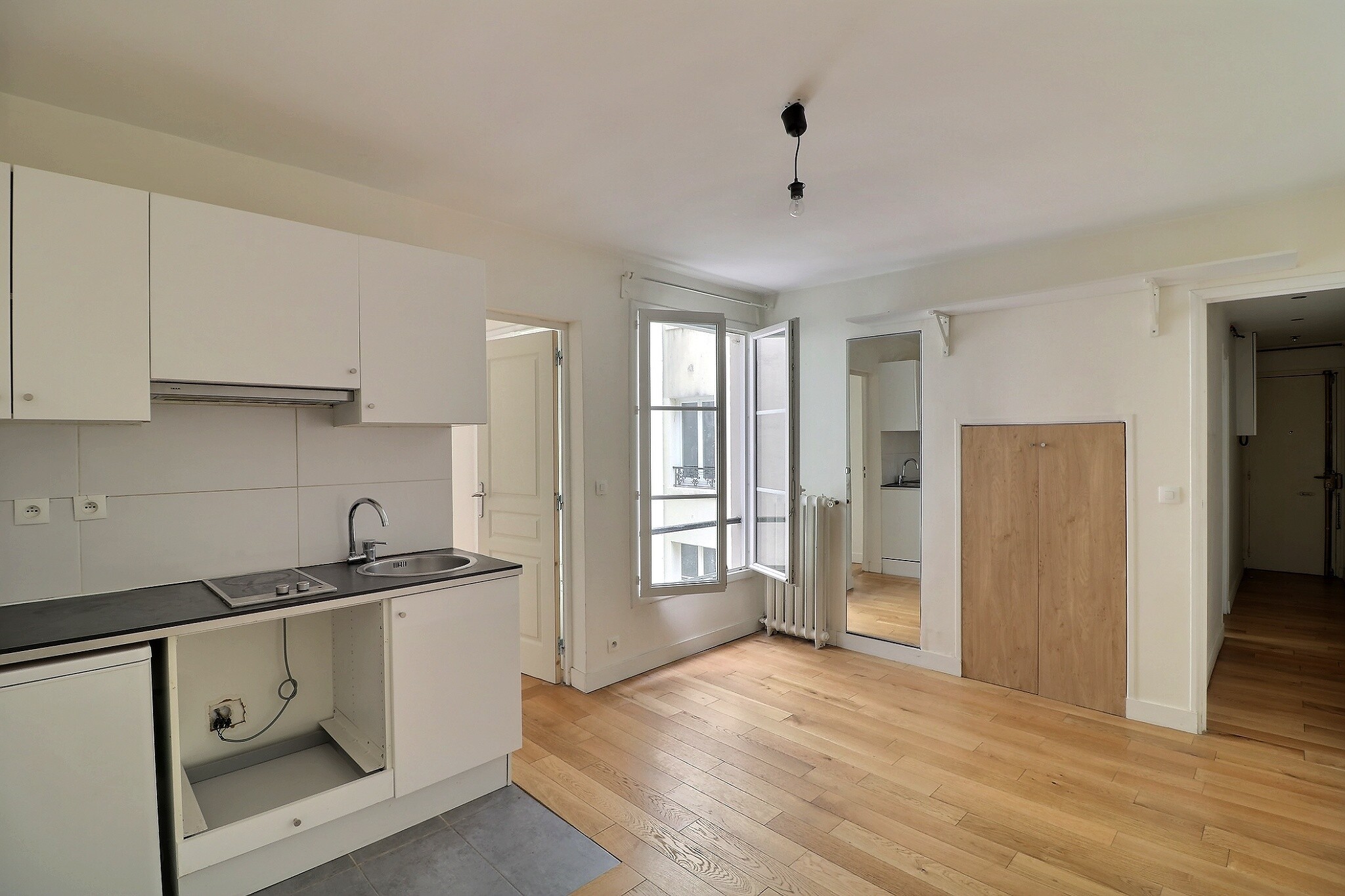 Donnant sur cour au calme absolu, ce 2 pièces est composé d'une entrée, d'un pièce principale avec une kitchenette aménagée ouverte, d'une chambre avec placard, d'une grande salle d'eau avec douche et un toilette.