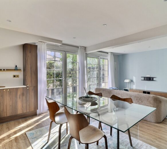 Ses grandes fenêtres, sa hauteur sous plafond, son exposition plein ouest et sa vue dégagée lui confèrent une excellente luminosité tout au long de la journée.