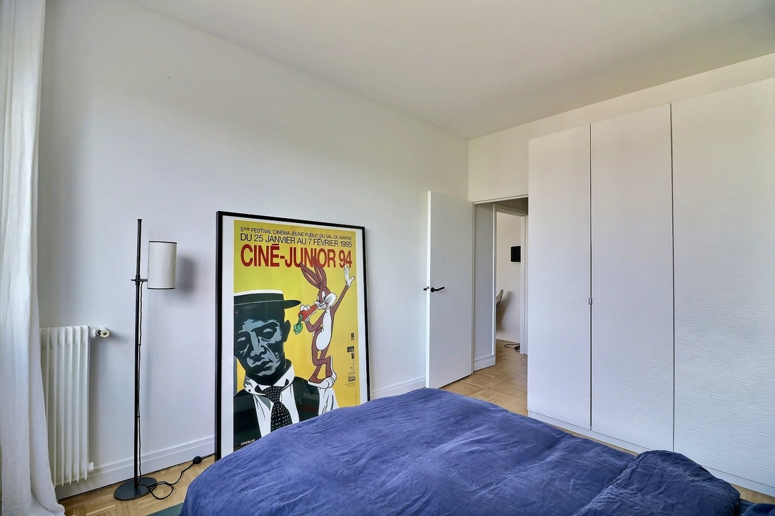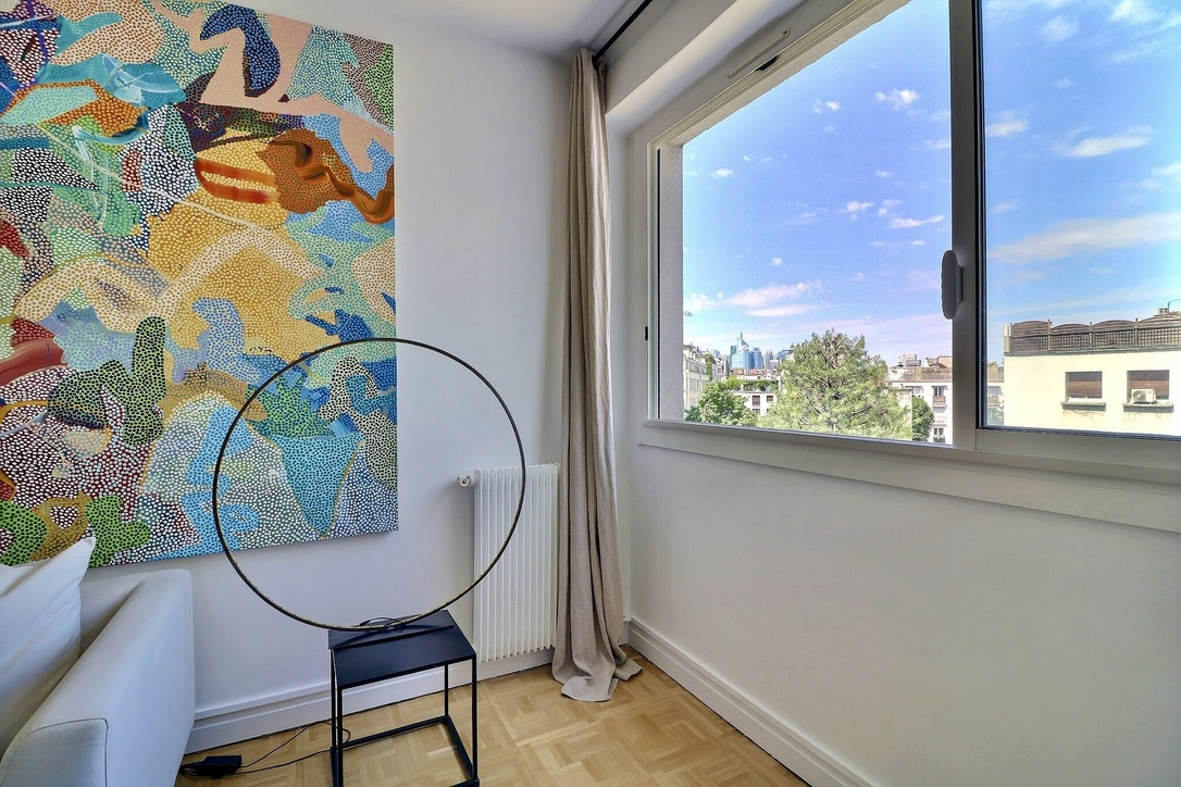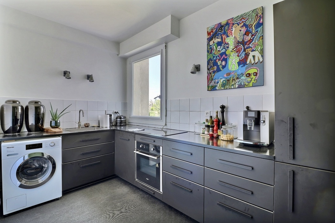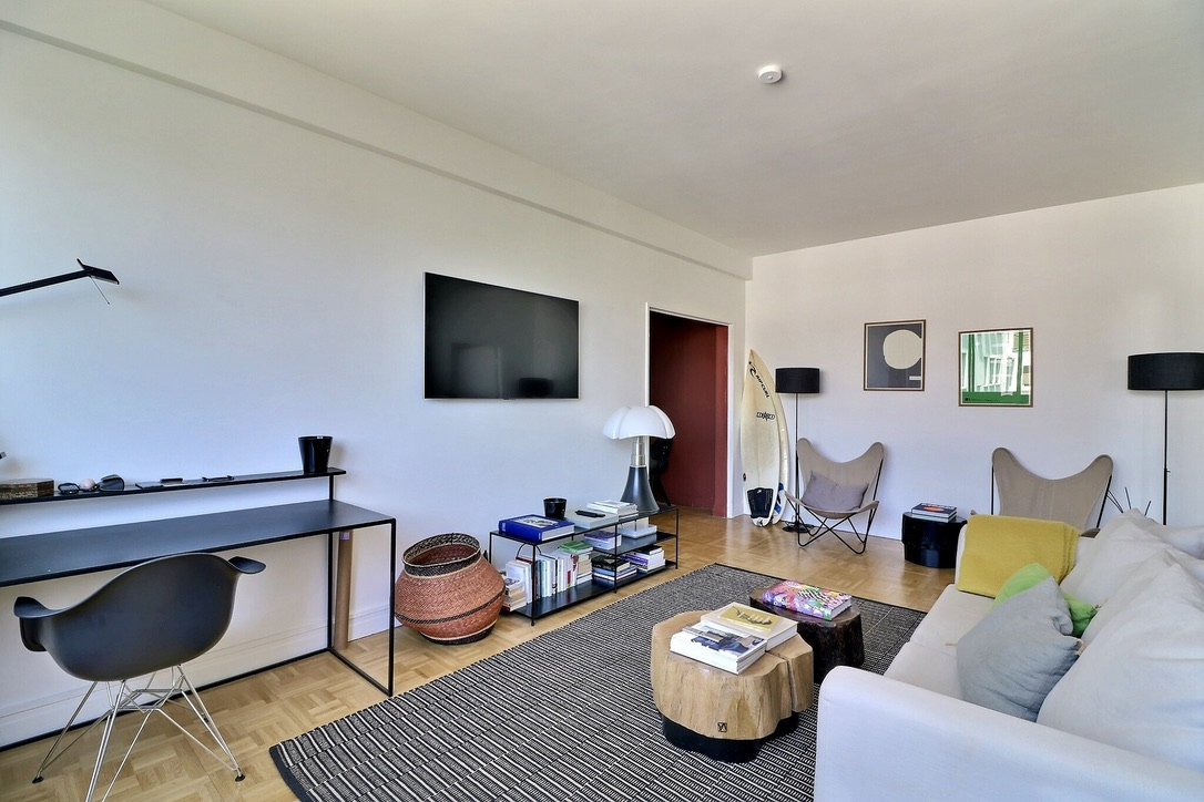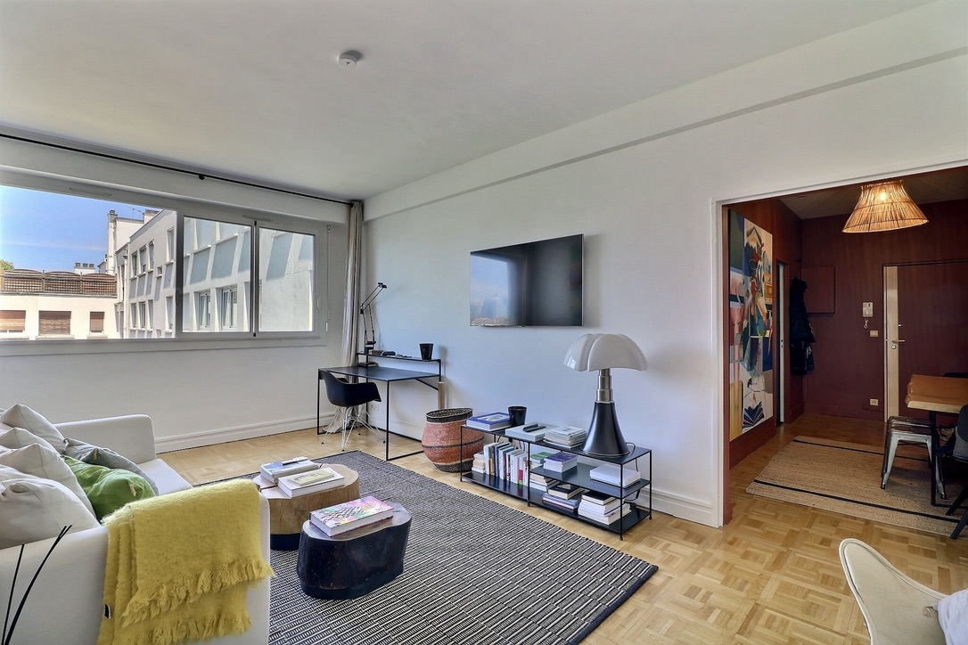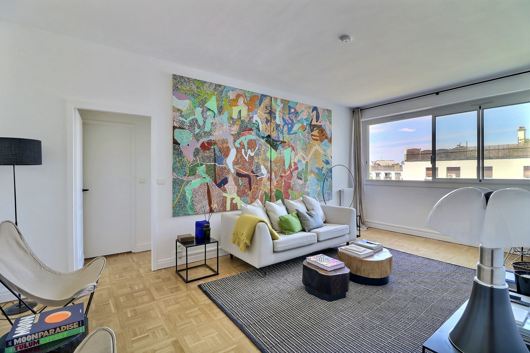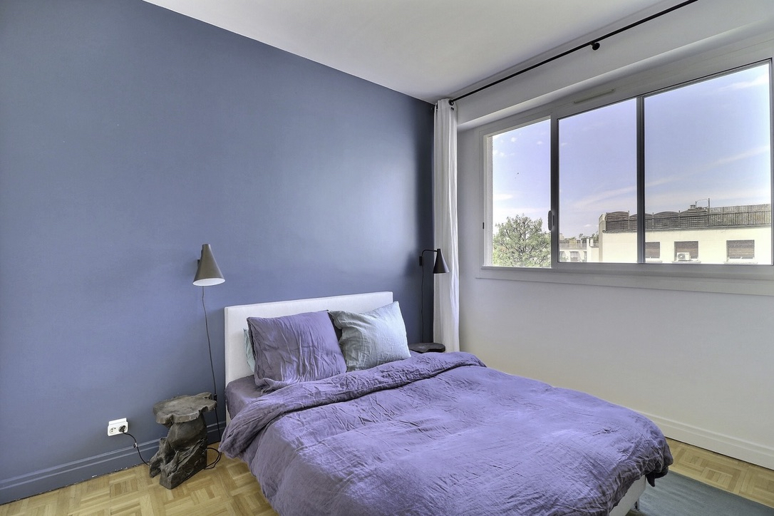Ses nombreuses fenêtres, son exposition et son étage élevé lui confèrent une bonne luminosité tout au long de la journée. L’ensemble de l’appartement donne entièrement sur cour au calme absolu.