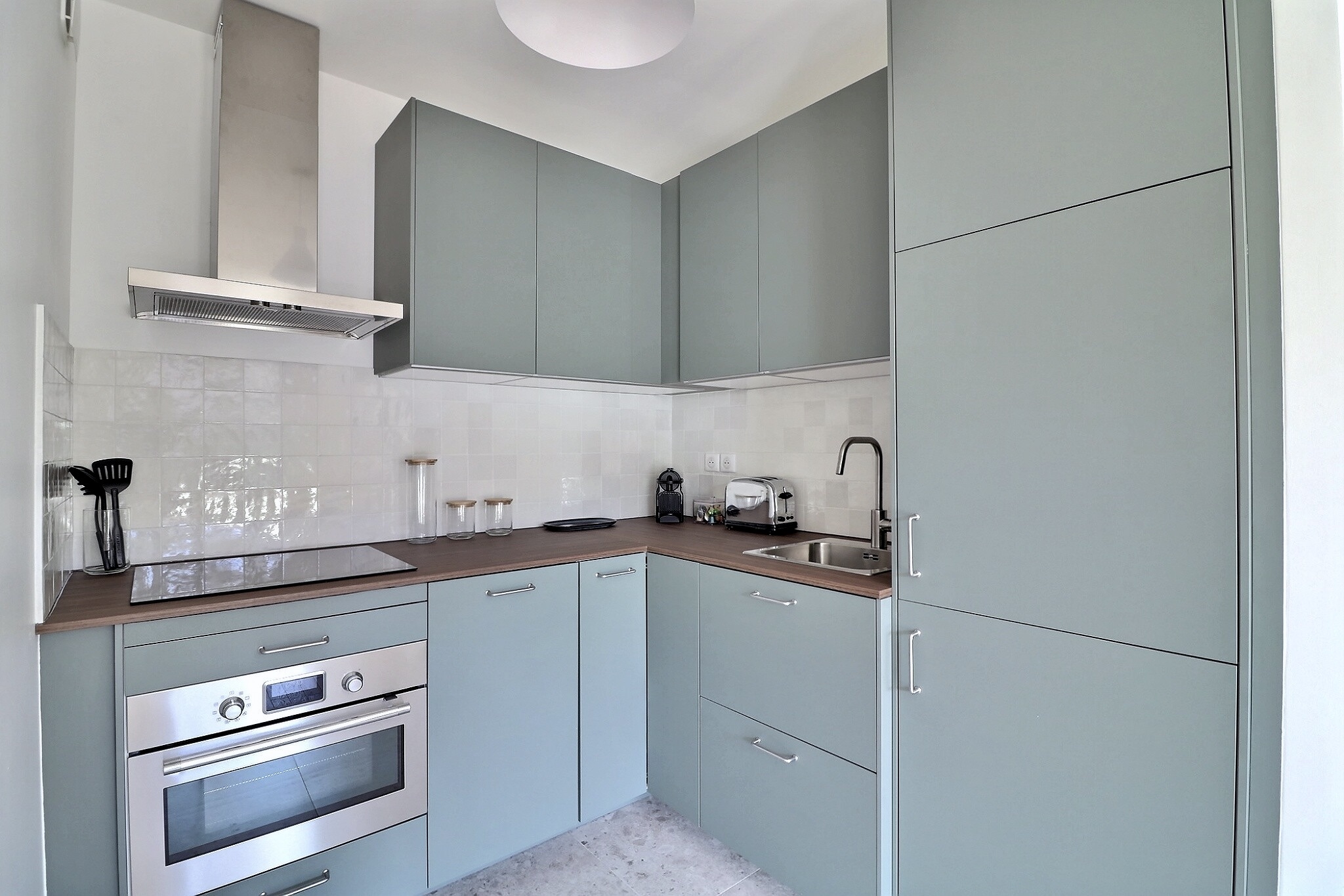 Au 2e étage avec ascenseur, un superbe deux pièces entièrement meublé composé d'une entrée avec placards, d'un séjour de 20 m² avec une cuisine ouverte aménagée et équipée haut de gamme, l'ensemble donnant accès à un grand balcon exposé plein Sud, une chambre avec placards sur mesure et une salle de bain attenante et un toilette indépendant.