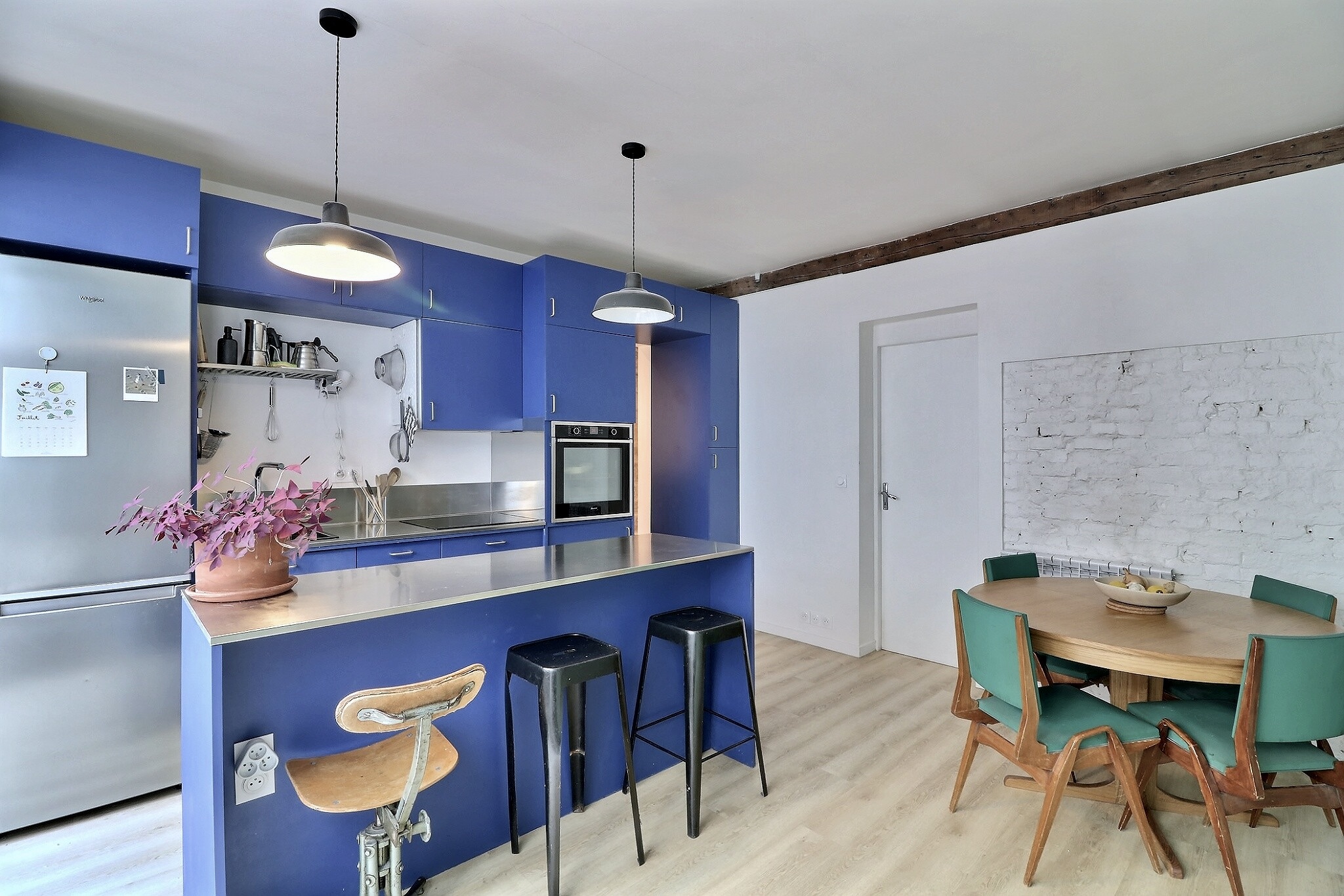 Cet appartement a su conjuguer esprit contemporain et charme de l'ancien, il profite de nombreux aménagements de confort, tel que des verrières ouvrantes et de nombreux murs doublés et isolés.