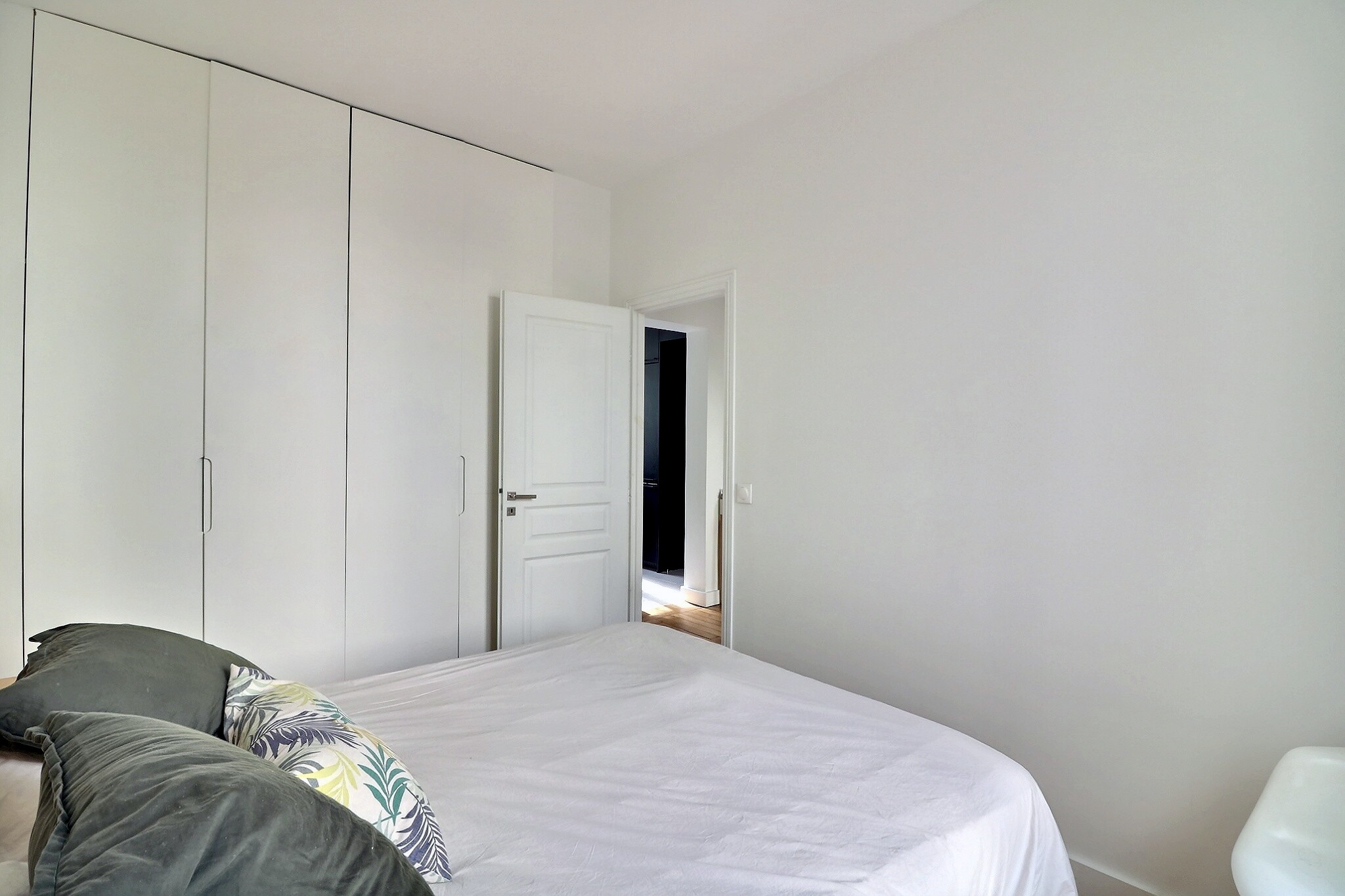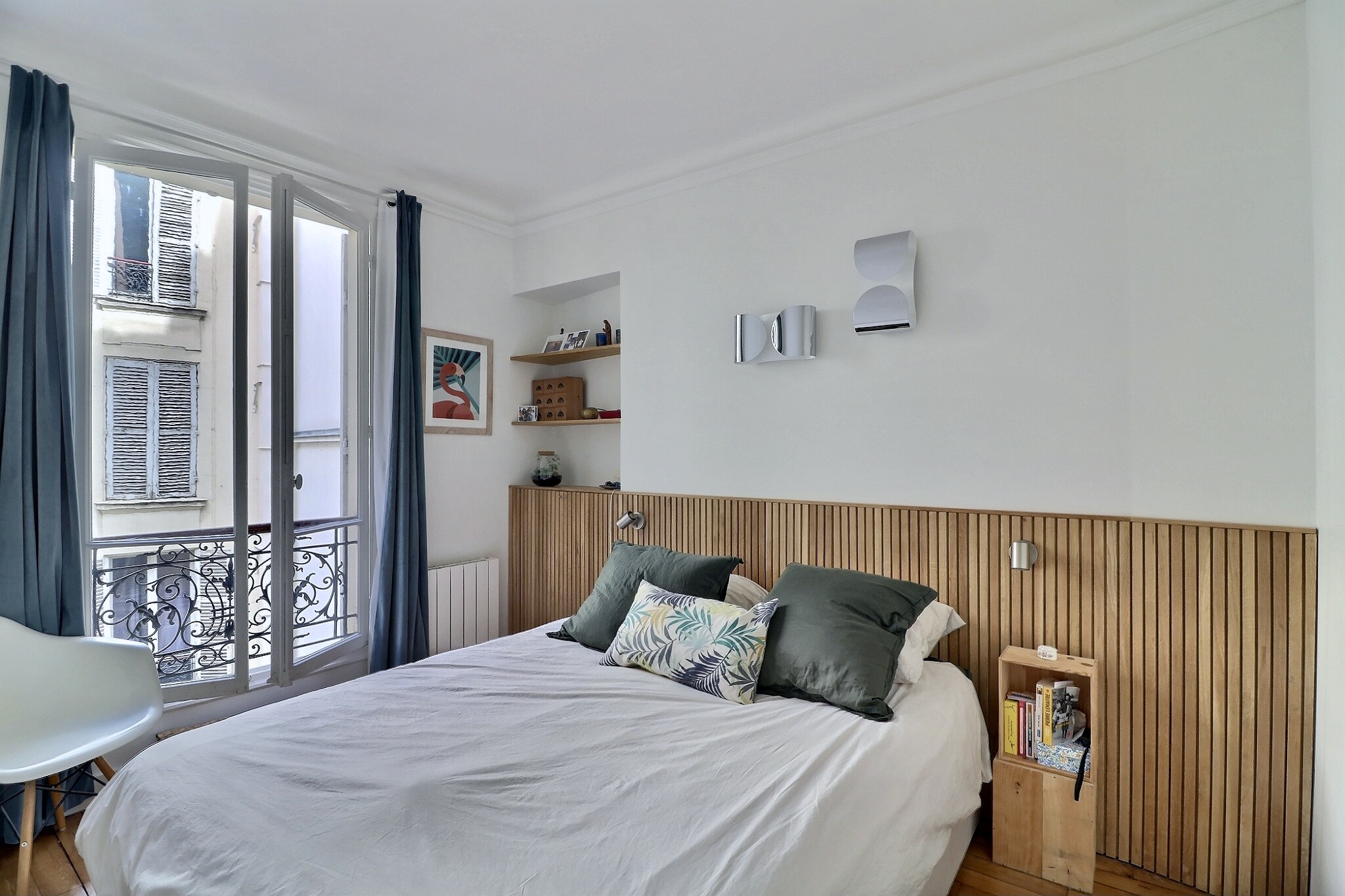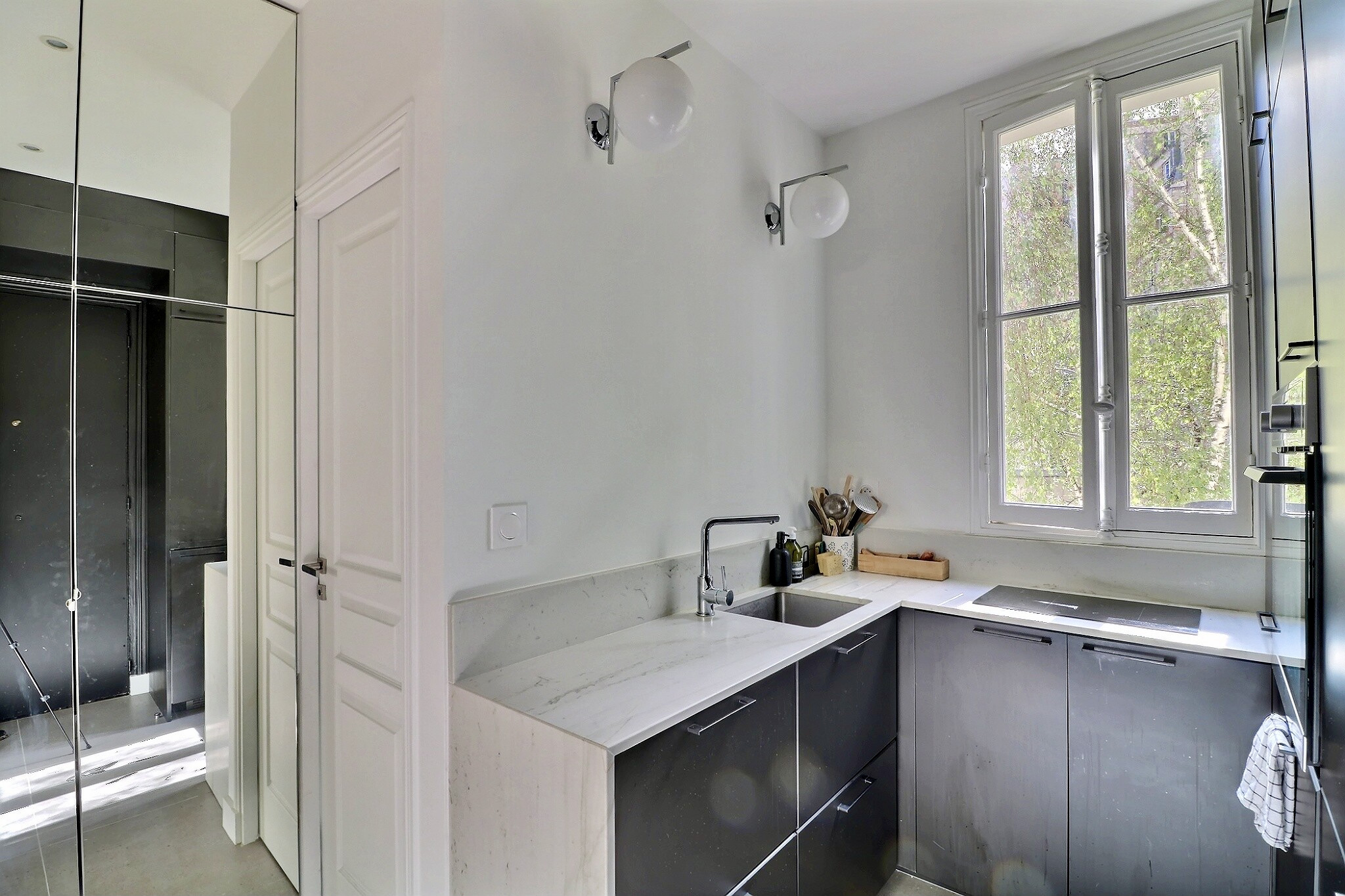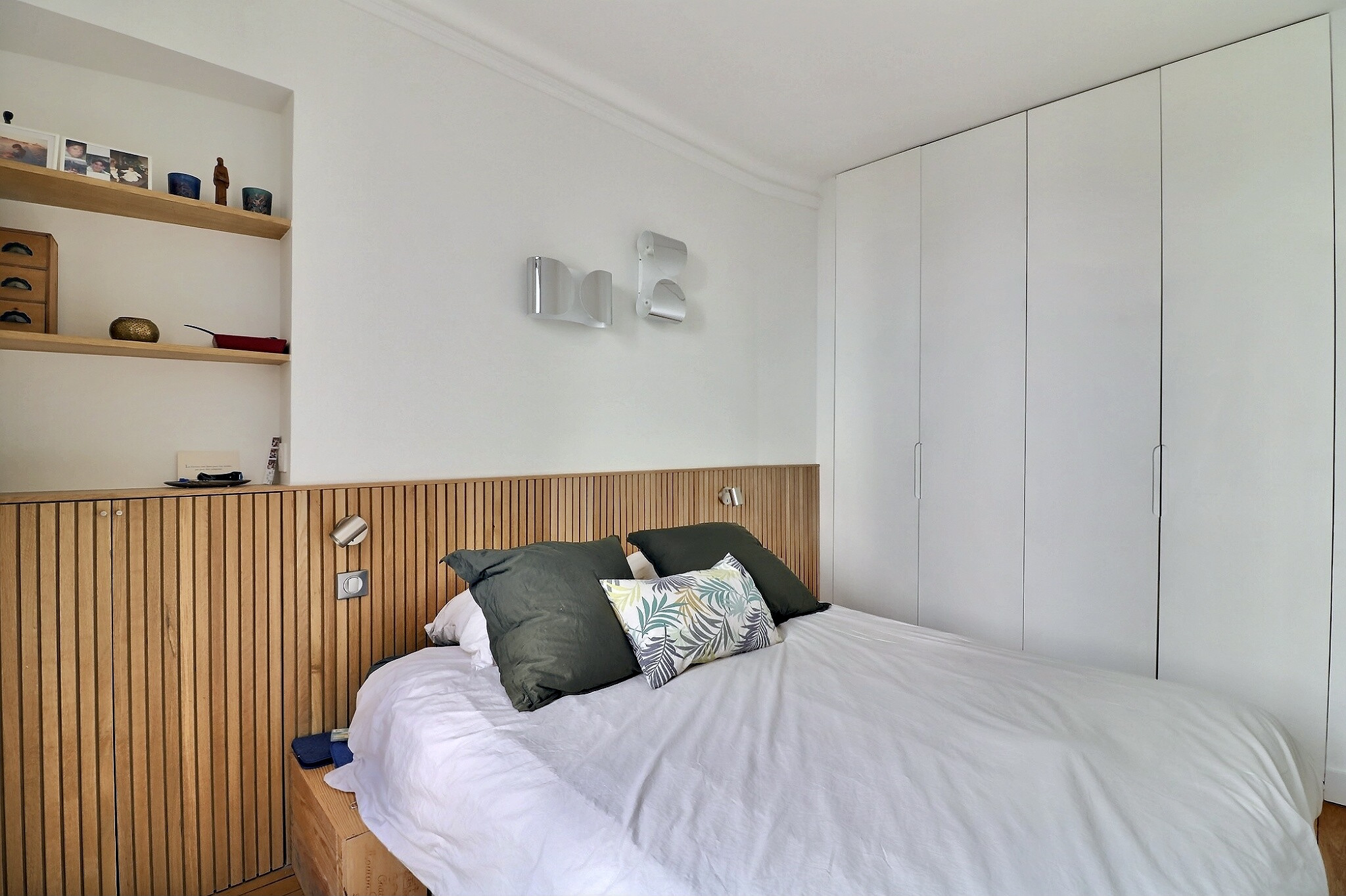 Entièrement refait par architecte et offrant de belles prestations, ce 2 pièces est composé d’une entrée avec placards, une cuisine ouverte aménagée et équipée, un séjour, d’une chambre au calme sur cour avec des placards sur-mesure, une salle d’eau avec un toilette.