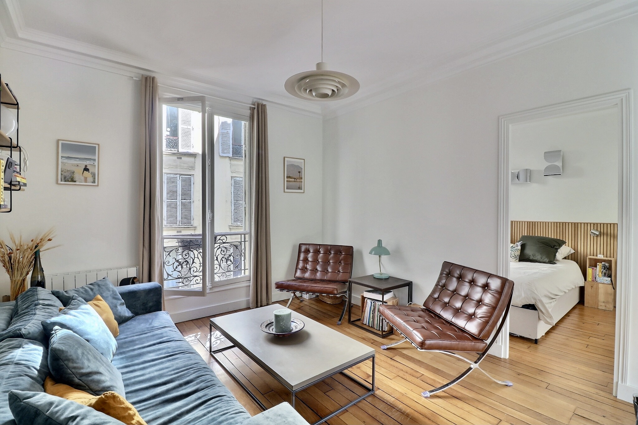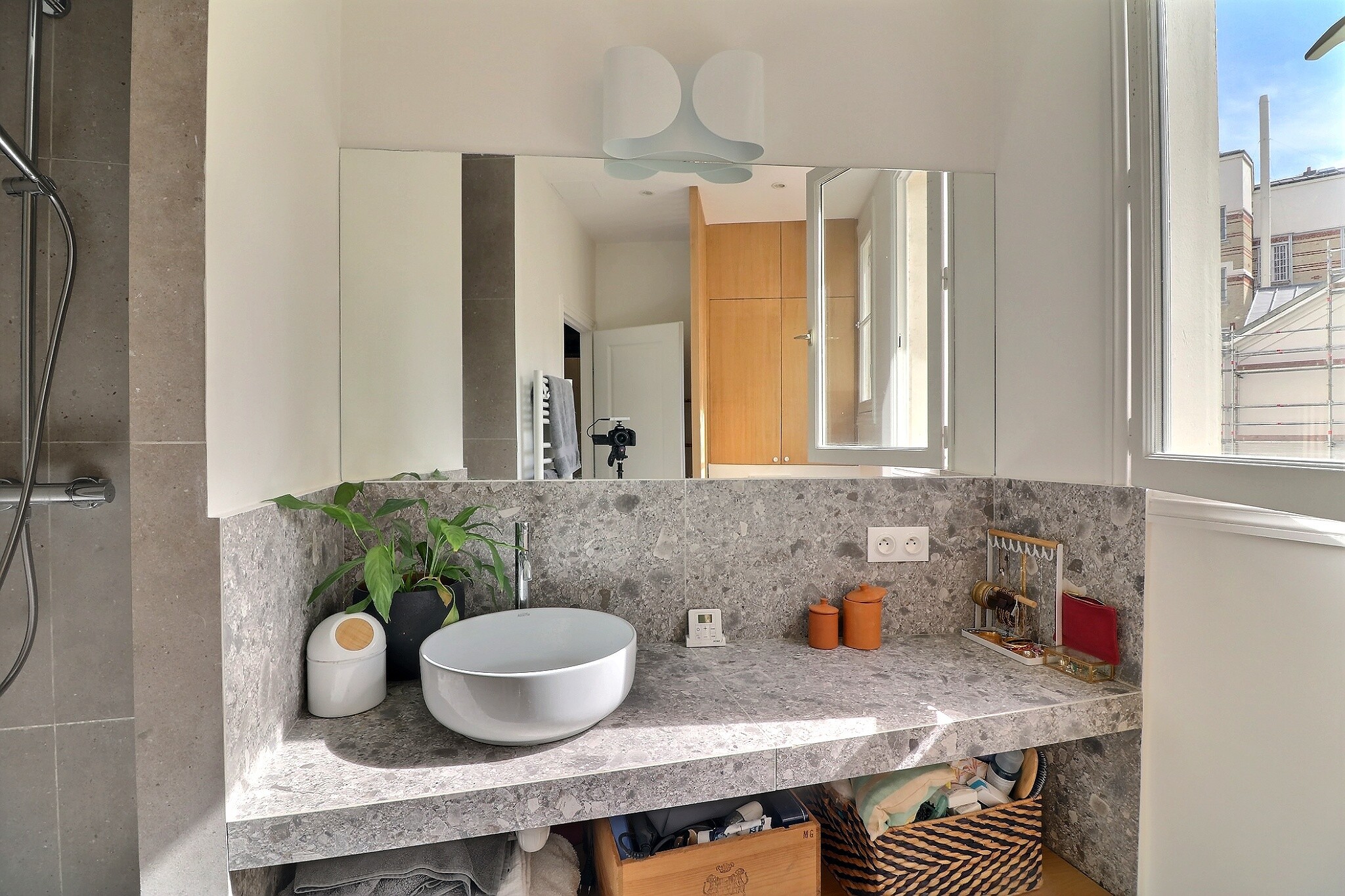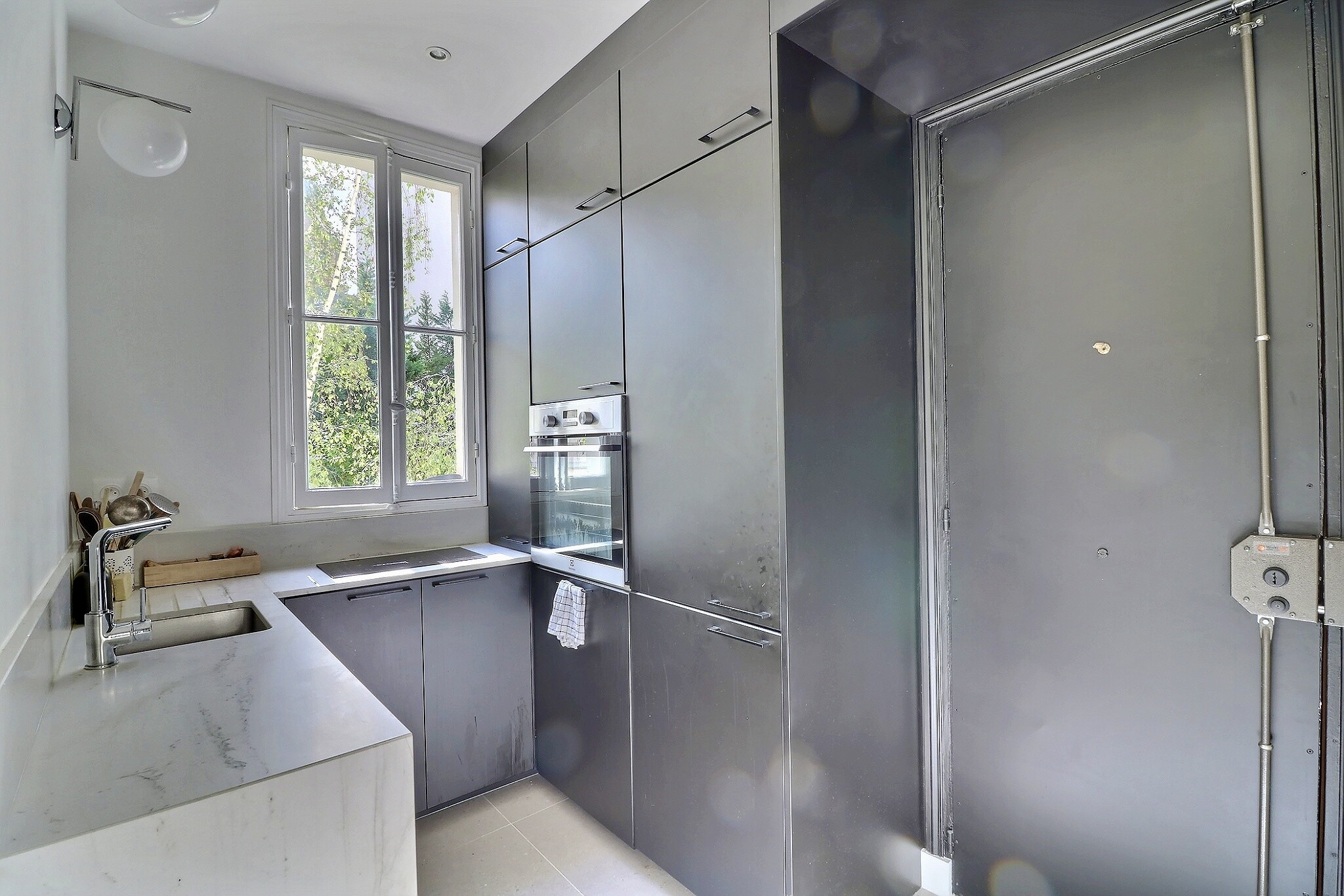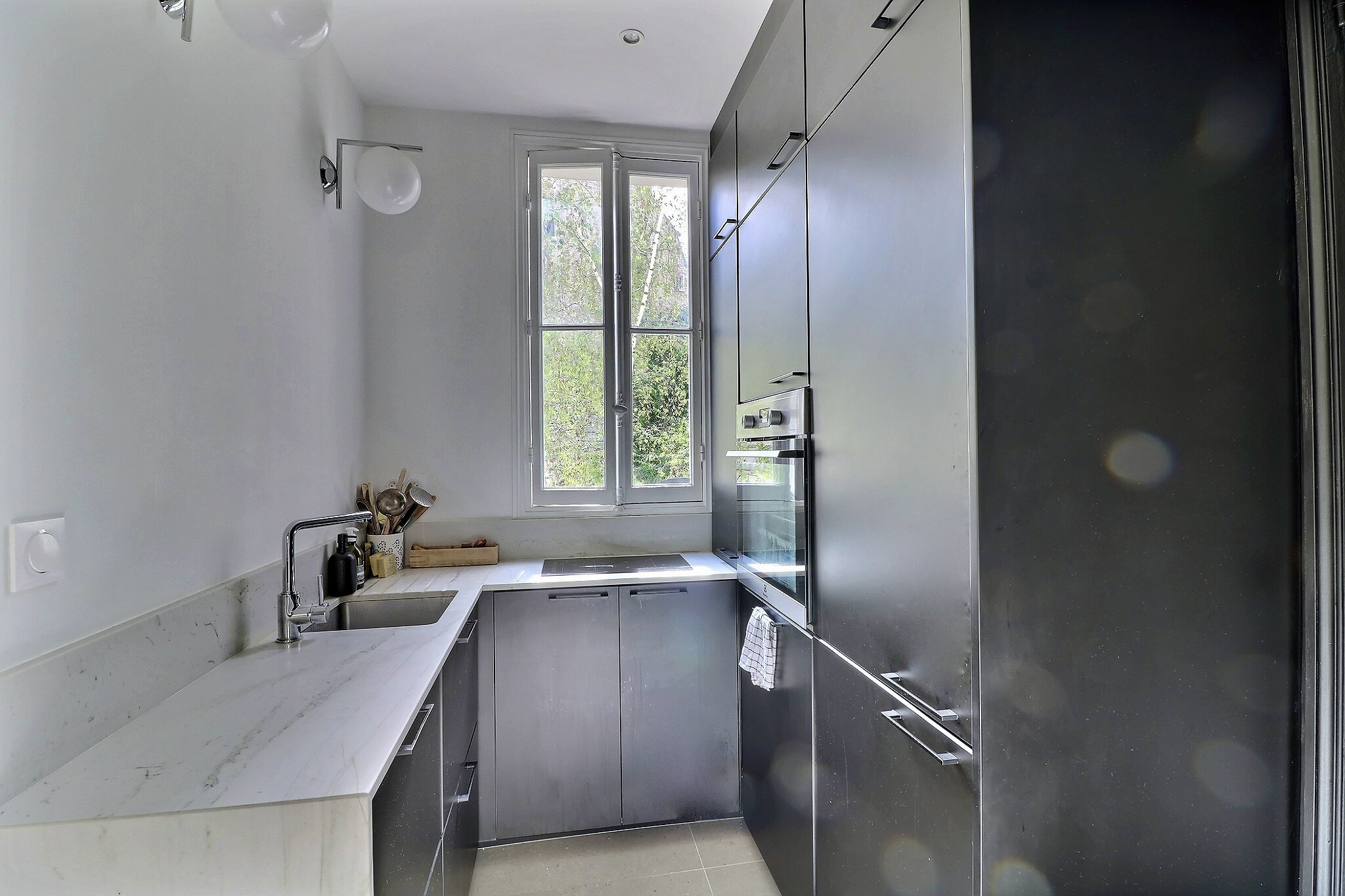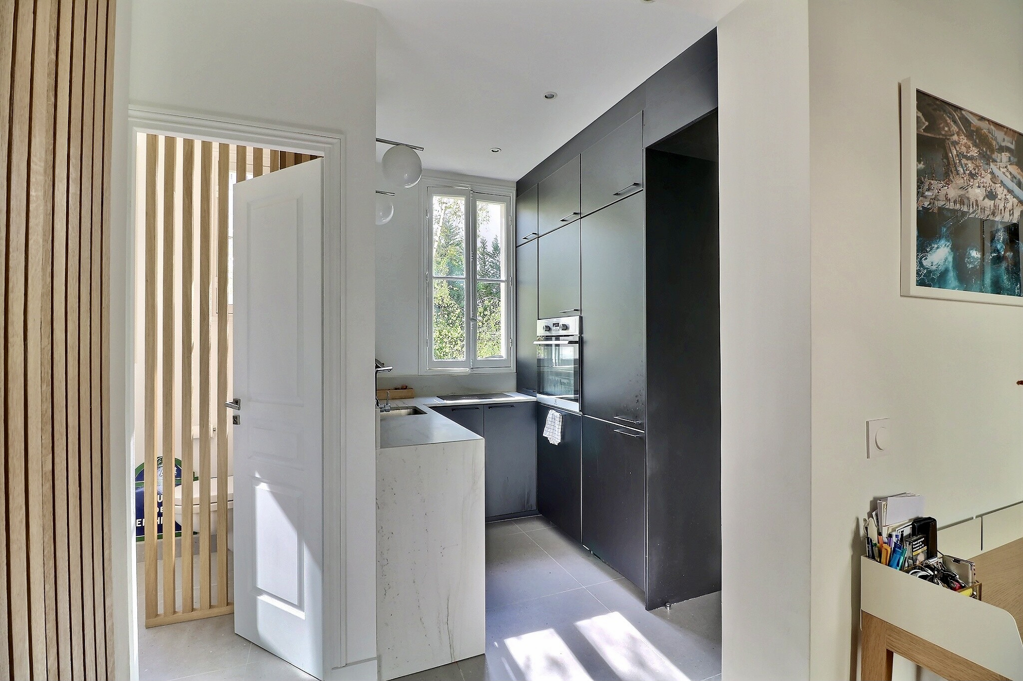 Entièrement refait par architecte et offrant de belles prestations, ce 2 pièces est composé d’une entrée avec placards, une cuisine ouverte aménagée et équipée, un séjour, d’une chambre au calme sur cour avec des placards sur-mesure, une salle d’eau avec un toilette.