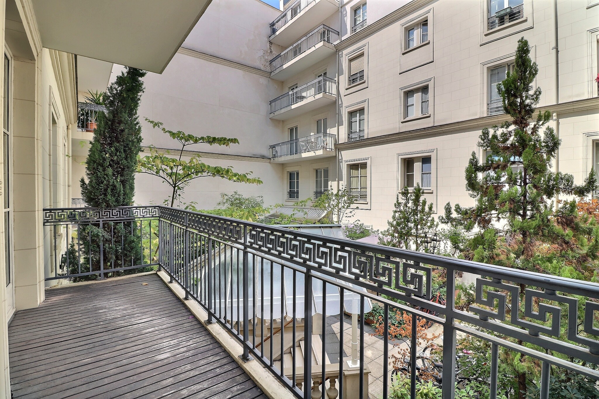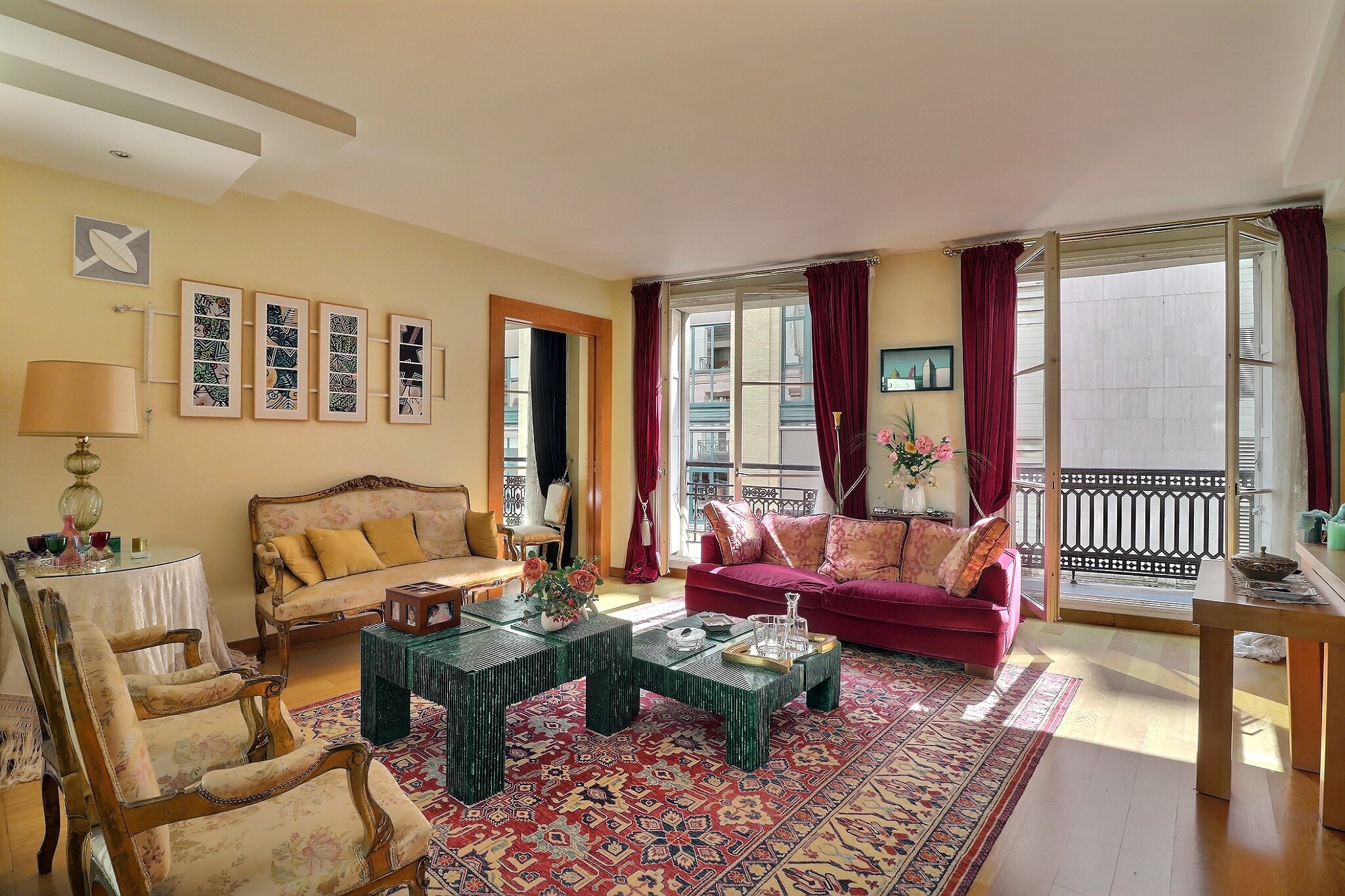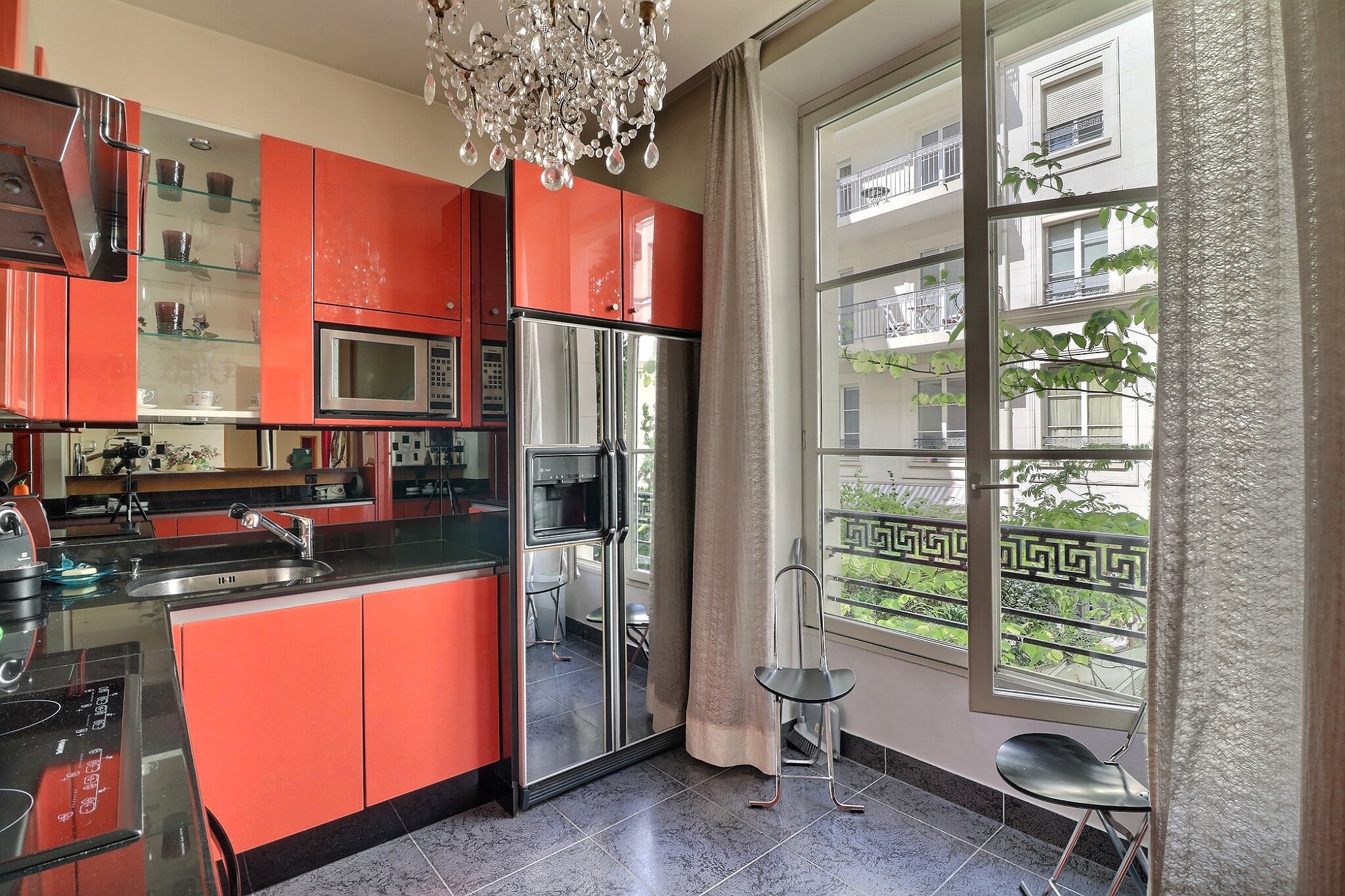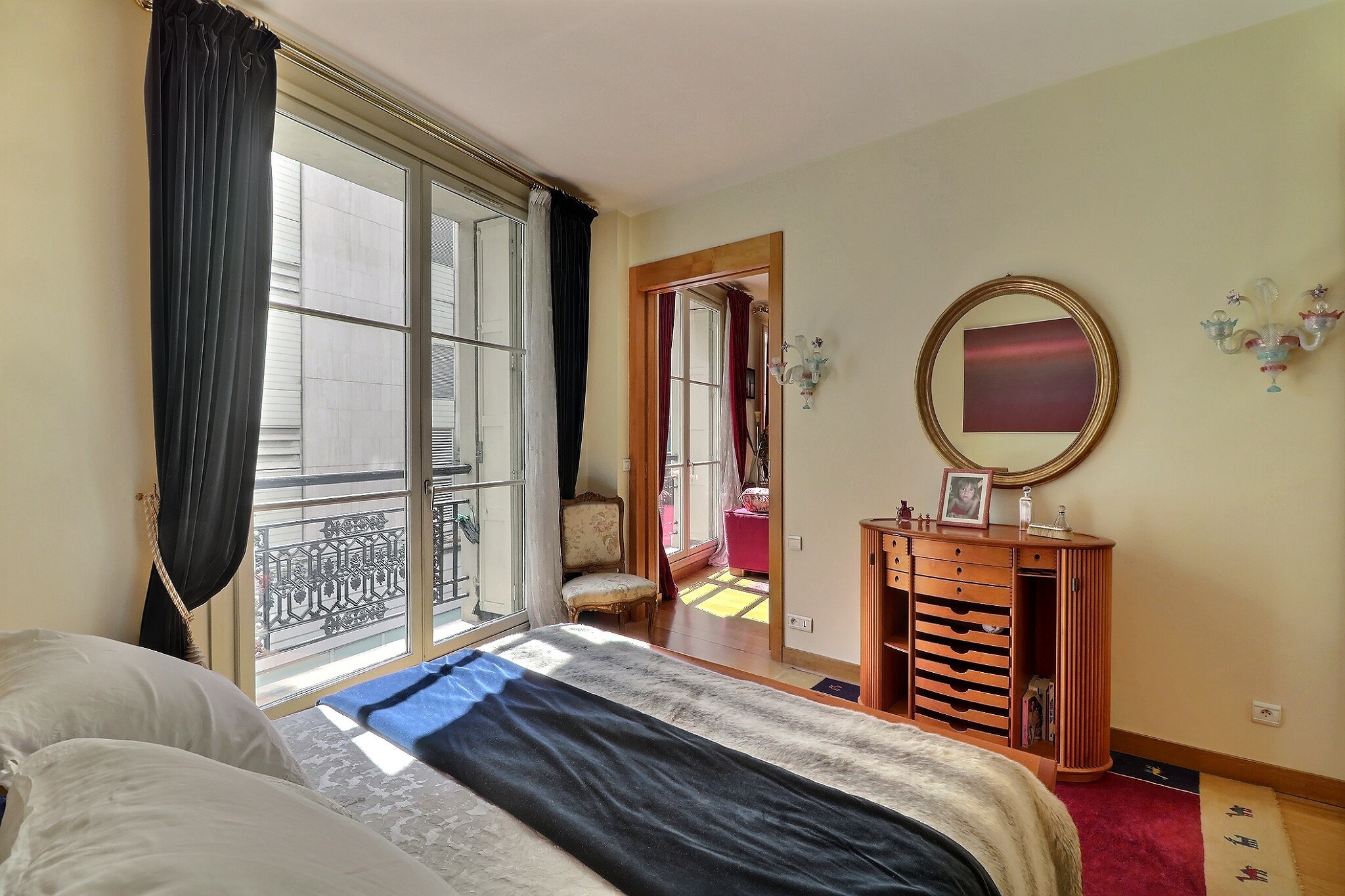 L’appartement profite de nombreux aménagements de confort, tel qu’une climatisation réversible et un système hifi encastré, une bibliothèque et des rangements sur mesure.