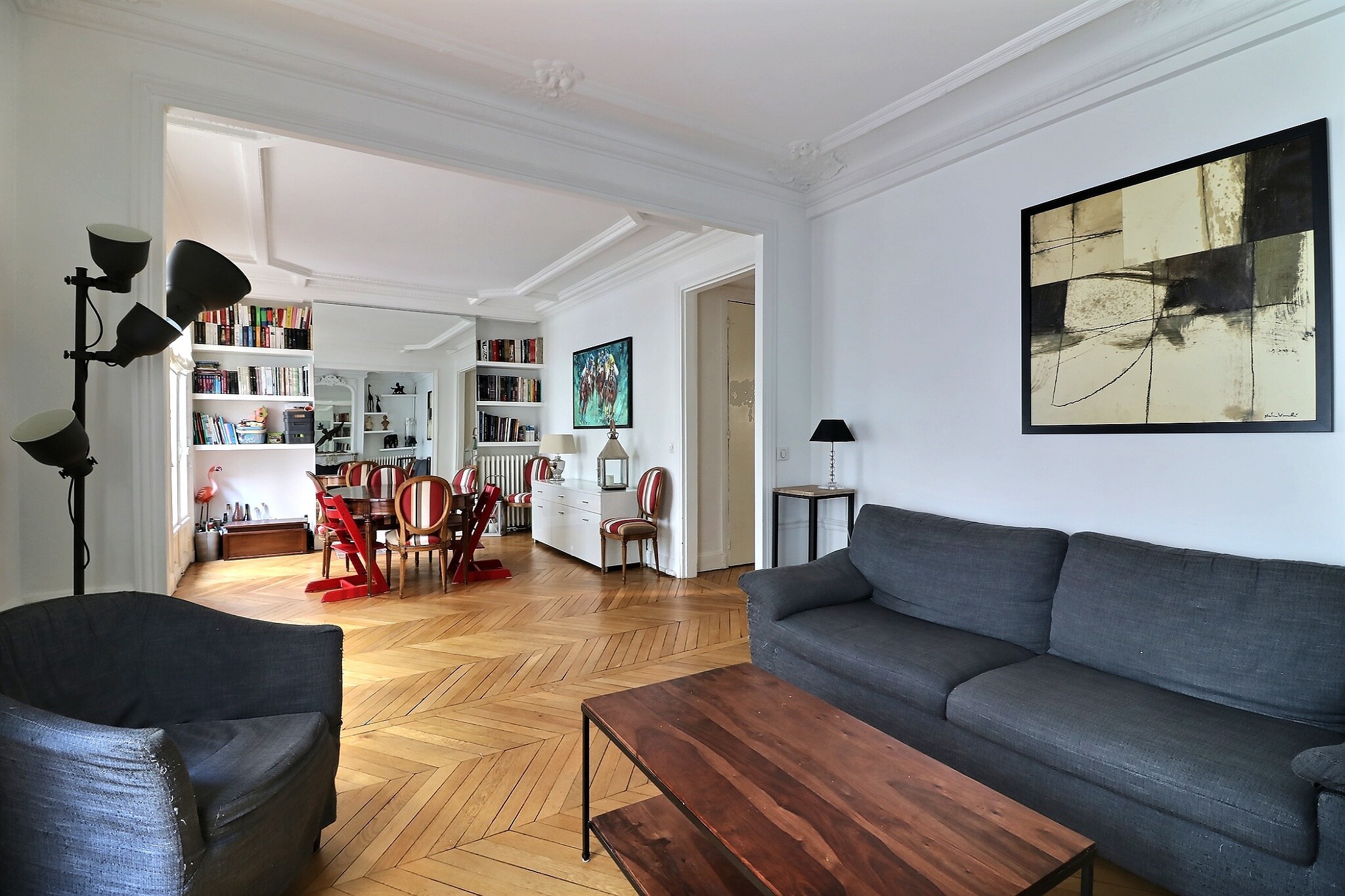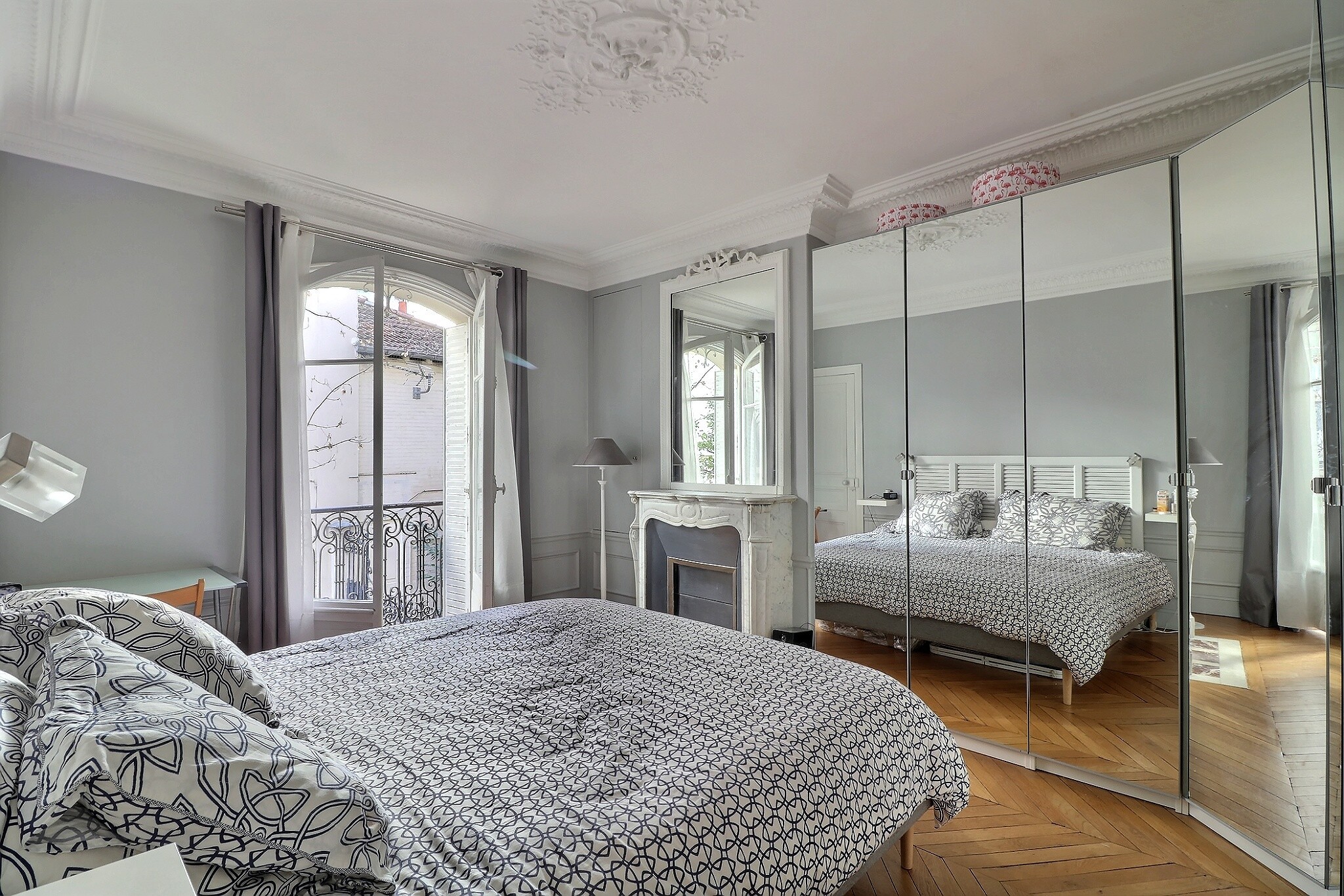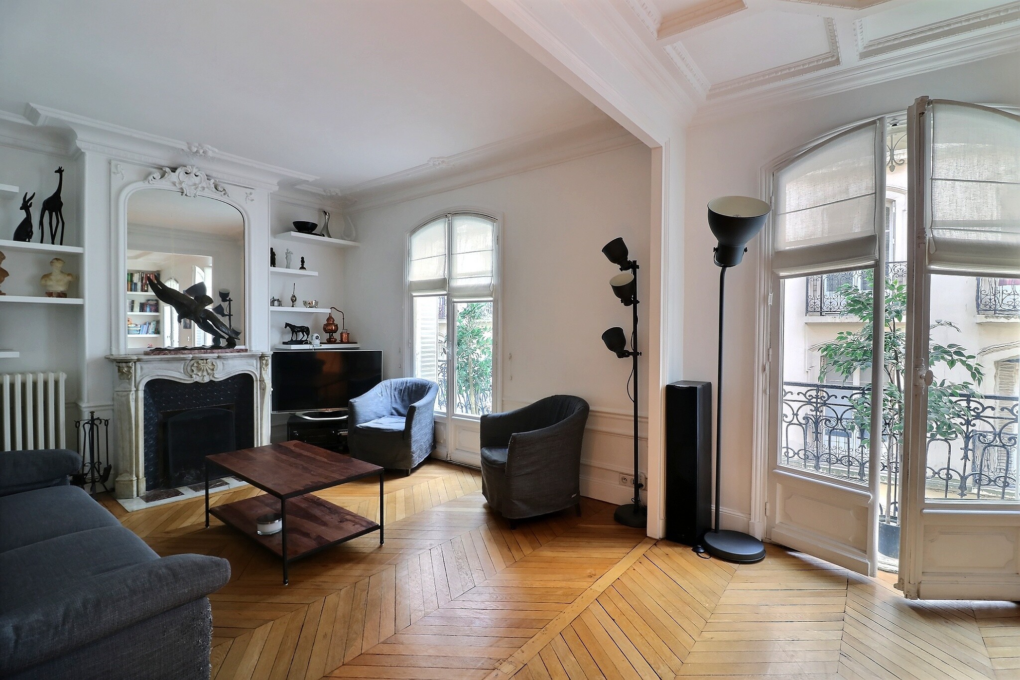 Cet appartement a su conjuguer esprit contemporain et charme de l’ancien avec son parquet point de Hongrie, ses jolies moulures et ses cheminées fonctionnelles.
