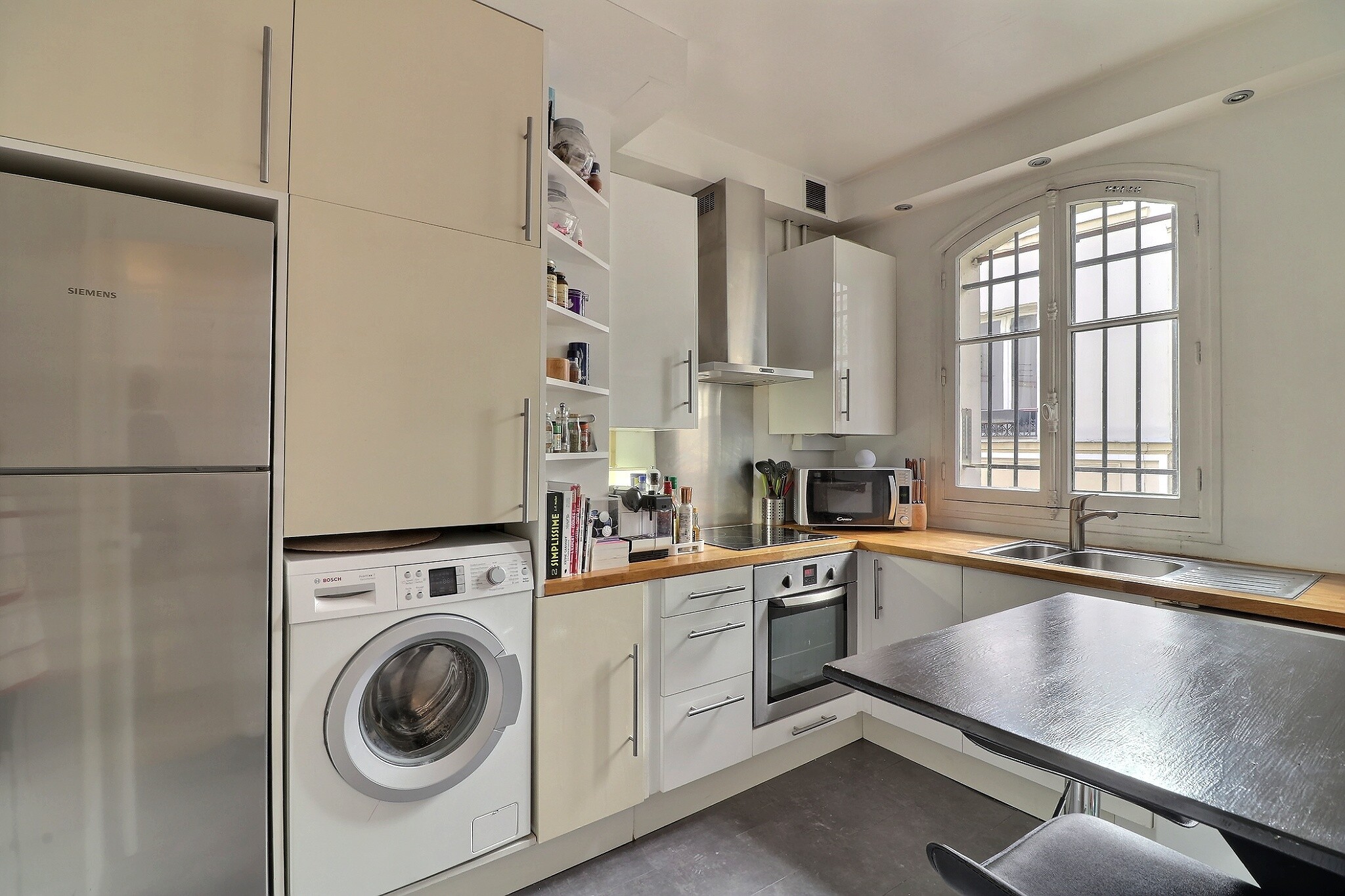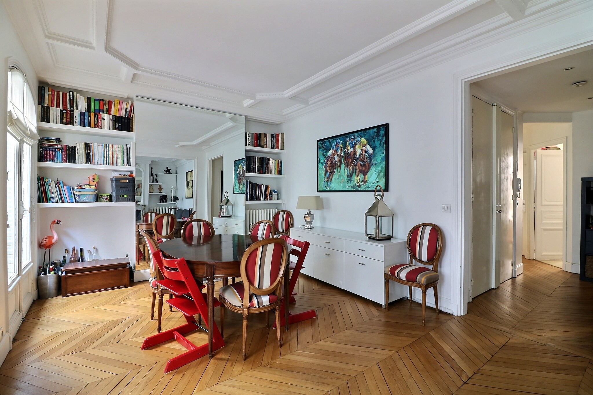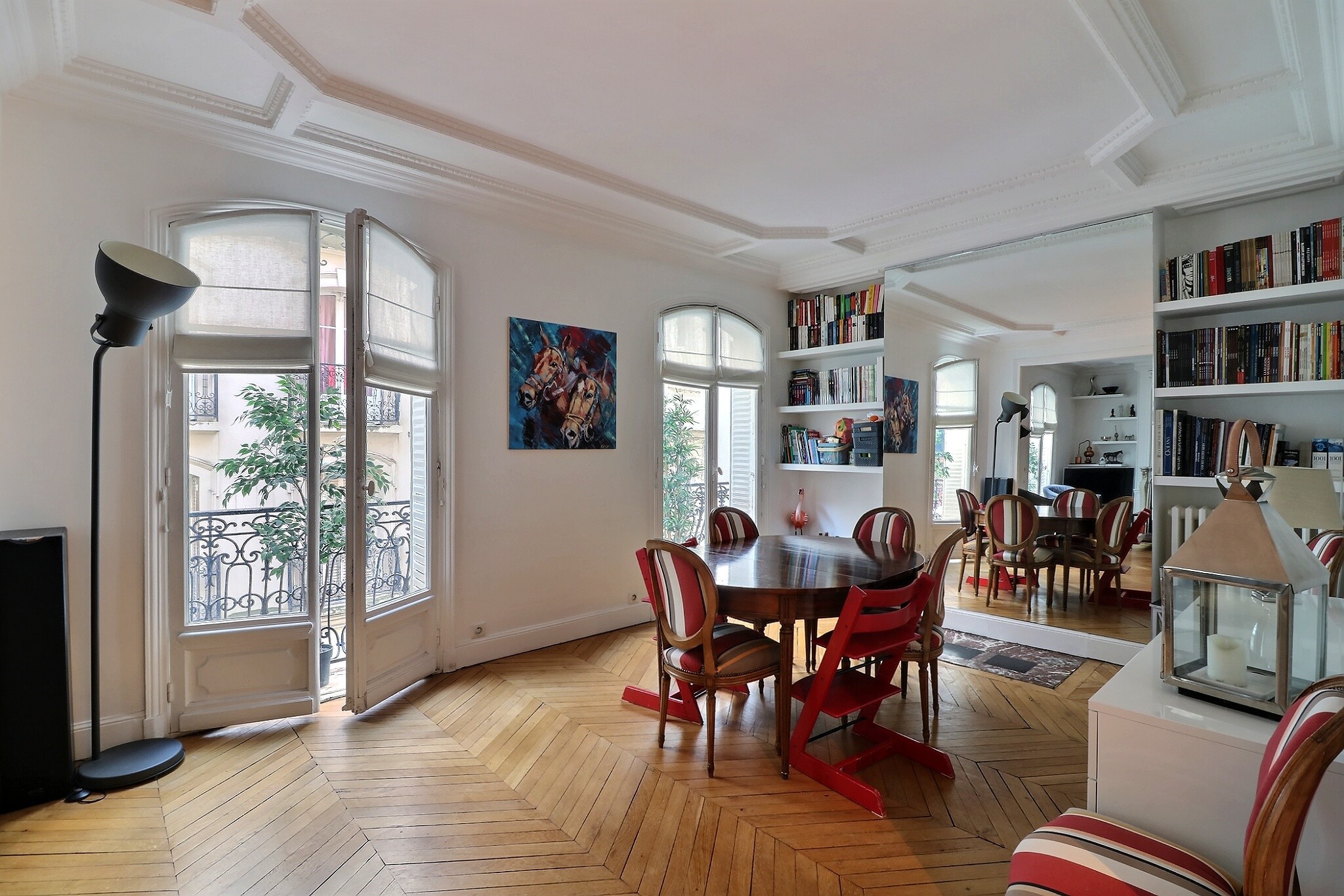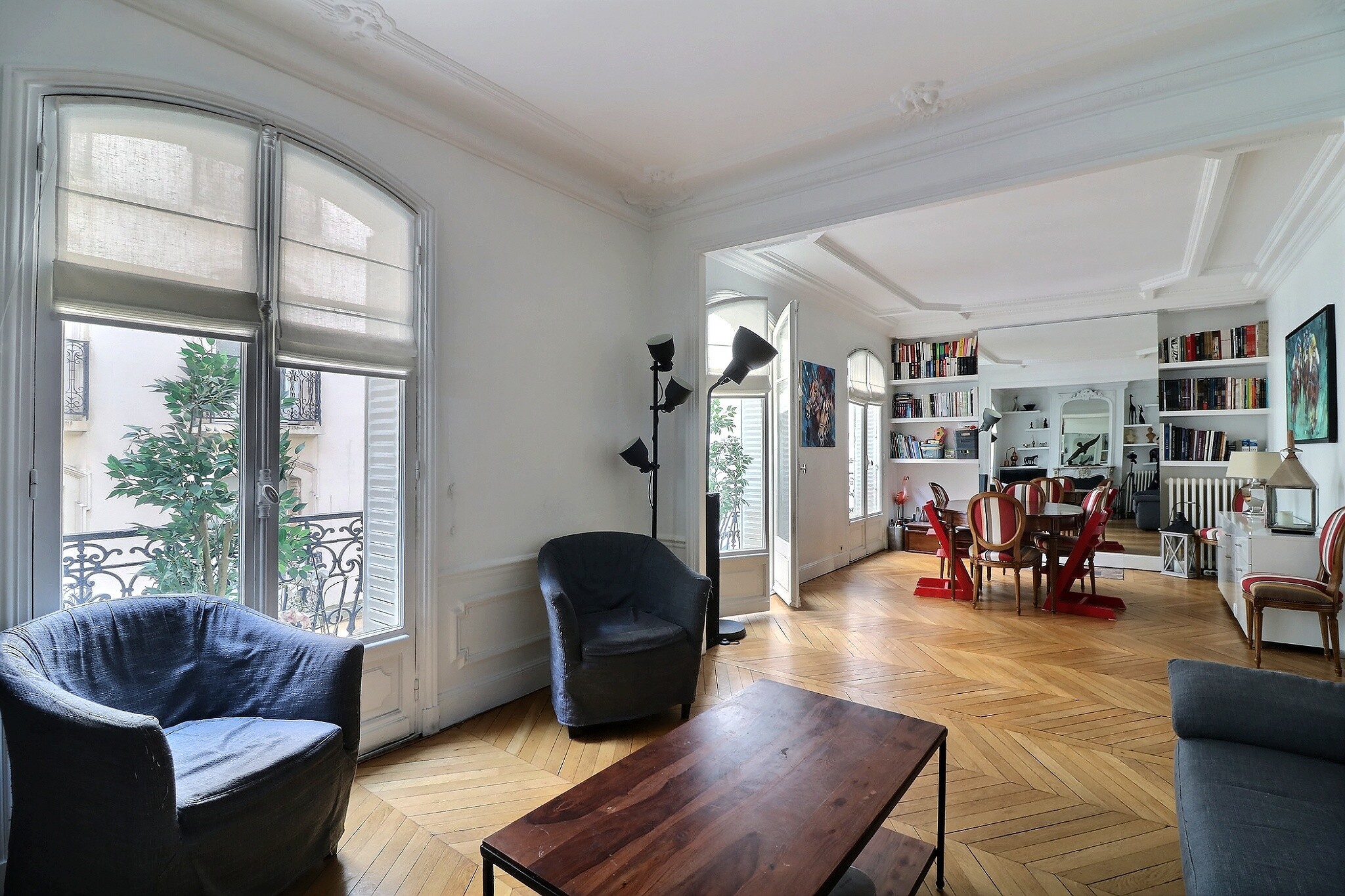 Cet appartement a su conjuguer esprit contemporain et charme de l’ancien avec son parquet point de Hongrie, ses jolies moulures et ses cheminées fonctionnelles.