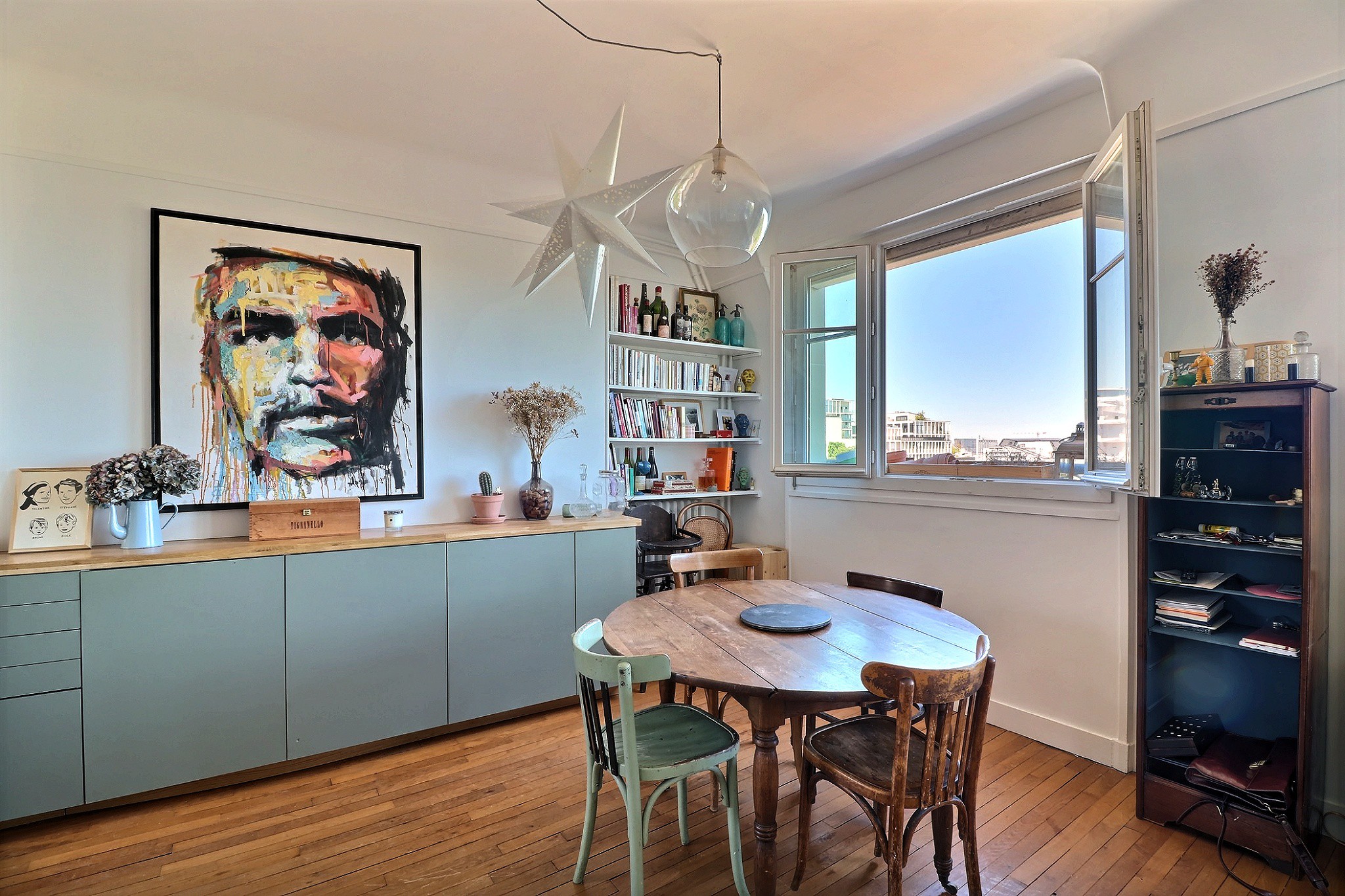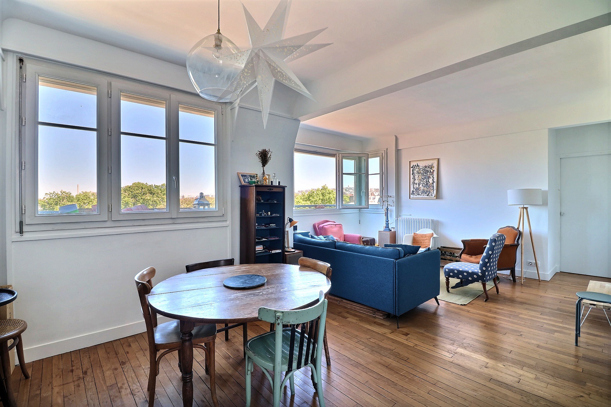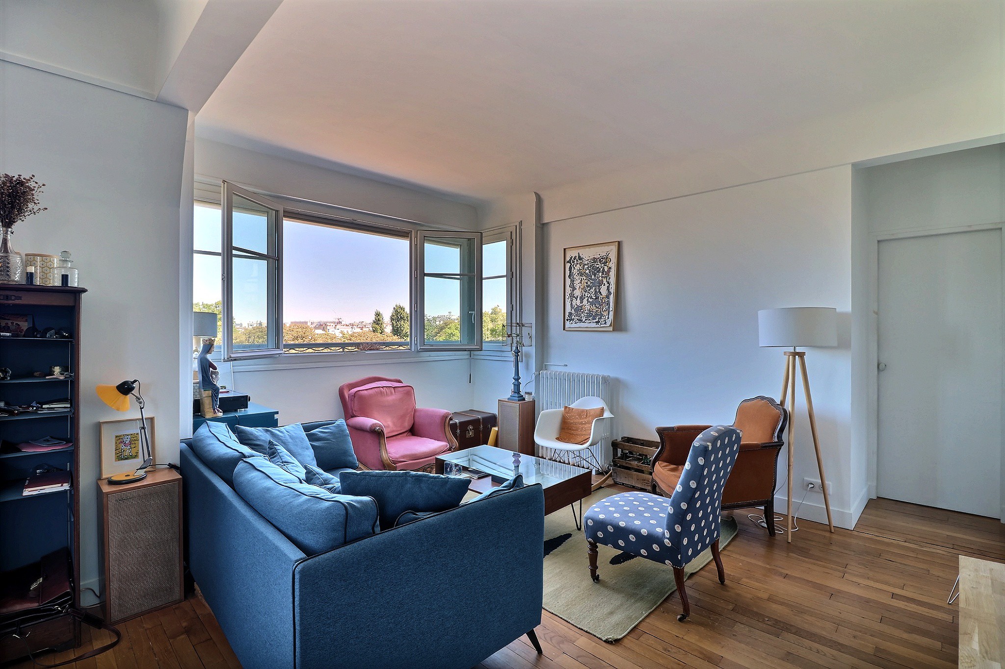 Dans un immeuble des années 40 bien entretenu. Au 7e étage par ascenseur, un 3/4 pièces composé d'une entrée avec placard, d’un double séjour traversant avec une cuisine ouverte entièrement aménagée et équipée haut de gamme, cet ensemble profite d’une superbe vue dégagée sur le square des Batignolles et sur le Sacré-Cœur. Une partie nuit constituée de deux chambres avec rangements dont une au calme sur cour, d’une salle de bain et d’un toilette indépendant. En très bon état, cet appartement parfaitement agencé est très lumineux, notamment grâce à ses nombreuses fenêtres, son étage élevé, sa double exposition et à sa vue dégagée. Une cave agrémente ce bien.