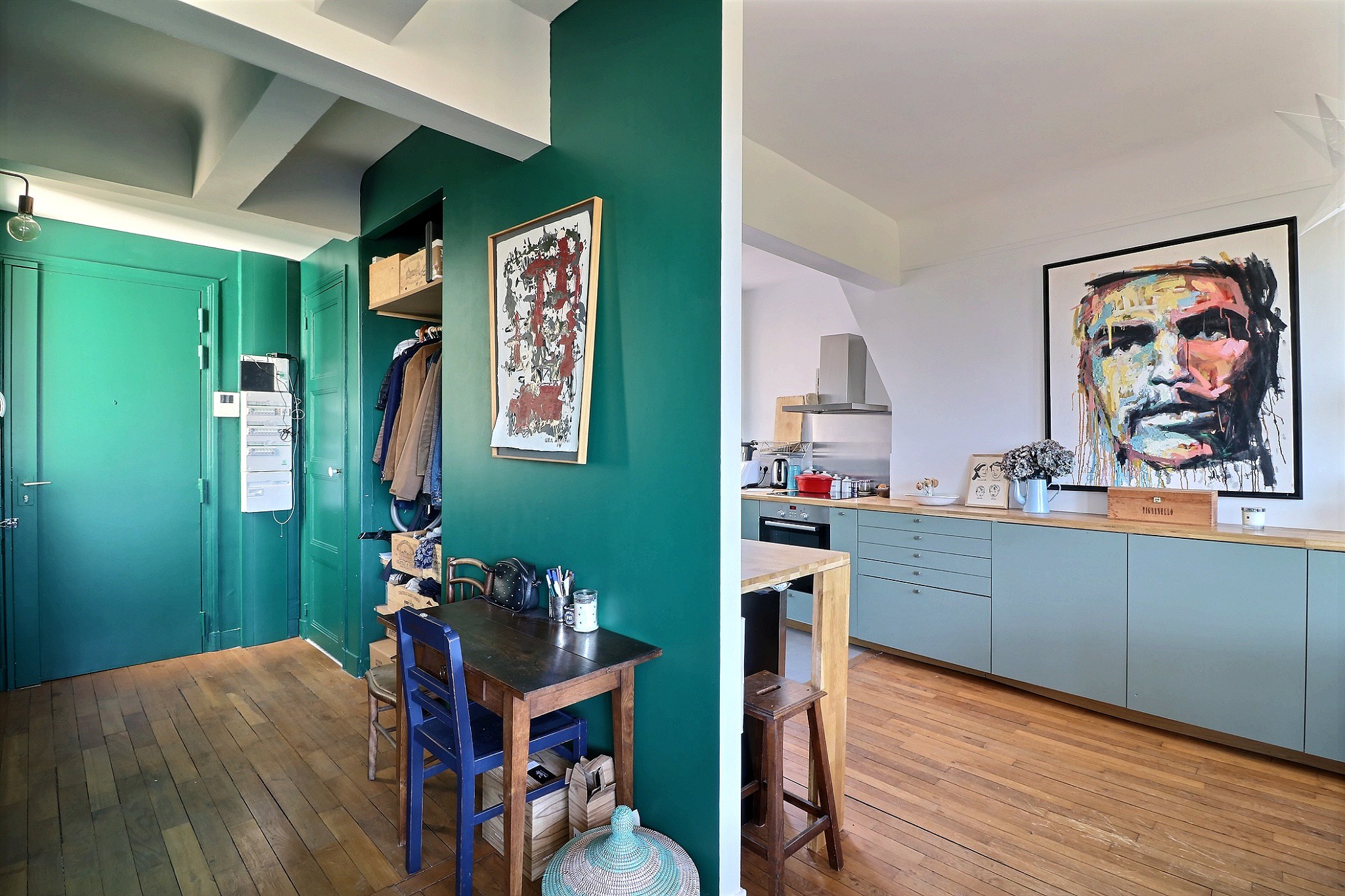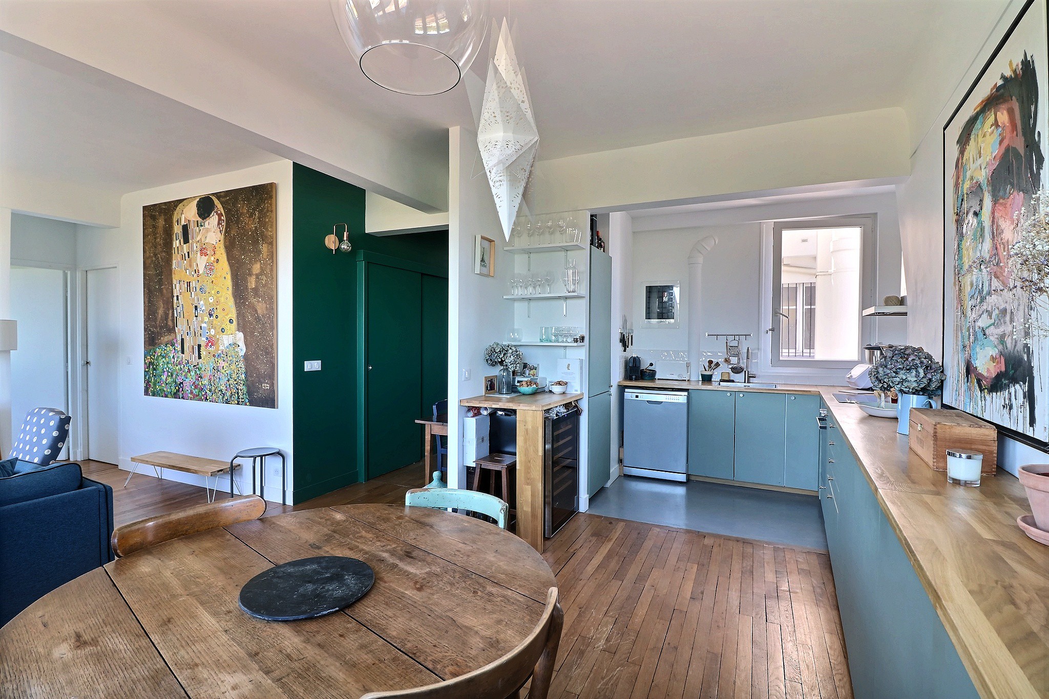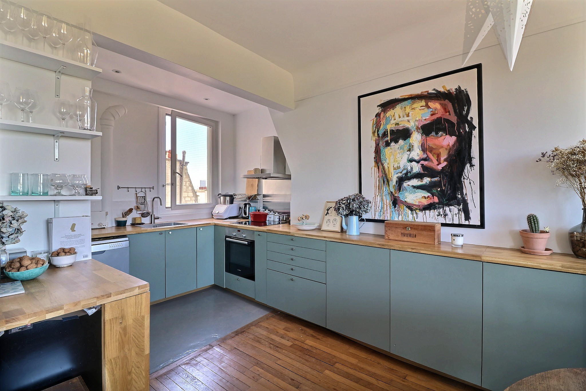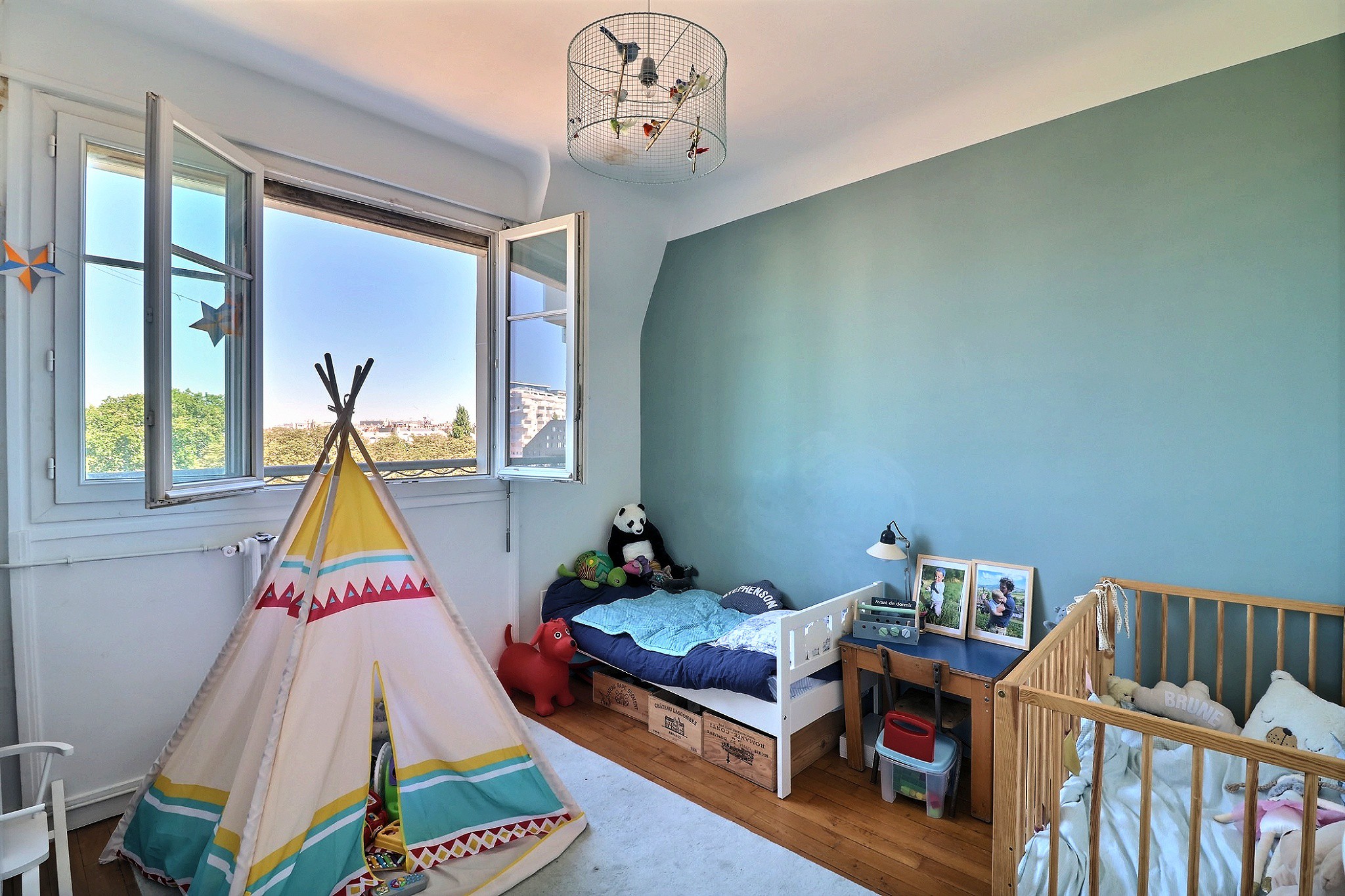 Dans un immeuble des années 40 bien entretenu. Au 7e étage par ascenseur, un 3/4 pièces composé d'une entrée avec placard, d’un double séjour traversant avec une cuisine ouverte entièrement aménagée et équipée haut de gamme, cet ensemble profite d’une superbe vue dégagée sur le square des Batignolles et sur le Sacré-Cœur. Une partie nuit constituée de deux chambres avec rangements dont une au calme sur cour, d’une salle de bain et d’un toilette indépendant. En très bon état, cet appartement parfaitement agencé est très lumineux, notamment grâce à ses nombreuses fenêtres, son étage élevé, sa double exposition et à sa vue dégagée. Une cave agrémente ce bien.