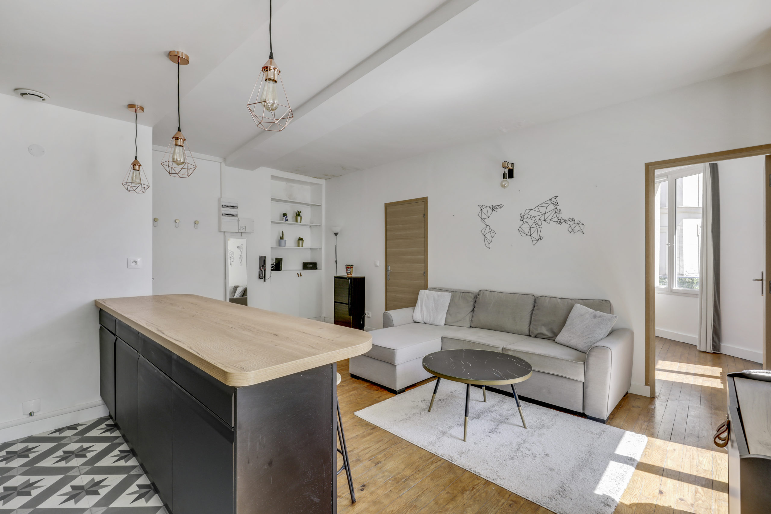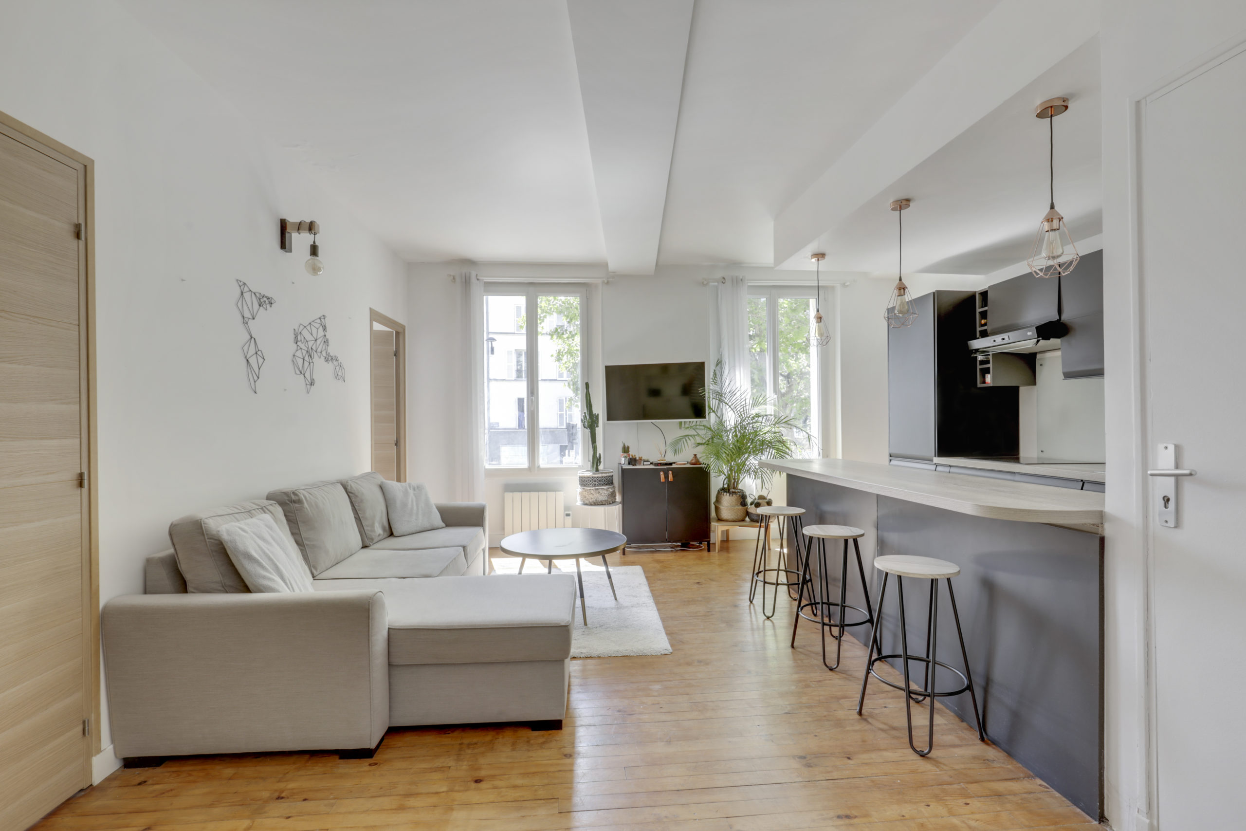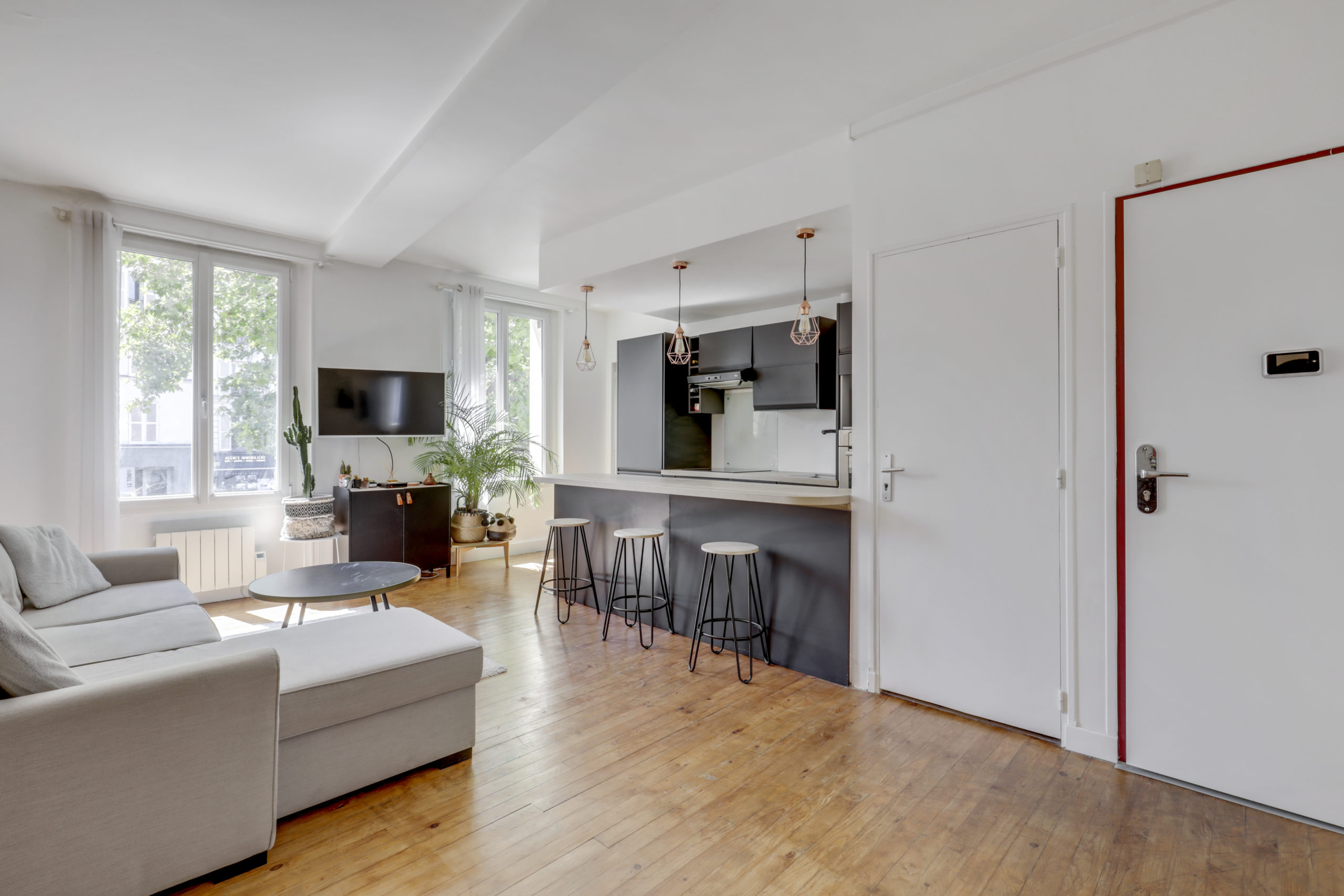 Entièrement rénové il y a trois ans, l’appartement est doté d’une disposition parfaitement optimisée avec deux chambres, un grand séjour de 26m2, une cuisine ouverte entièrement équipée avec un grand bar qui assure un esprit convivial, une salle d’eau avec douche à l’italienne et un WC séparé.