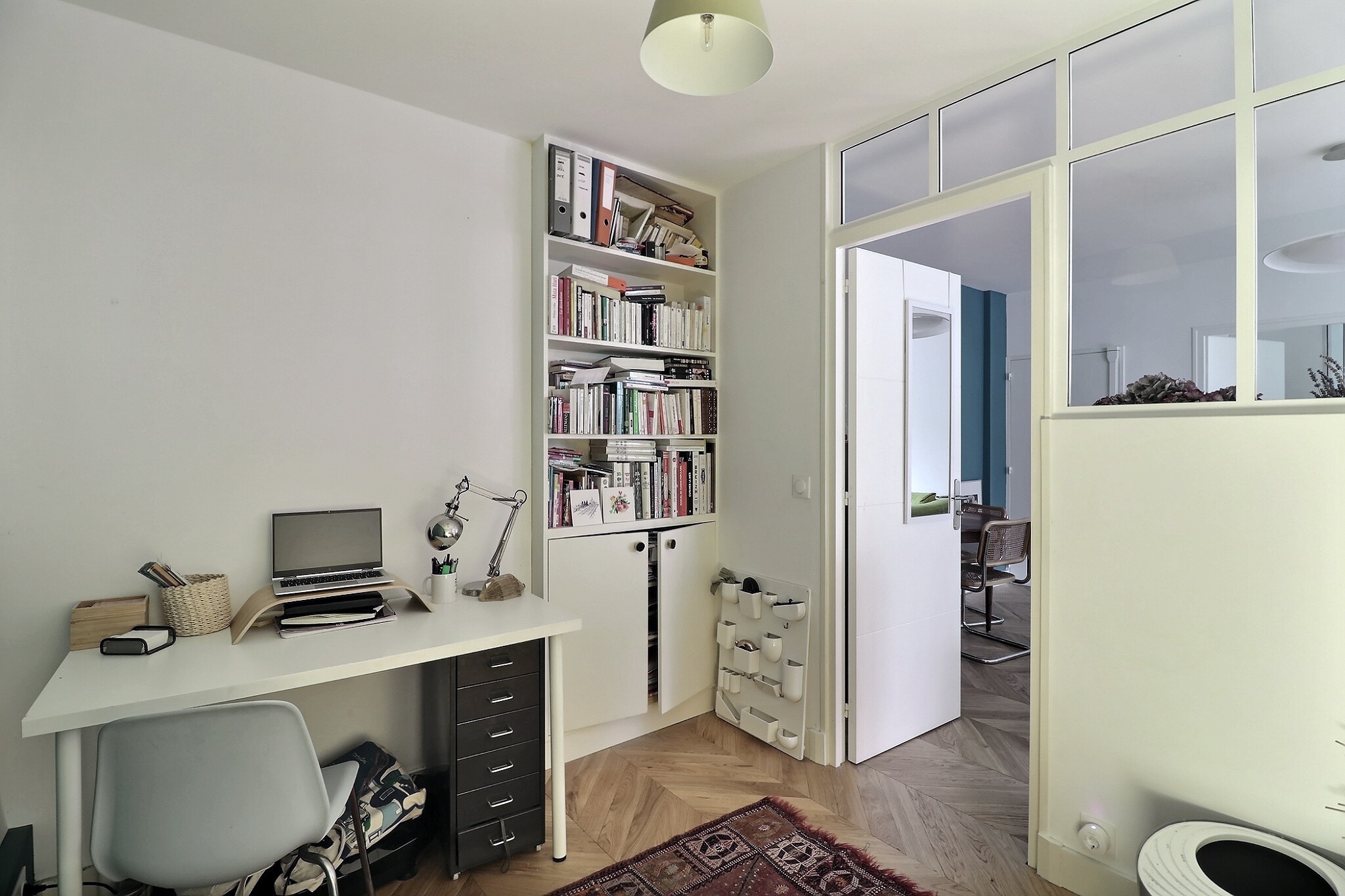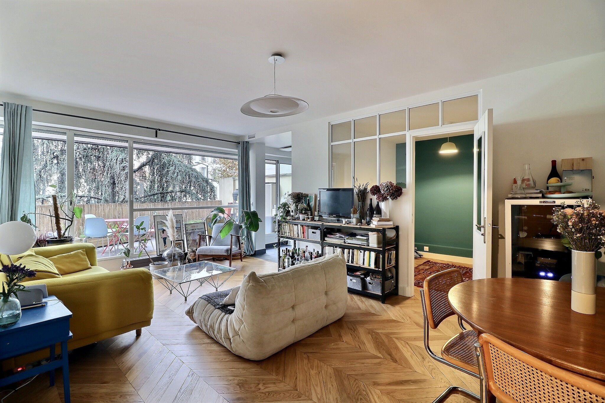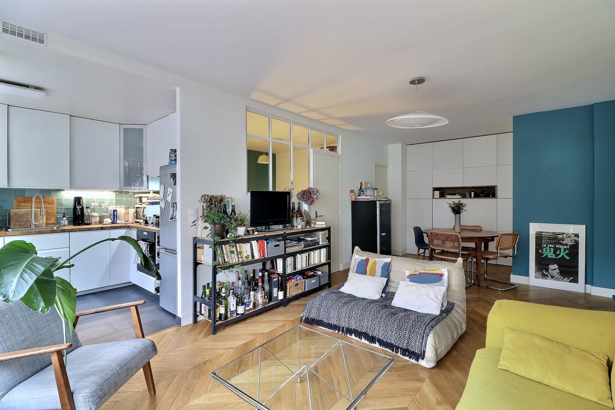 Entièrement refait et offrant des prestations haut de gamme, il se compose d’un vaste séjour / salle à manger avec placards sur mesure, d’une cuisine semi ouverte aménagée et équipée, d’une chambre avec rangement, l’ensemble donnant accès à la terrasse aménagée, d’un espace chambre/bureau avec placards et une verrière, d’une salle de bain avec un toilette.