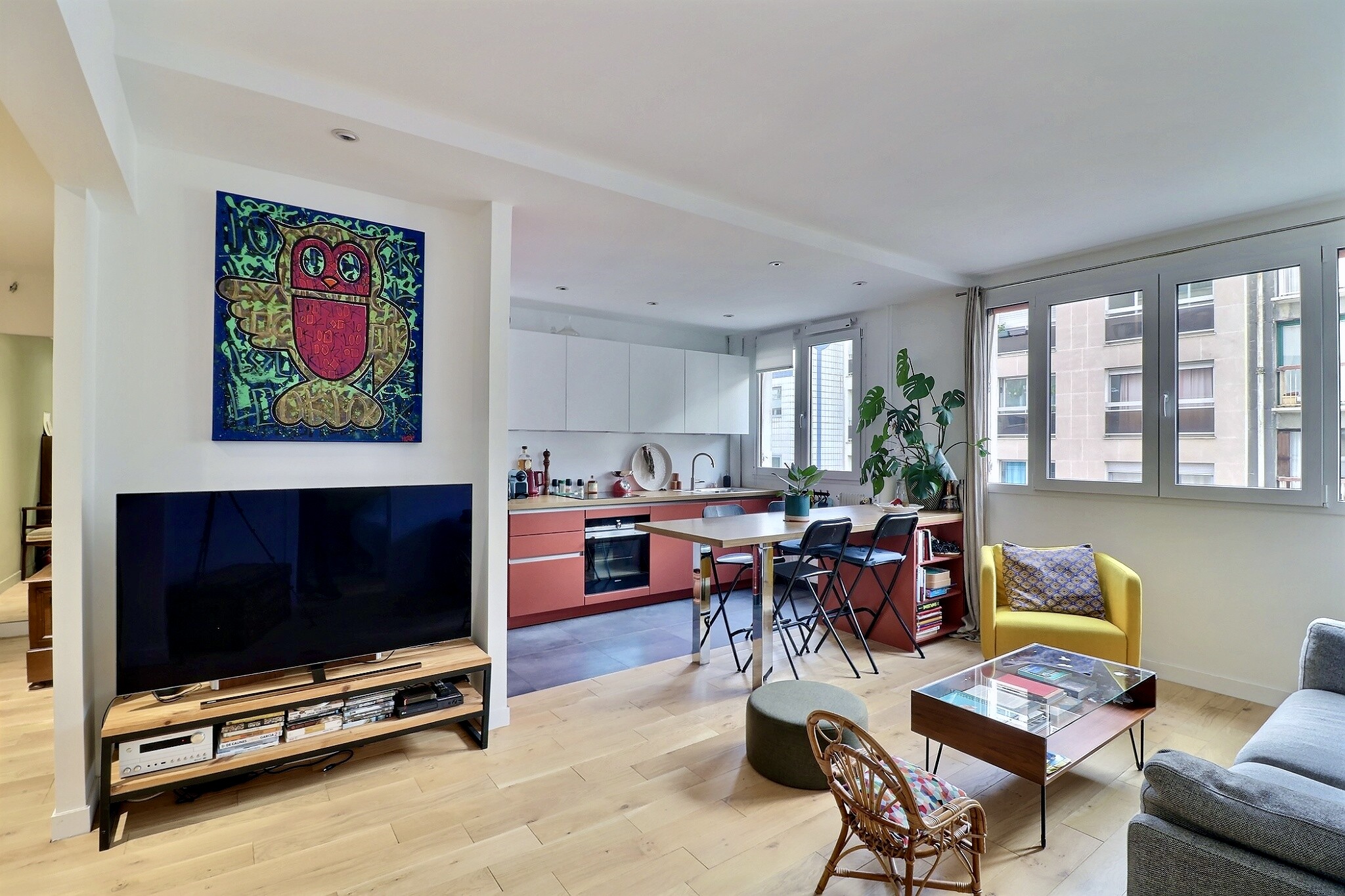 Ses nombreuses fenêtres, son étage élevé et son caractère traversant Sud / Nord lui confèrent une bonne luminosité́ tout au long de la journée.