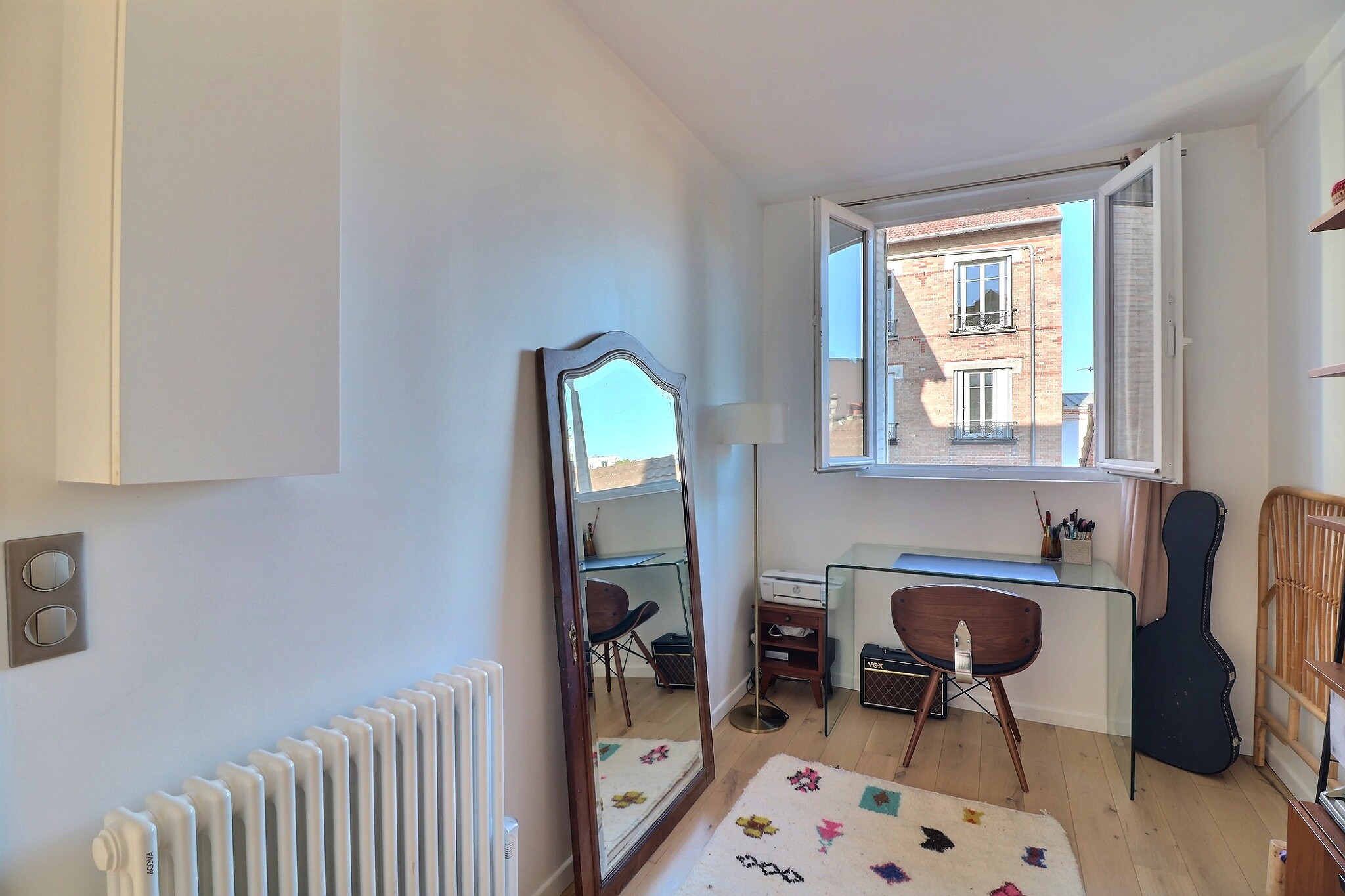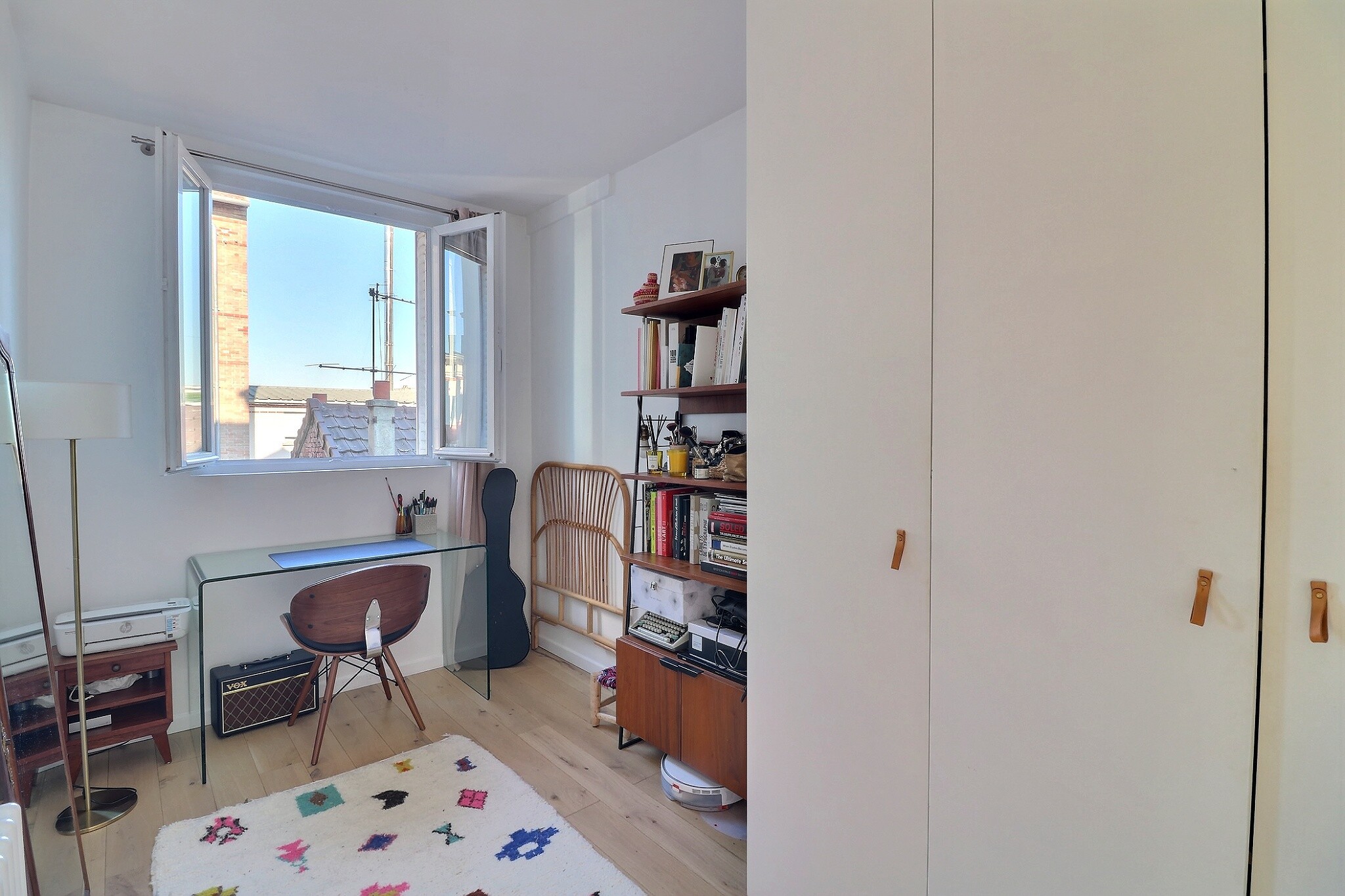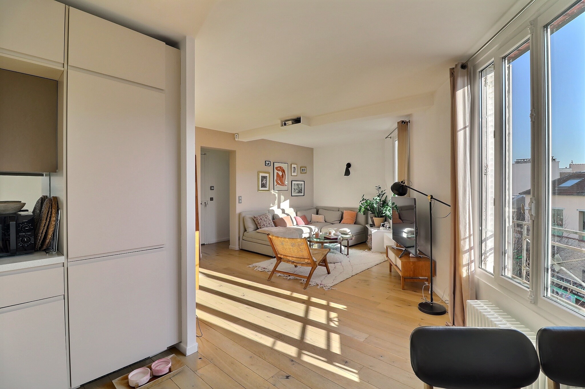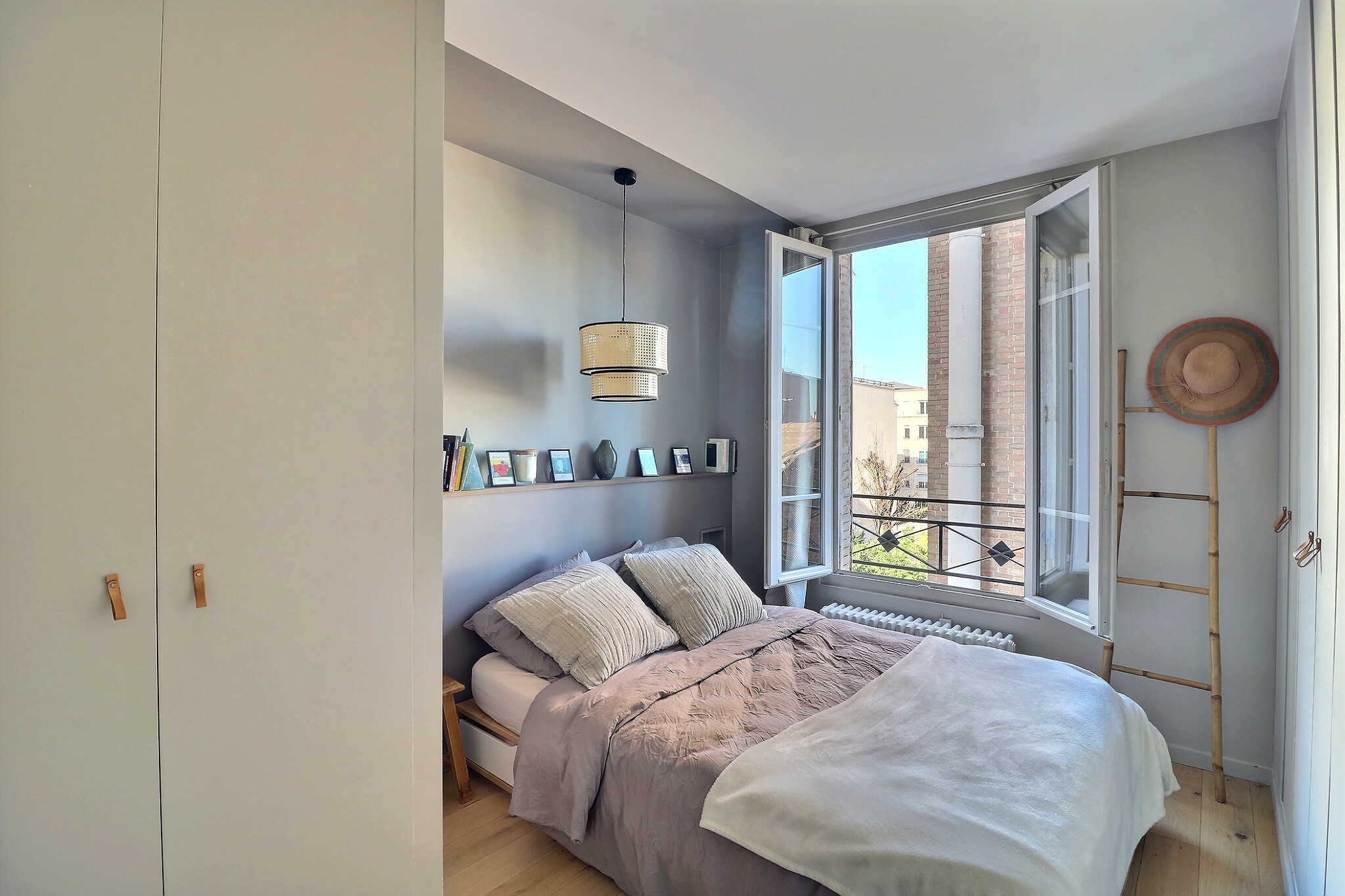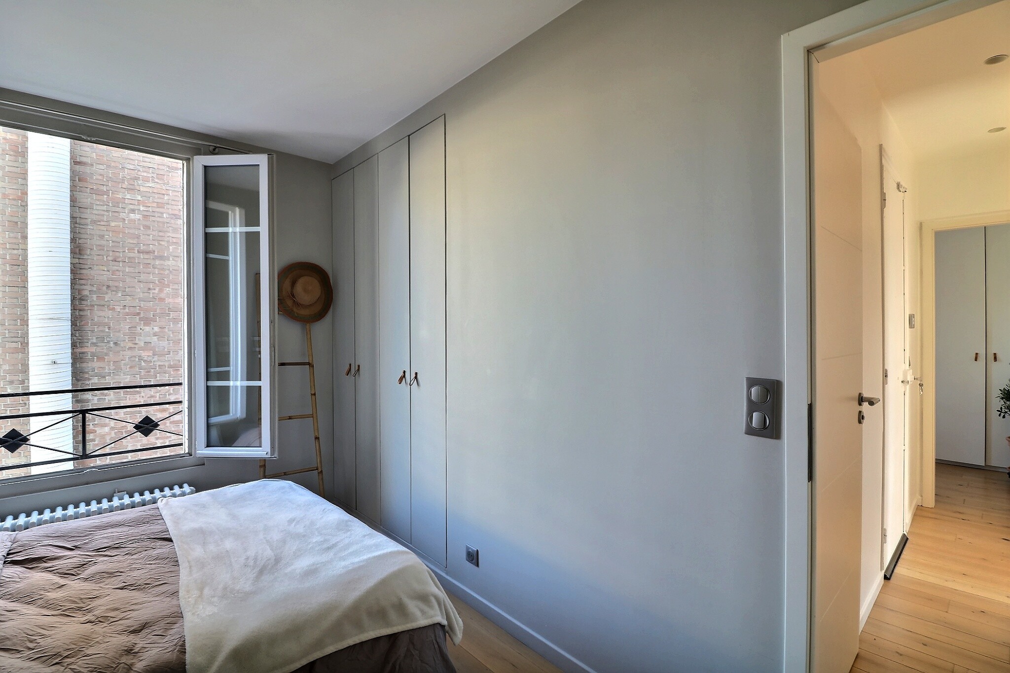 ce 3 pièces est composé d'une entrée, d'une grande pièce de vie avec cuisine ouverte, aménagée et équipée d'une suite parentale au calme sur cour avec des rangements et placards sur-mesure dont une salle de bain attenante, d'une deuxième chambre et d'un toilette indépendant.