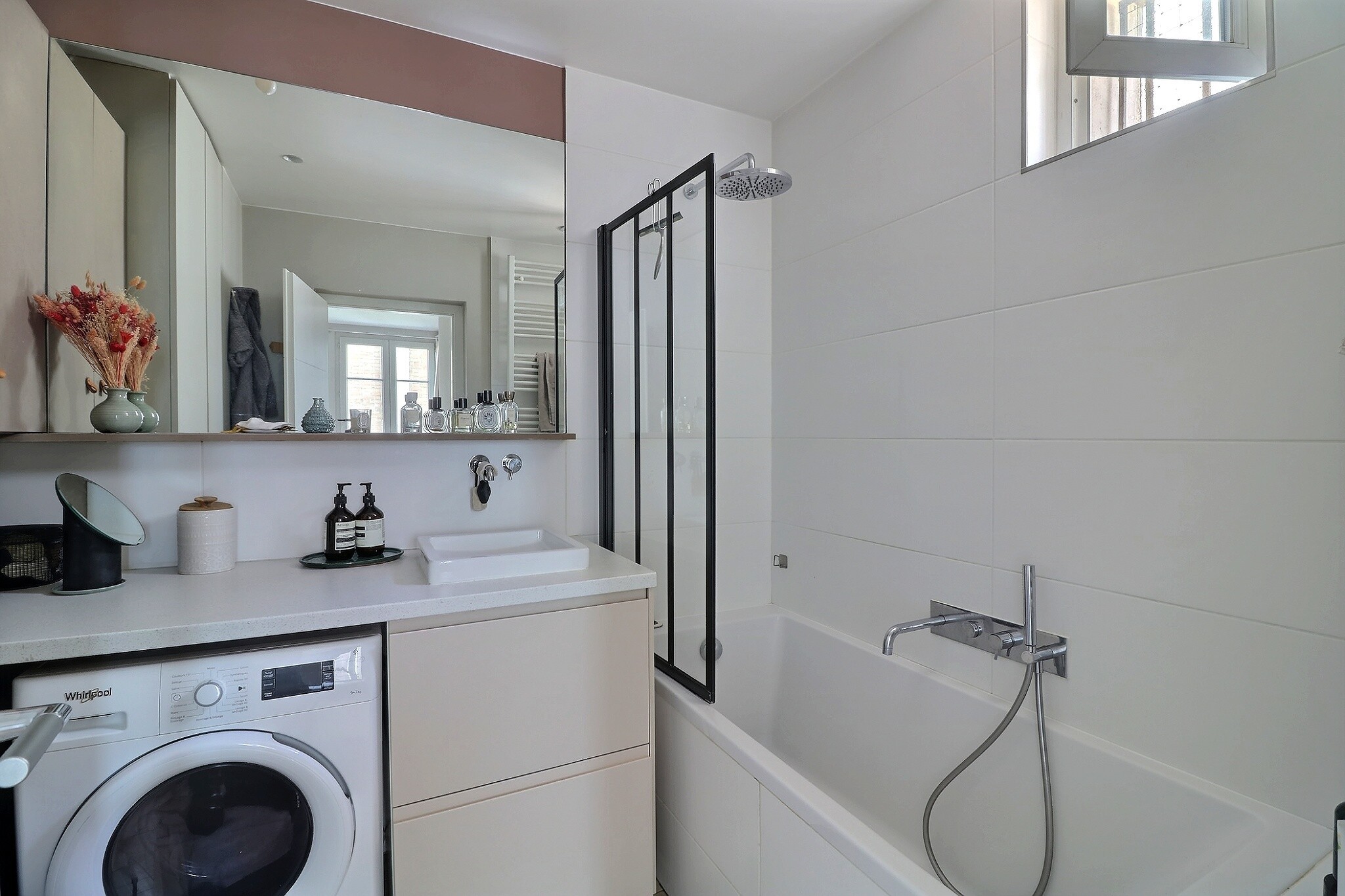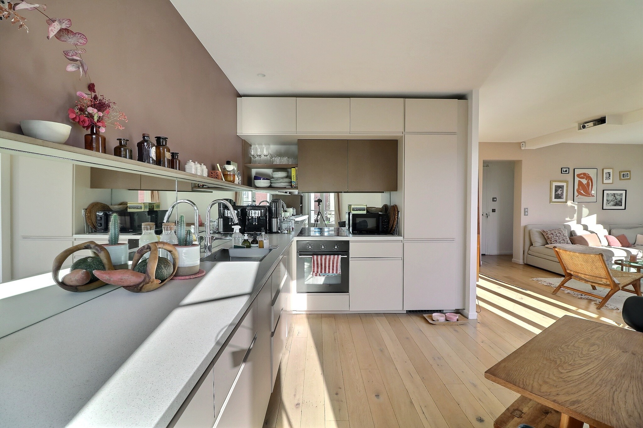 Cet appartement parfaitement agencé a su conjuguer l'esprit contemporain et charme de l'ancien.