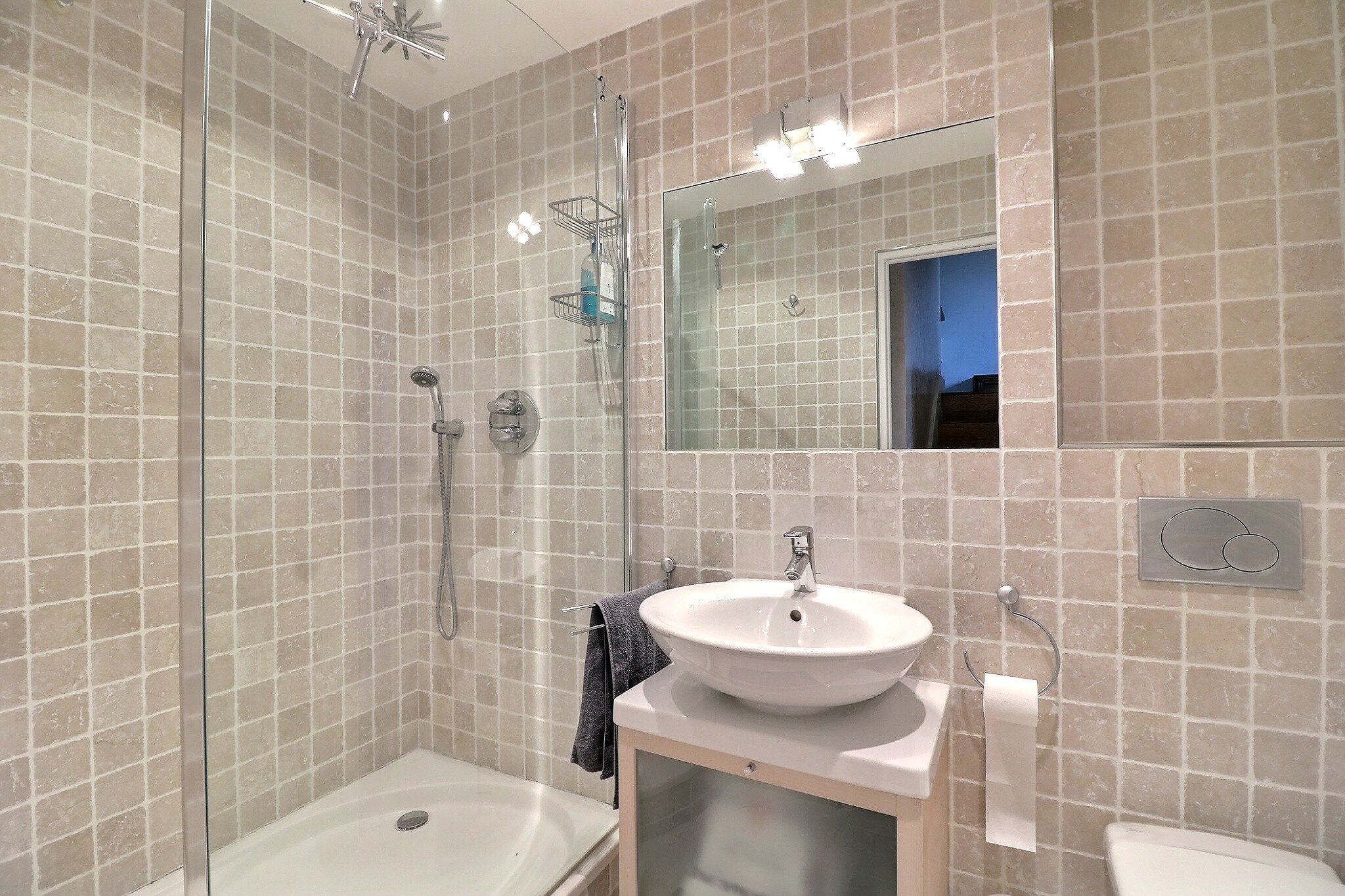 Au niveau inférieur, 2 chambres dont une au calme sur cour, une salle de douche avec wc, un espace buanderie.