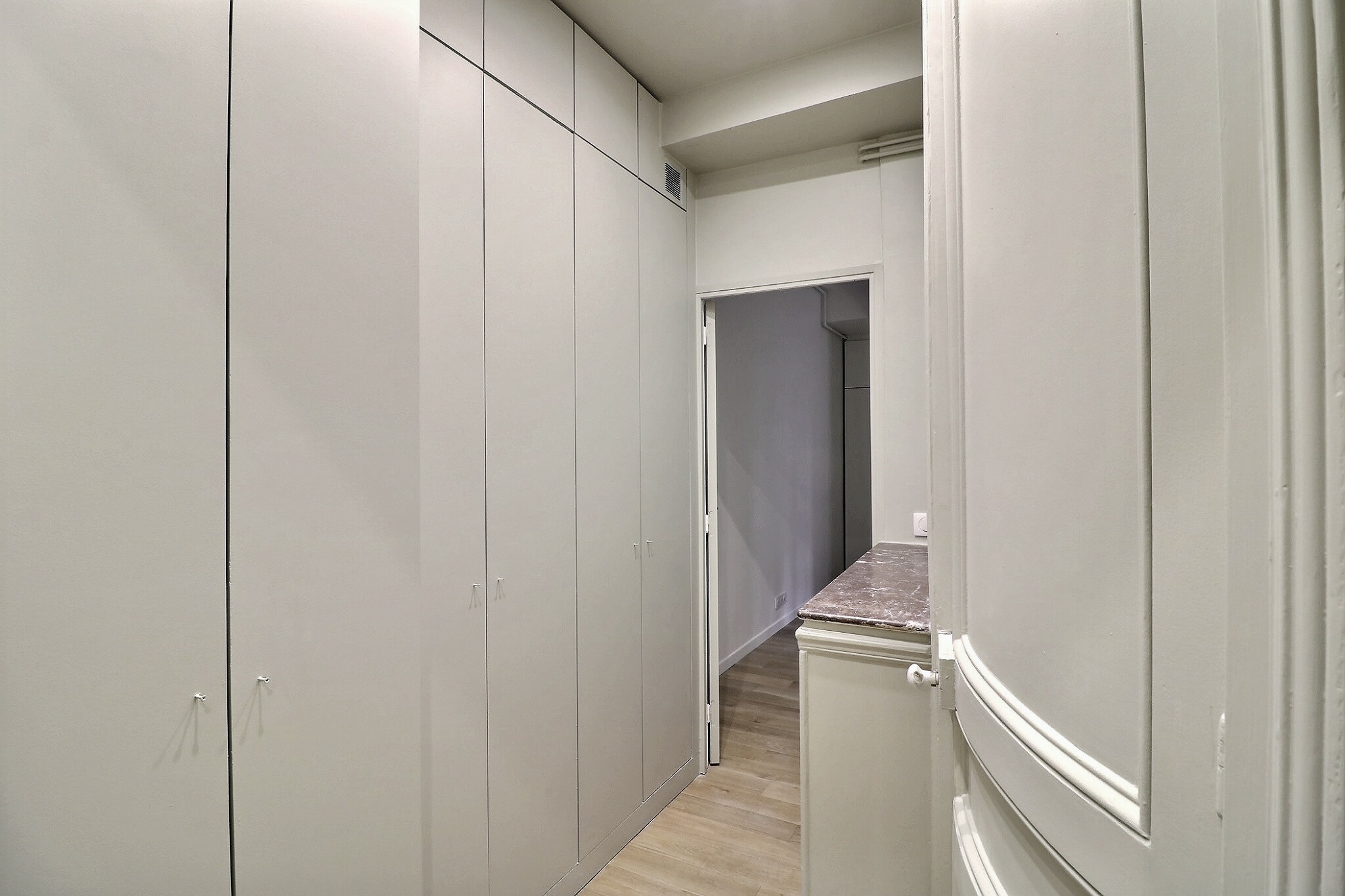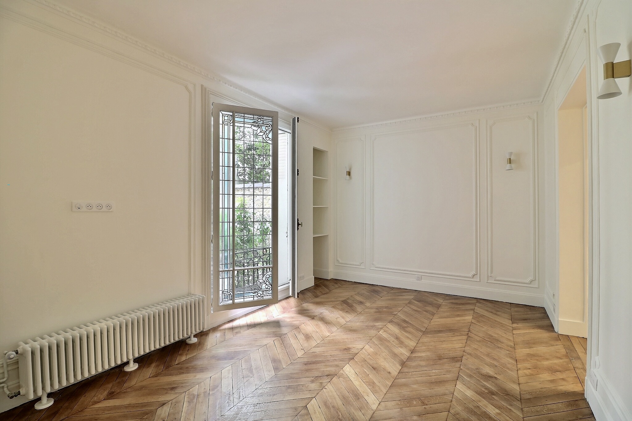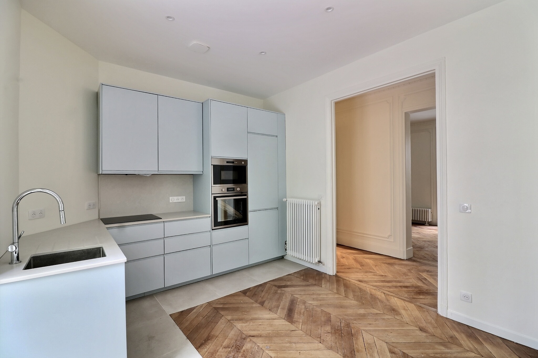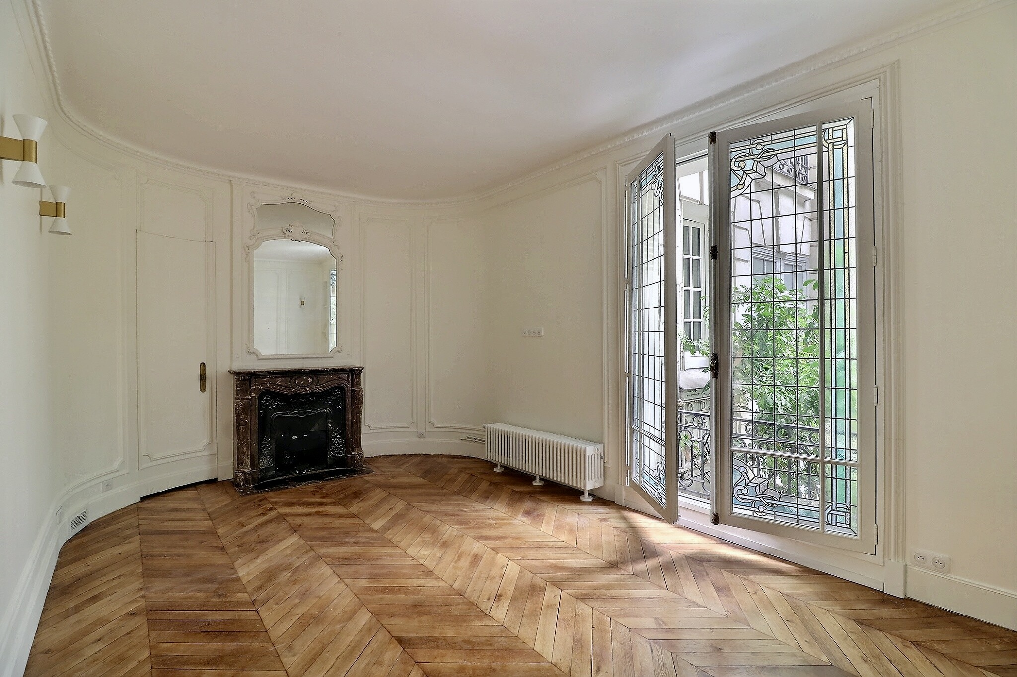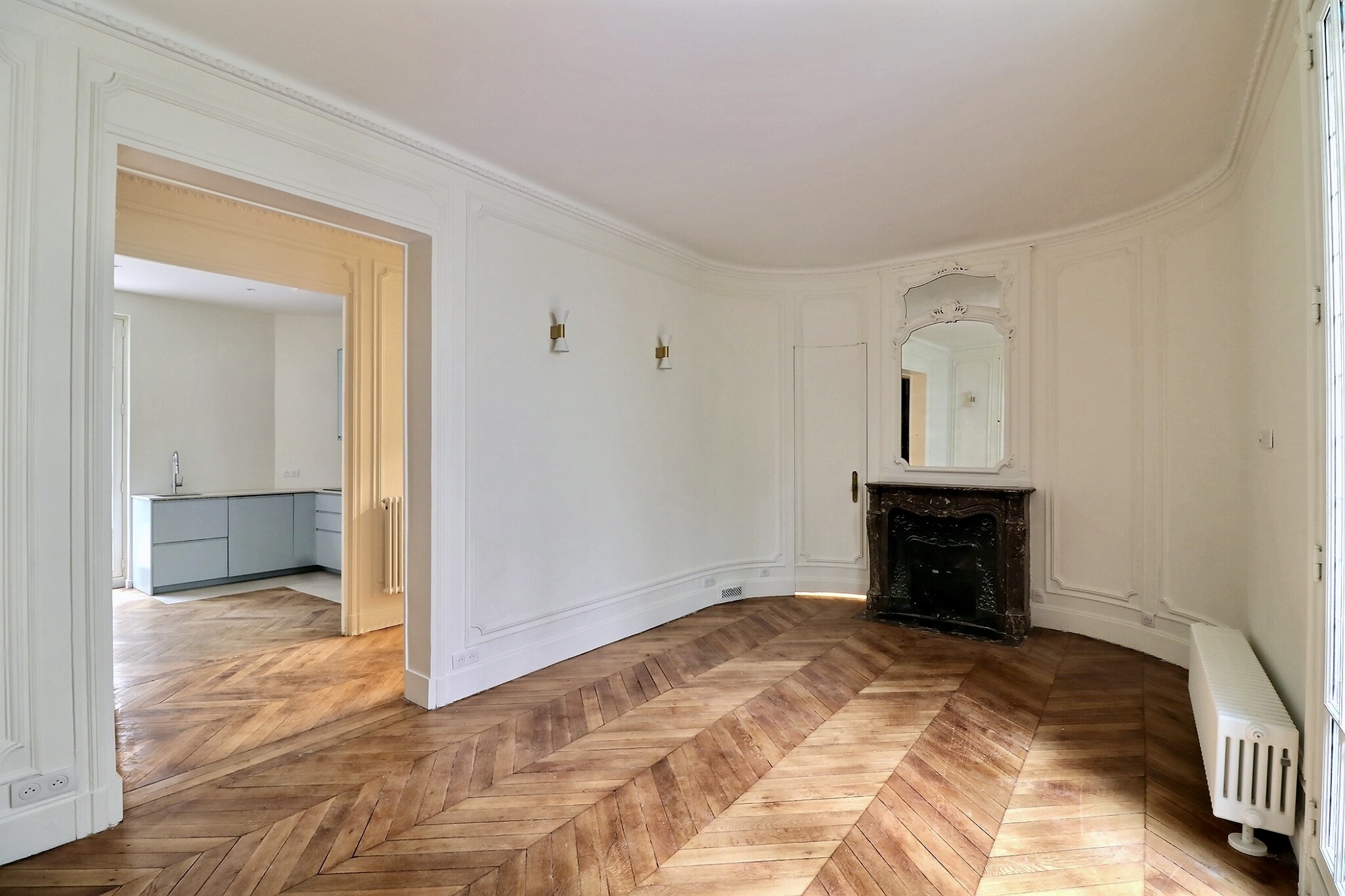 Cet appartement a su conserver tout le charme de l'ancien avec son parquet, ses moulures, ses cimaises et ses cheminées.