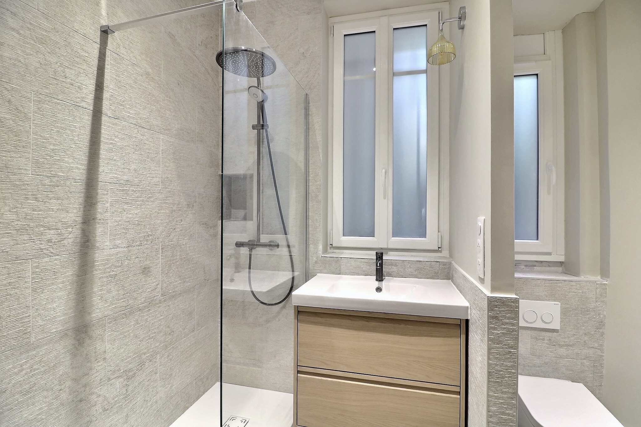 Ce 4 pièces, entièrement refait par un architecte, se compose d'une entrée, d'un grand séjour avec cheminée, d'une salle à manger avec cuisine ouverte, entièrement aménagée et équipée, donnant accès à une terrasse de plus de 38 m², d'une belle chambre principale avec placards sur mesure et salle d'eau attenante ouvrant sur la terrasse, d'une deuxième chambre avec espace dressing, ainsi que d'une salle de bains avec toilette.