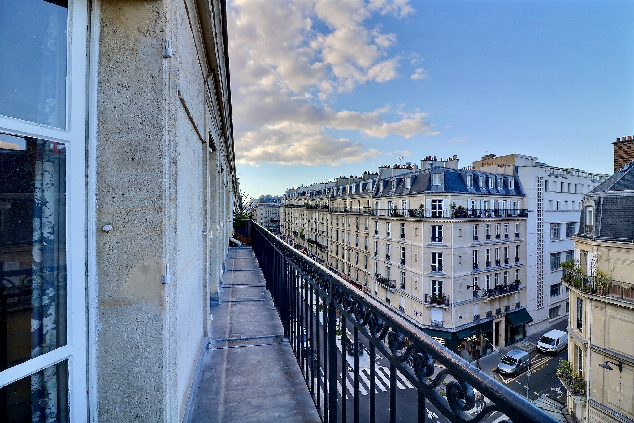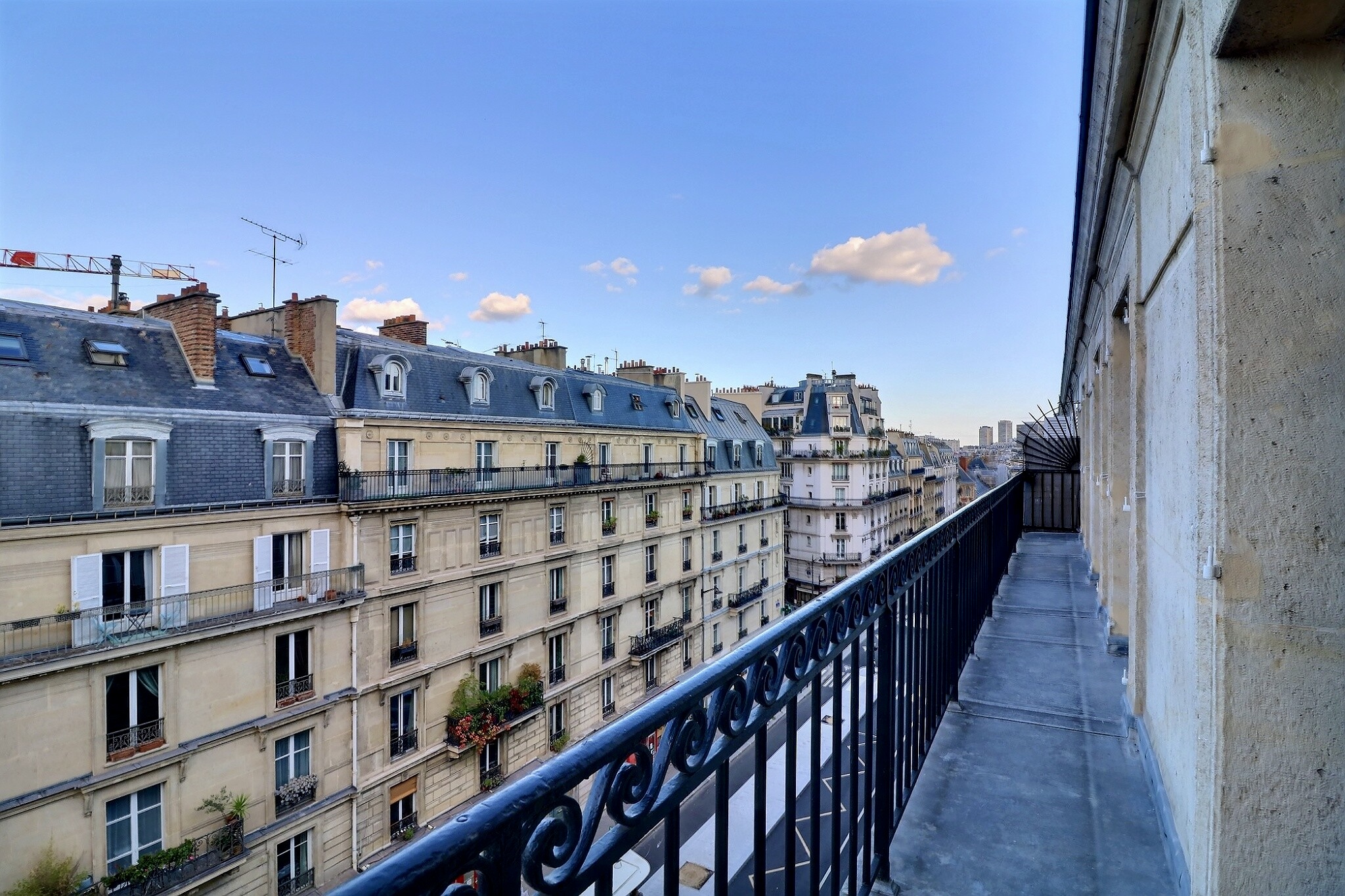 Aux 5e et 6e / 6 étages (derniers étages), avec ascenseur, d'un bel immeuble en pierre de taille parfaitement entretenu.