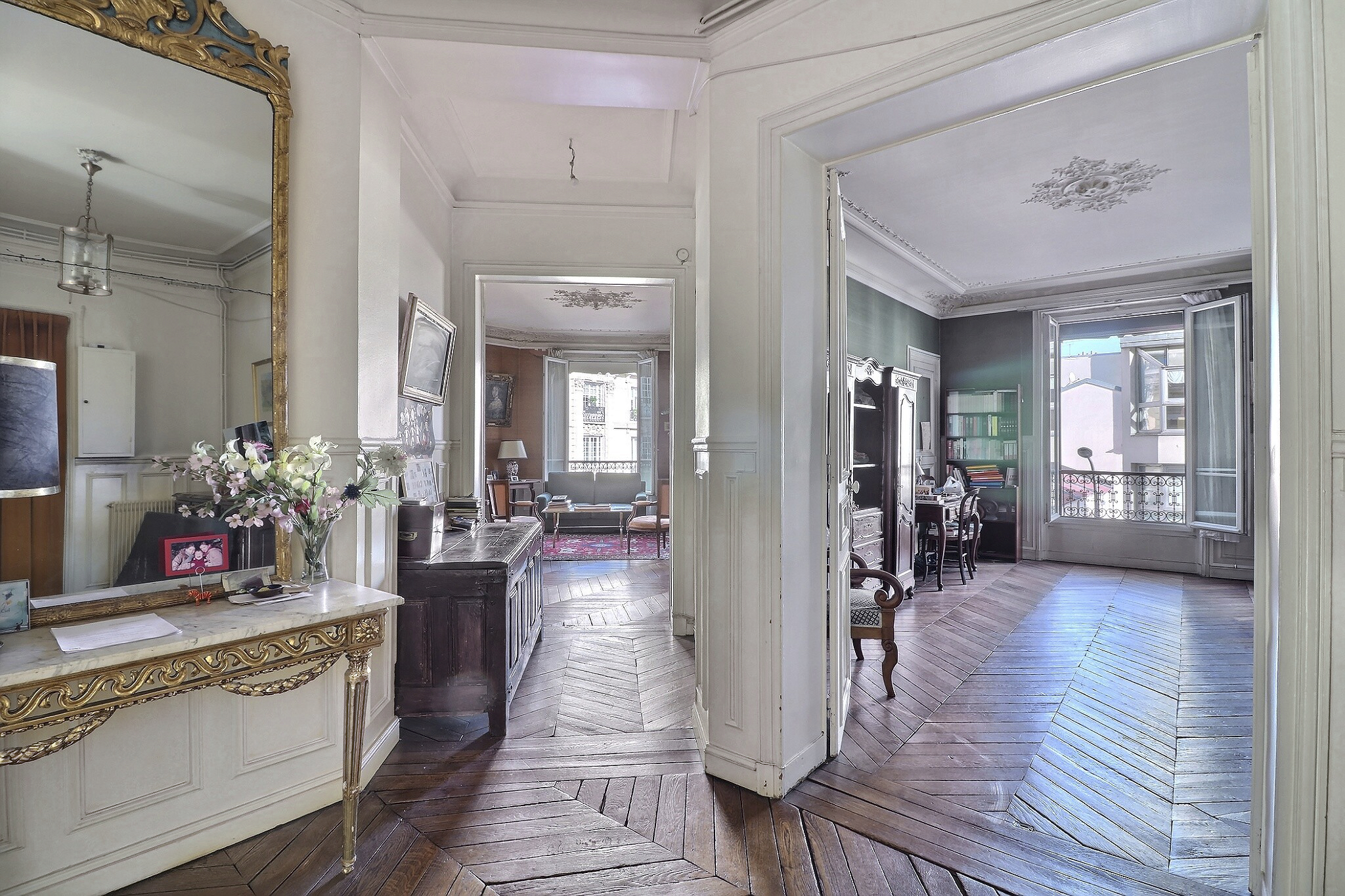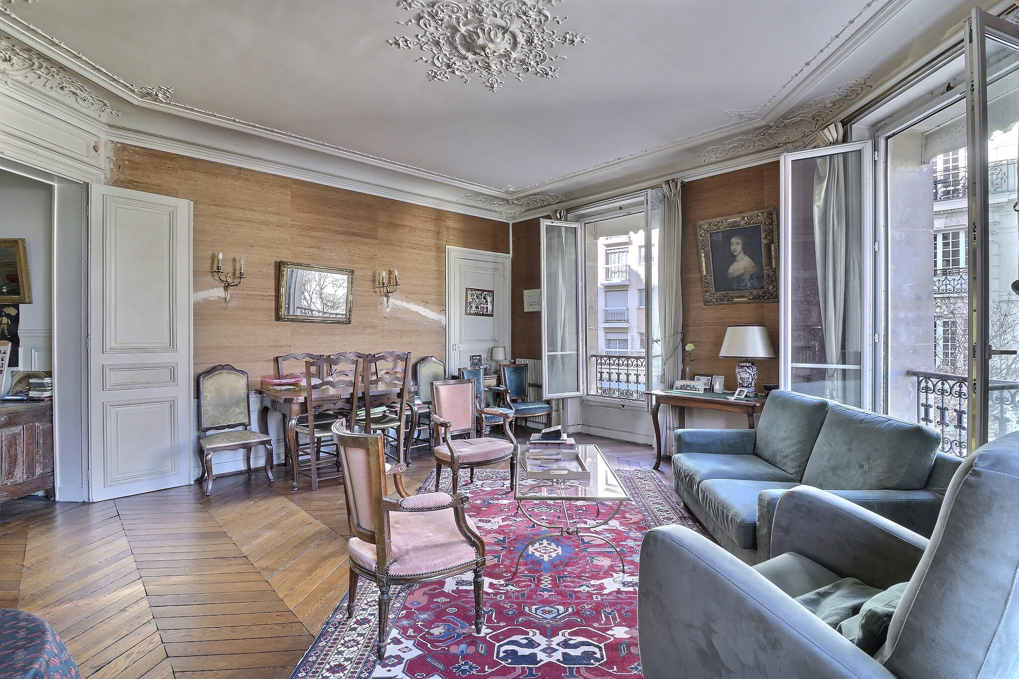 Au 2ème étage par ascenseur d'un bel immeuble Haussmannien parfaitement entretenu, un 4 pièces familial de 130 m² offrant de beaux volumes. Il se compose d'un bel espace de réception avec une entrée, un séjour d’angle avec trois fenêtres, une grande cuisine indépendante, trois chambres spacieuses dont deux ayant chacune un dressing attenant, une salle d’eau et une salle de bain complètent ce bien. Ce bien a su conserver son charme de l'ancien avec ses moulures, son parquet point de Hongrie et ses cheminées. Nous notons que ce bien nécessiterait d’être entièrement rafraichi mais que les fenêtres sont en double vitrage. Une cave agrémente ce bien.