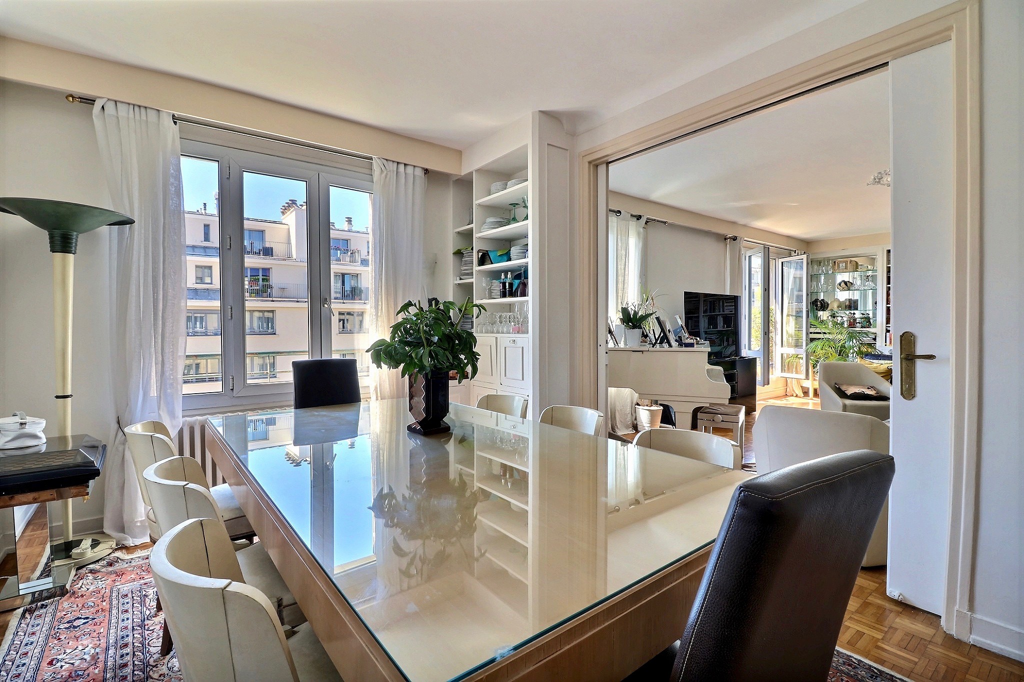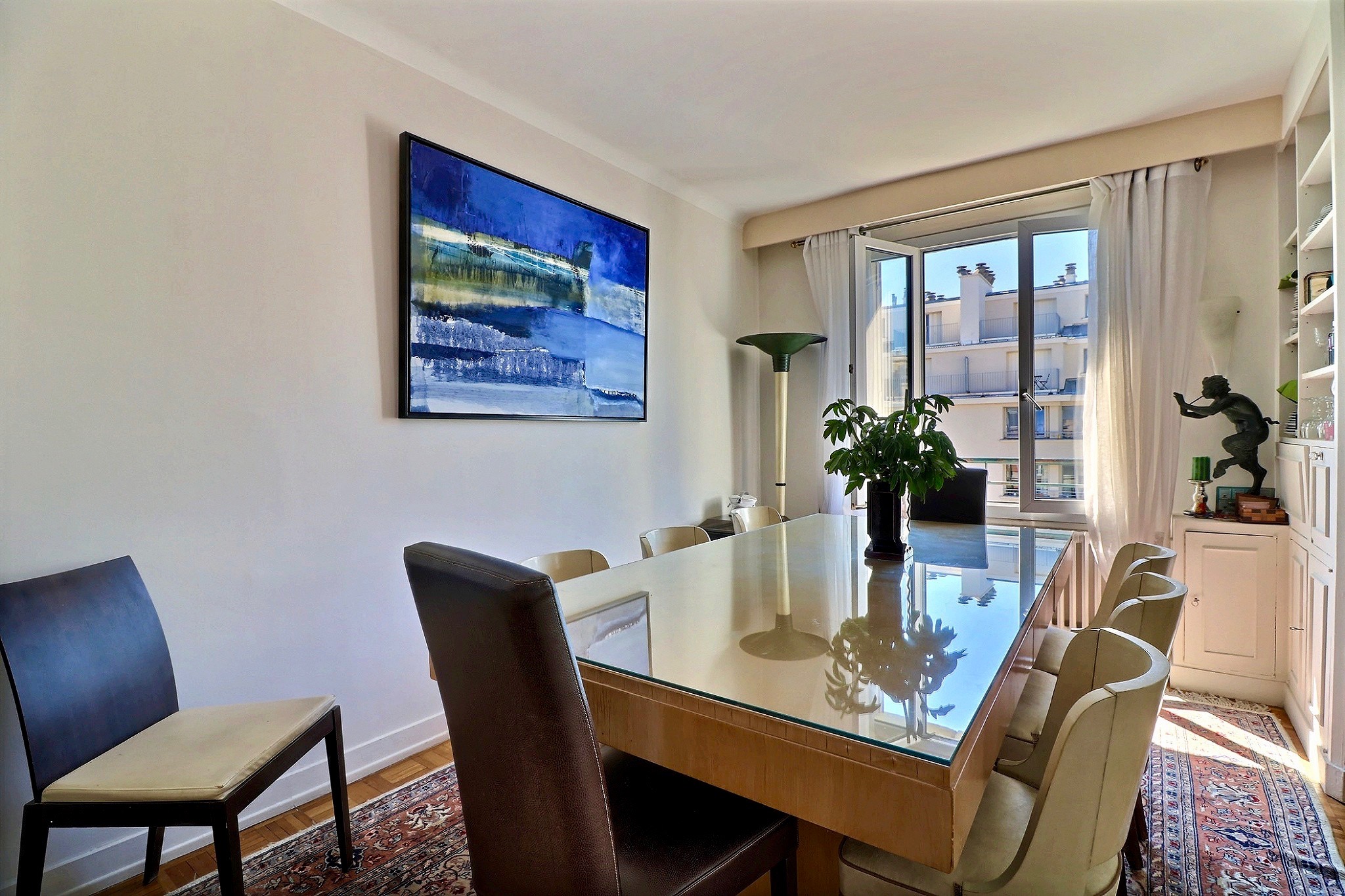 Proche du village d'Auteuil et de ses nombreux commerces. Situé au 7ème étage avec ascenseur d'un immeuble bien entretenu des années 60, un 4 pièces traversant composé d'une entrée, d'un vaste séjour avec un accès à un balcon exposé plein Ouest, d'une salle à manger, d'une cuisine indépendante aménagée et équipée avec un coin dinatoire, d'un espace nuit avec deux chambres, d'une salle d'eau et un espace avec de nombreux placards et d'un toilette indépendant. Possibilité de créer une troisième chambre. Son caractère traversant, ses nombreuses fenêtres et son étage élevé lui confèrent une très bonne luminosité tout au long de la journée. Une cave agrémente ce bien.