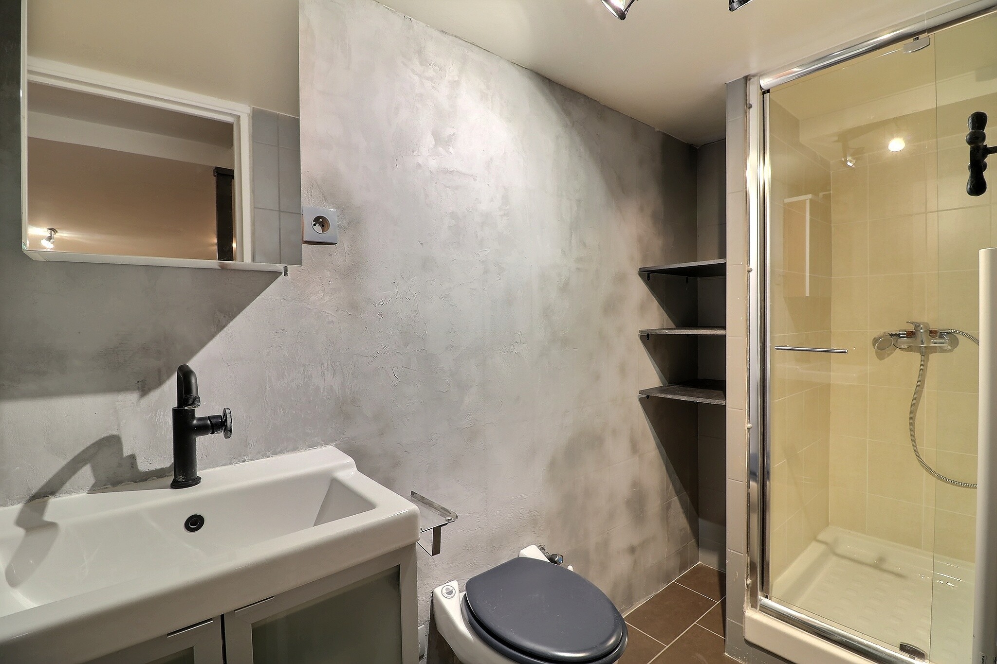 Le sous-sol aménagé est composé d'une grande pièce, d'une salle d'eau avec un toilette type sanibroyeur conforme et d'un dégagement.