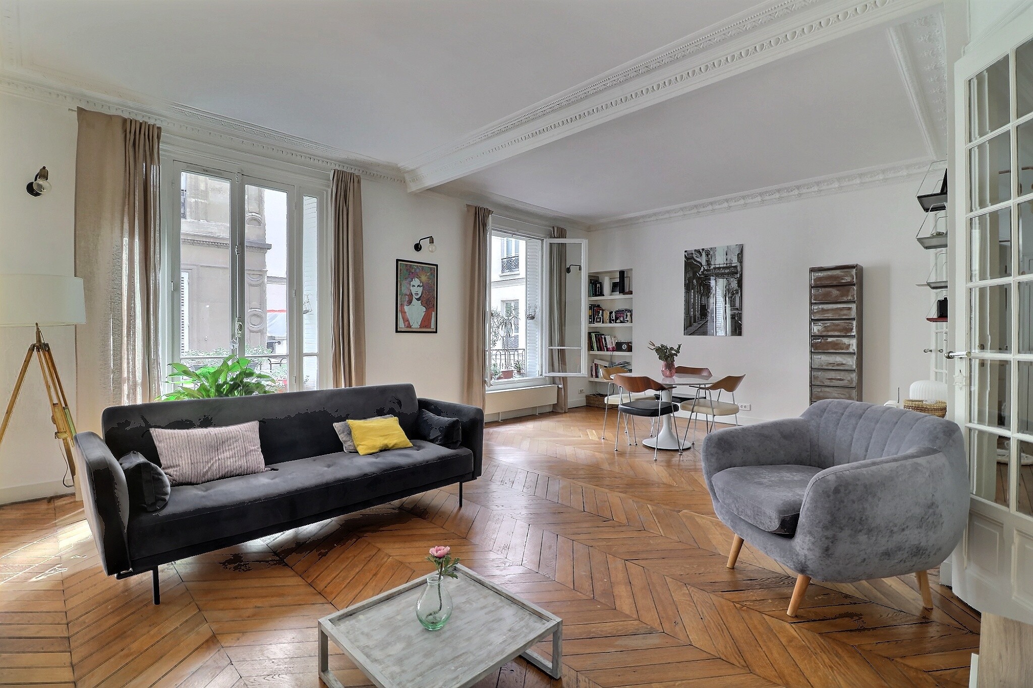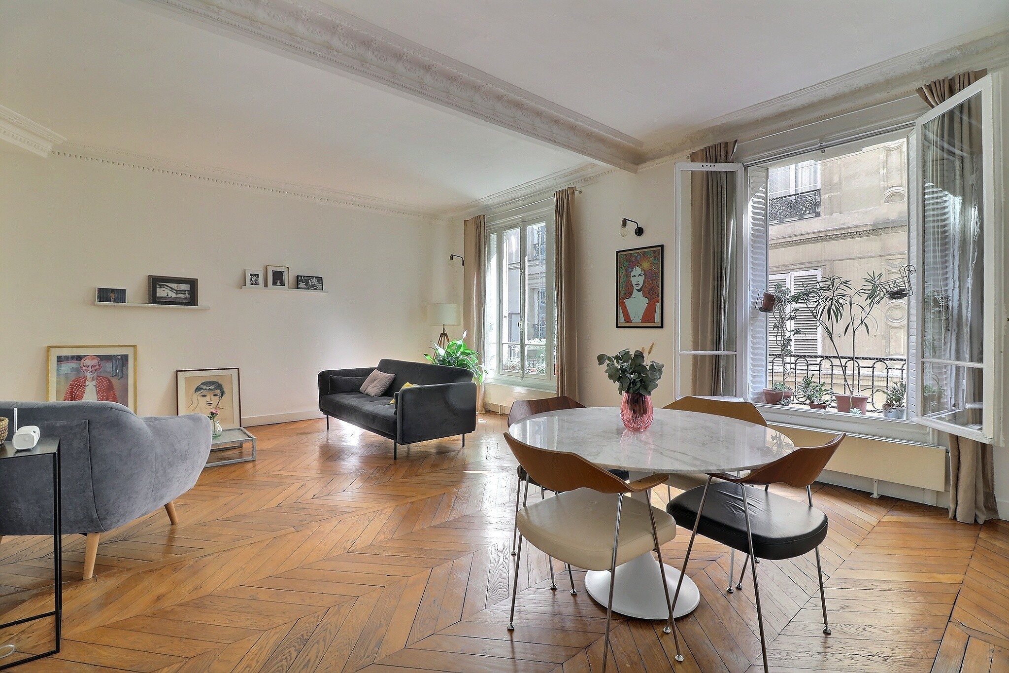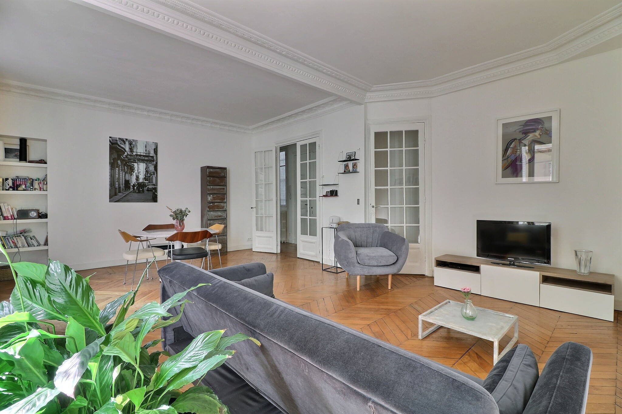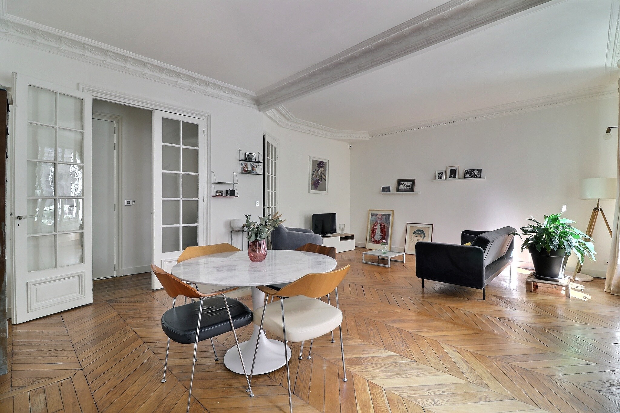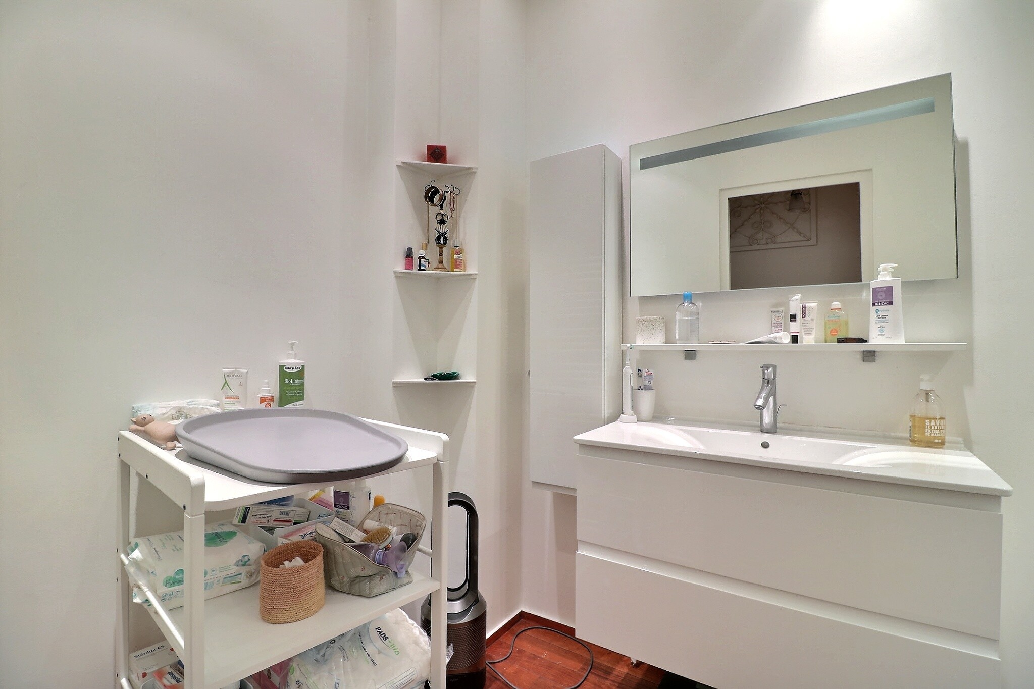 Situé au 1er étage par ascenseur d'un très bel haussmannien parfaitement entretenu. En bon état et offrant de belles prestations, un 4 pièces composé d'une entrée avec placards, d'un vaste double séjour, d'une cuisine indépendante aménagée et équipée, d'une grande chambre avec placards sur-mesure et une salle d'eau attenante, une deuxième chambre, une salle de bain et un toilette indépendant. Ce bien profite de beaux volumes et a su conserver son charme de l'ancien avec ses jolies moulures et son parquet point de Hongrie. Une cave agrémente ce bien.