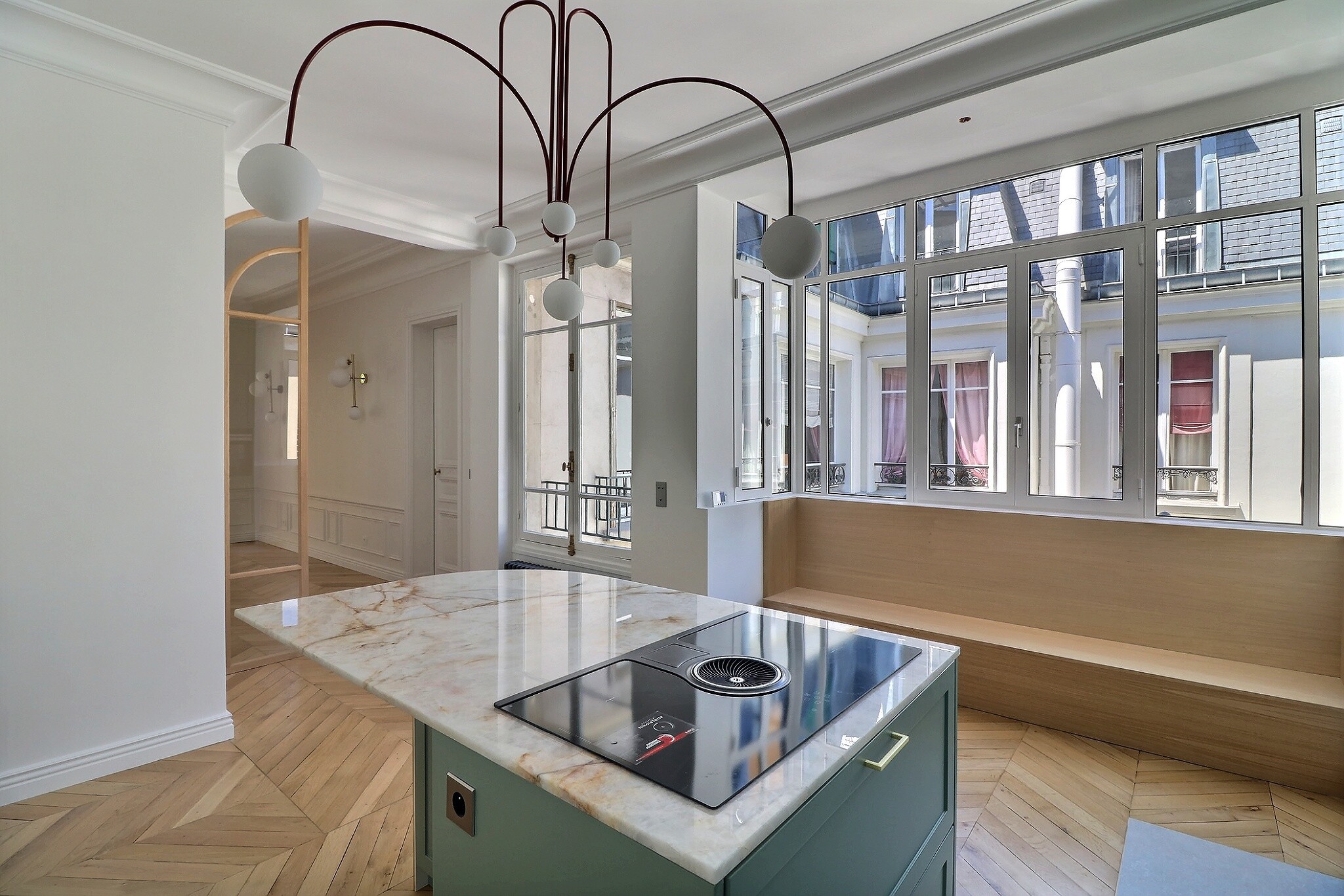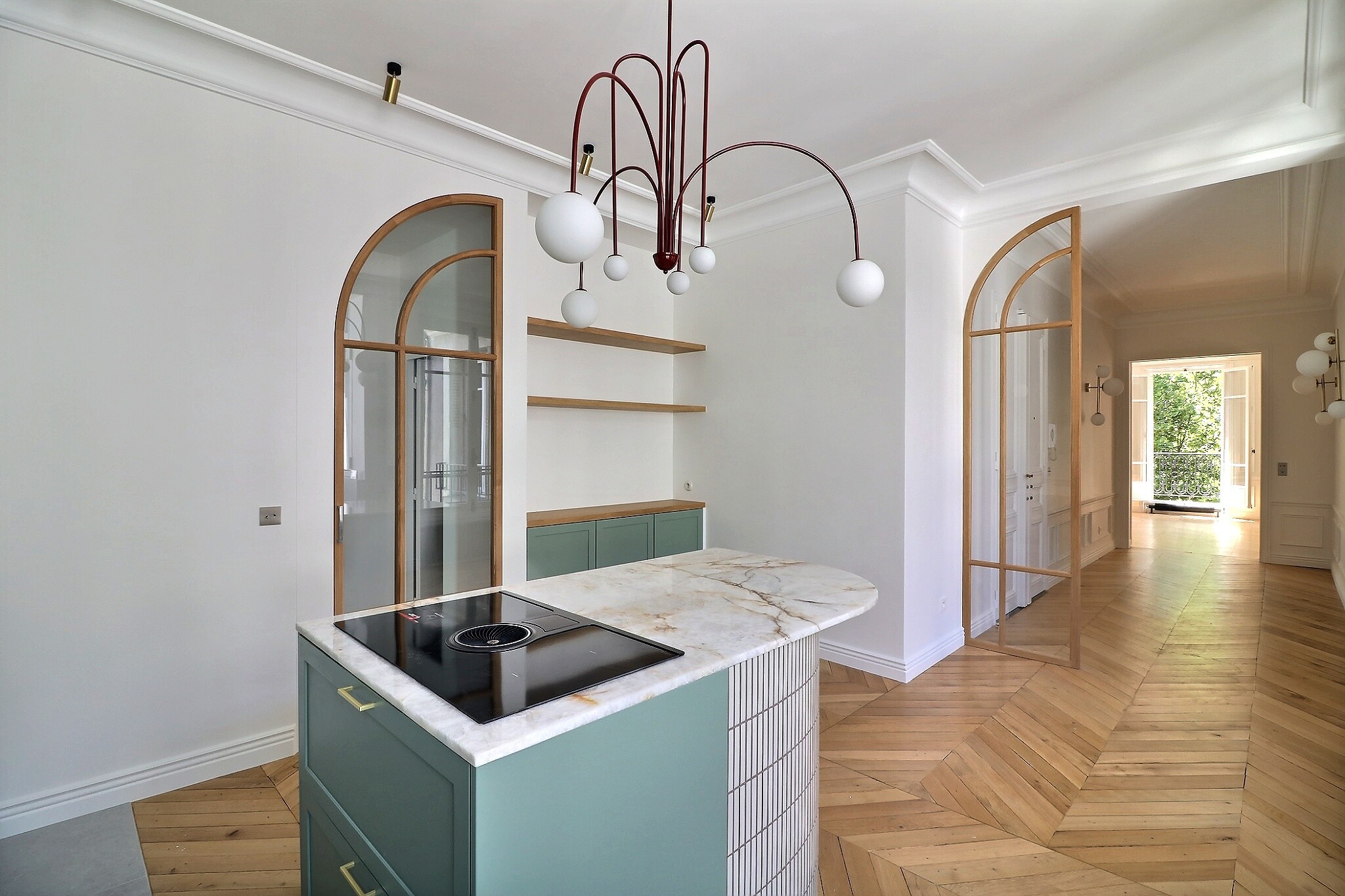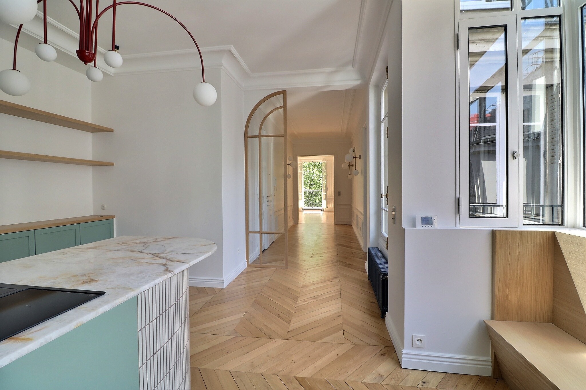 Situé au 5ème étage avec ascenseur et balcon, vue Tour Eiffel. Somptueuse cuisine ouverte aménagée et équipée. Vaste séjour - Galerie - Cuisine, 3 chambres avec Salle d'eau, toilettes, nombreux rangements. Appartement traversant calme, ensoleillé jamais habité.