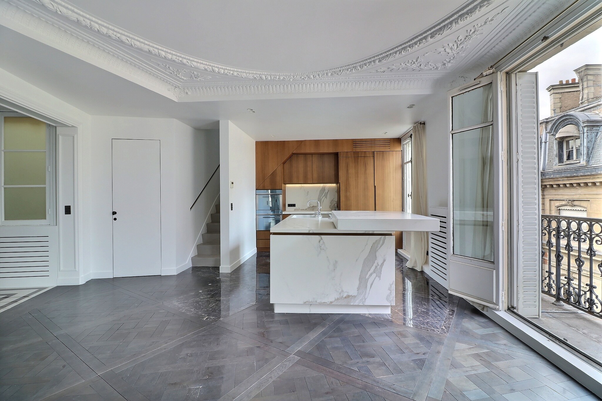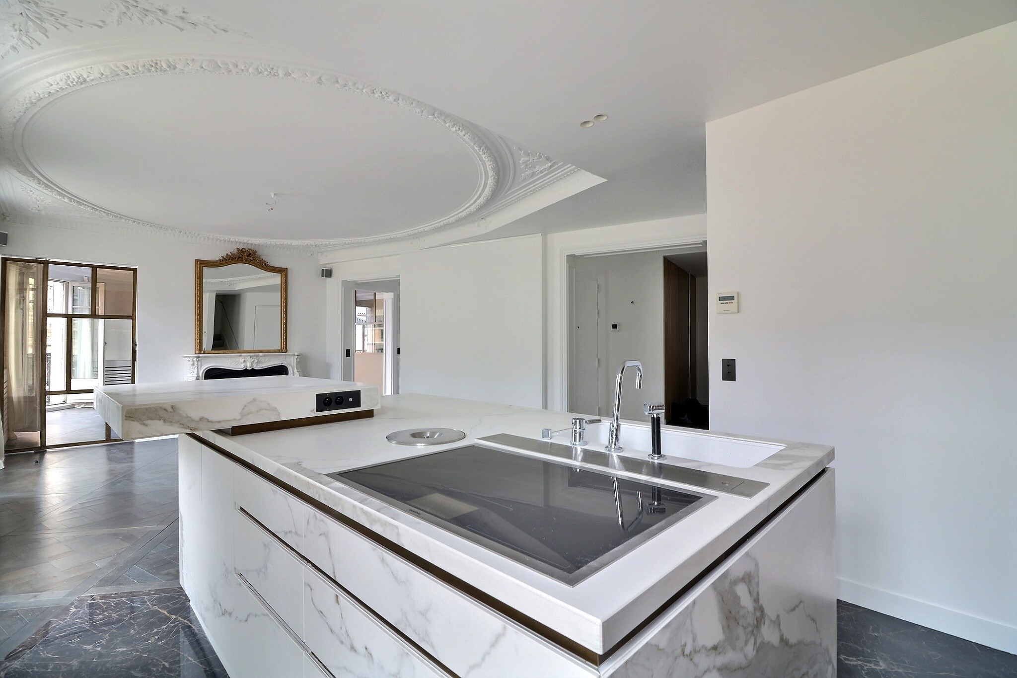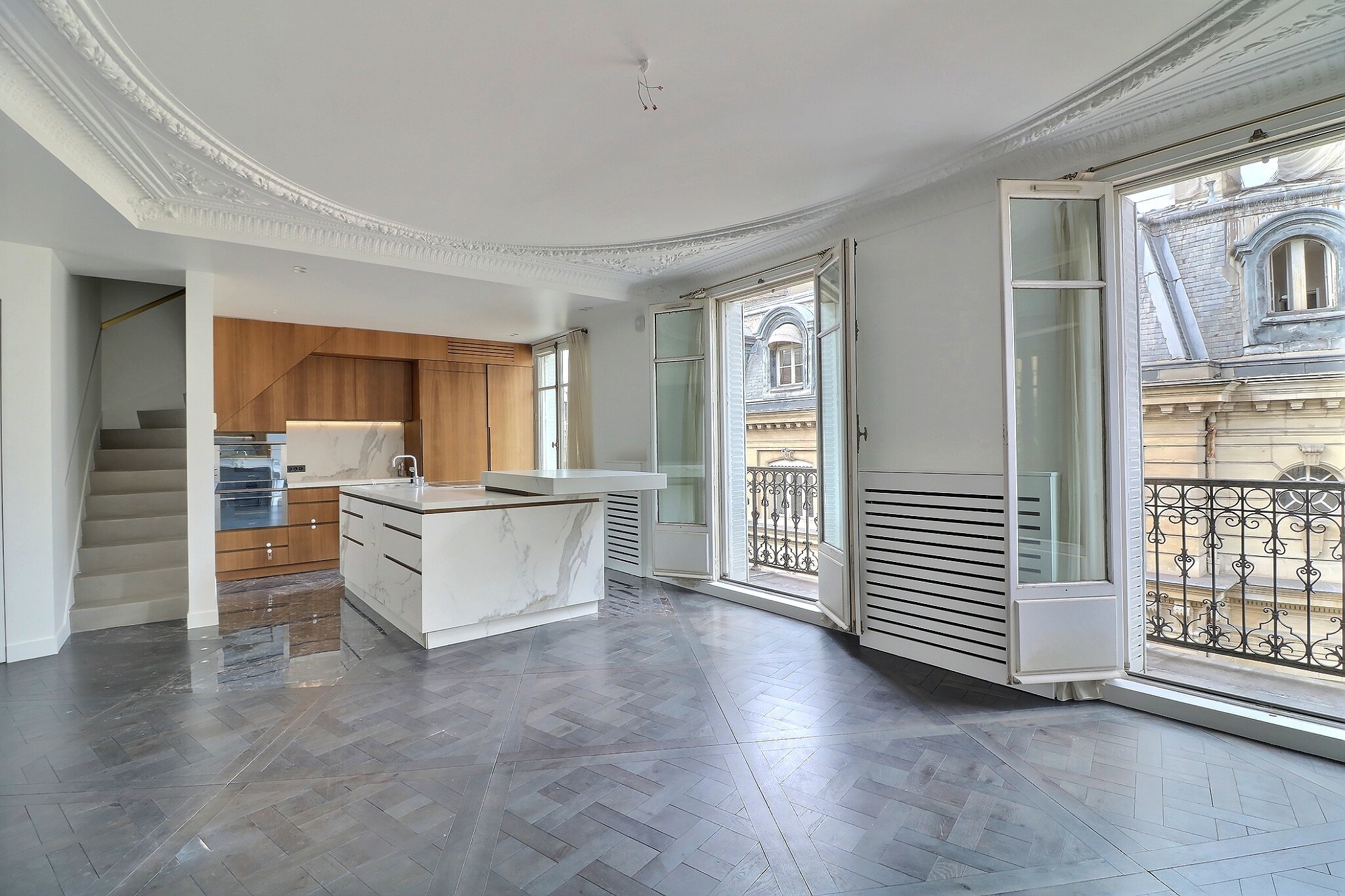Dans un immeuble Haussmannien; Seul à son étage et situé aux 5ème et 6ème étage, rarissime 6p en excellent état, prestation haut de gamme. Composé: entrée -réception, séjour cuisine ouverte contemporaine, salon en rotonde avec coin bureau, 3 chambres avec salle d’eau, toilettes dont une vaste suite parentale à l'étage avec dressing. Pièce de service utilisable en bureau indépendant ou vaste dressing. Très ensoleillé, balcon tout autour de l’appartement. Chauffage au gaz, électricité aux normes, fenêtre en double vitrage, climatisation. Cave. Appartement non meublé . Bail dérogatoire loi 89, bail personnel code civil-utilisation en résidence secondaire ou logement de fonction- dépôt de garantie exigé de 10 000€. Loyer 6250€cc/5950€hc. Honoraires 6000€ttc
