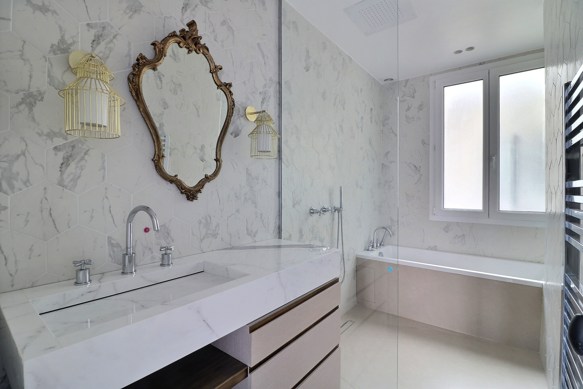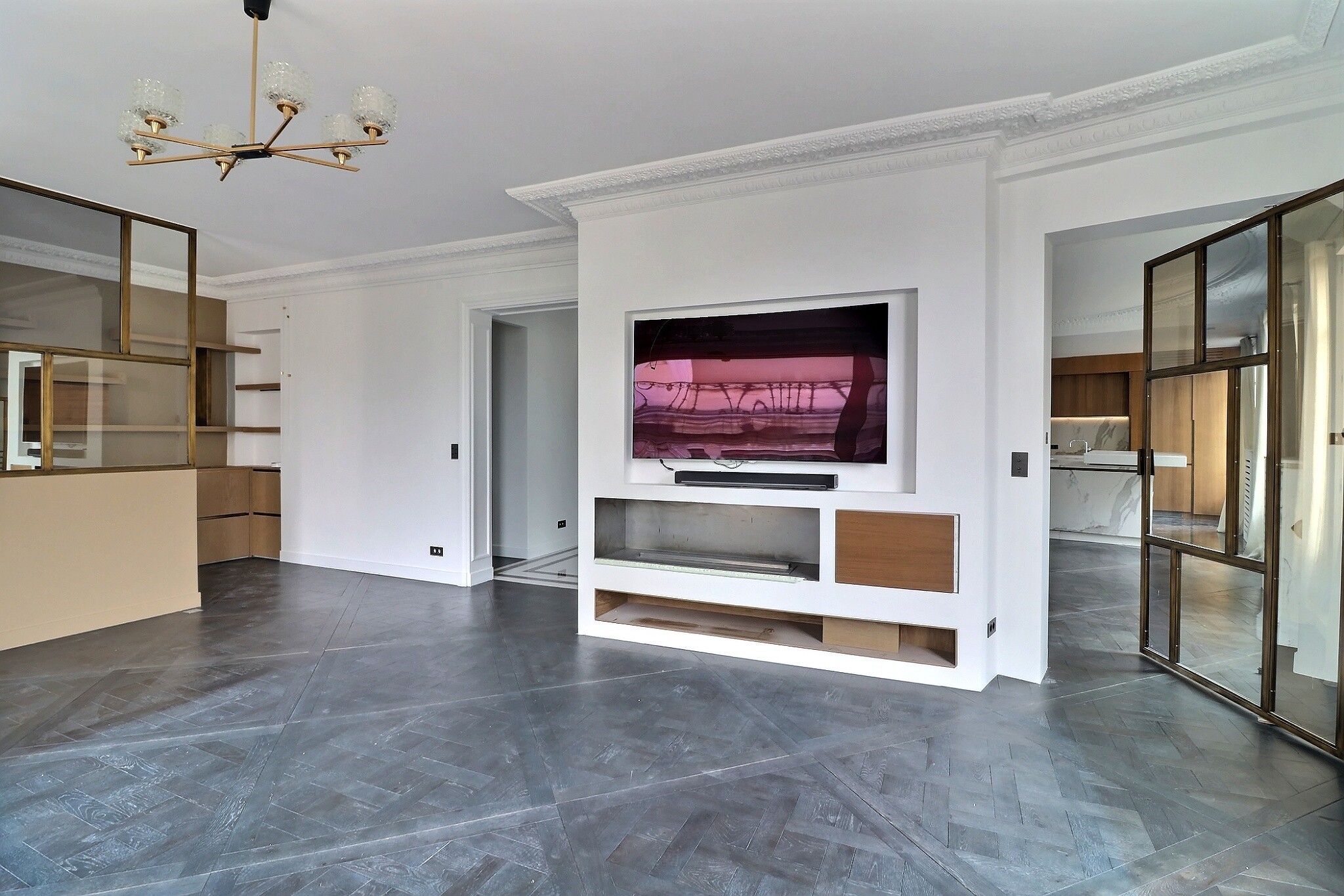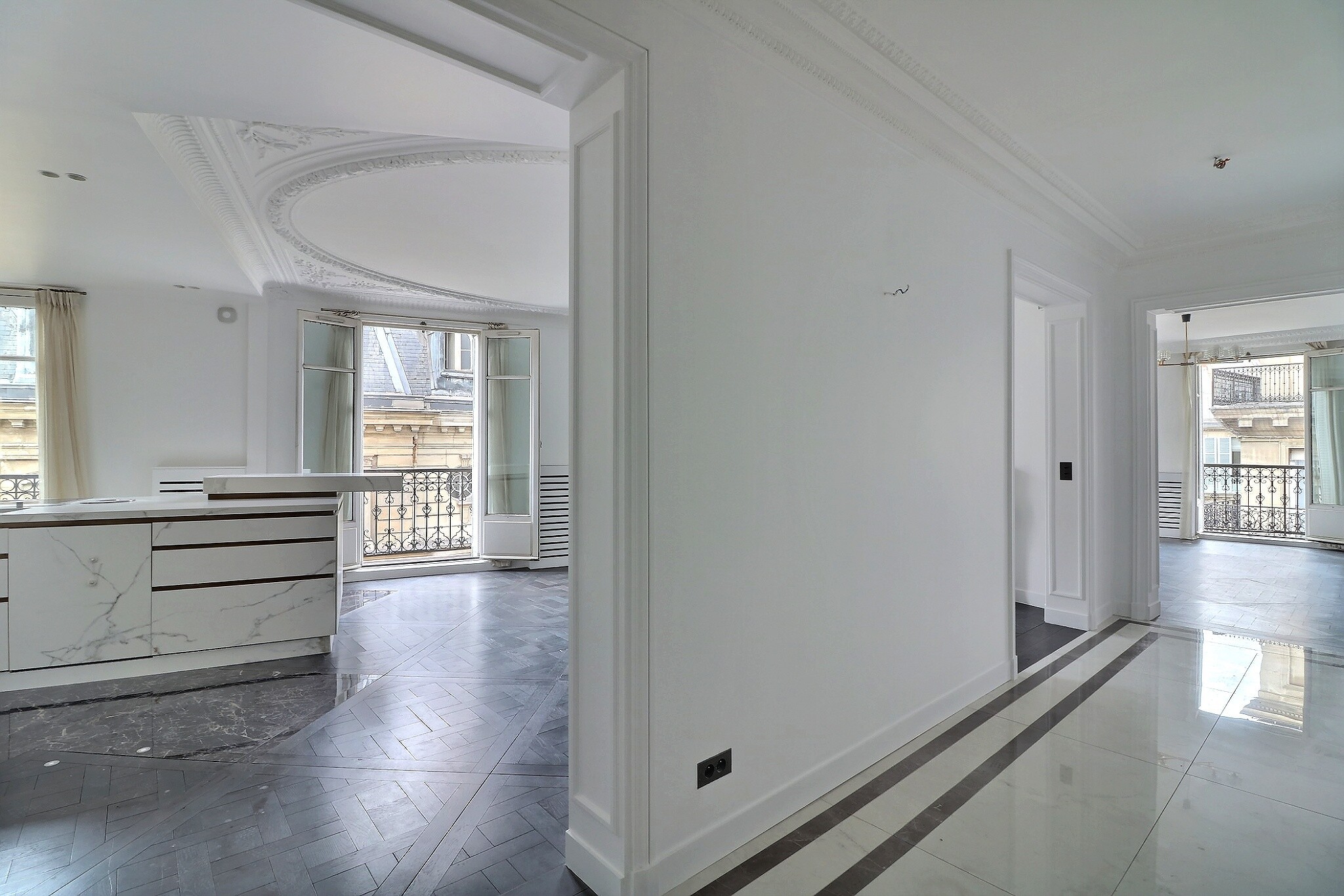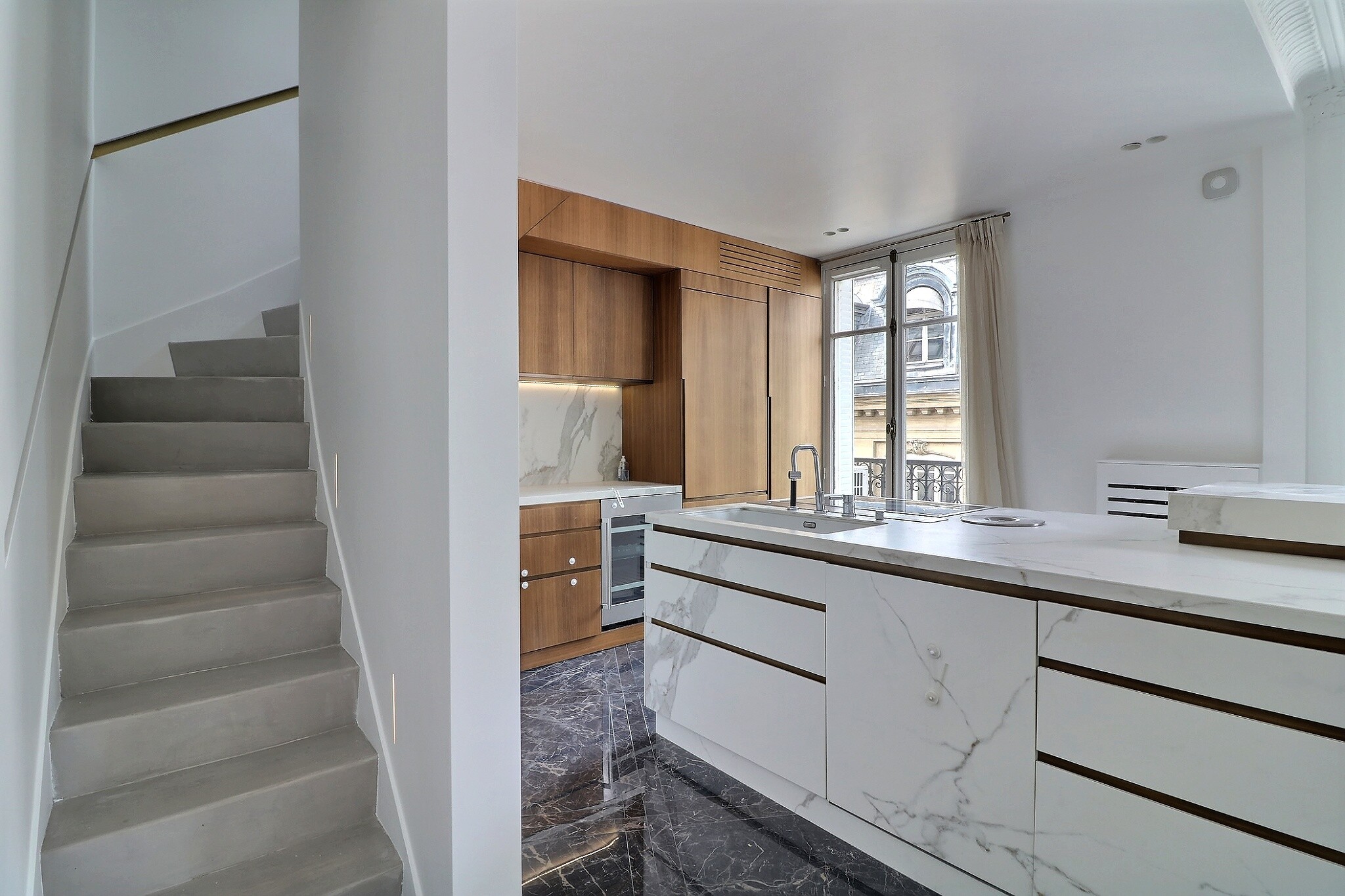 Dans un immeuble Haussmannien; Seul à son étage et situé aux 5ème et 6ème étage, rarissime 6p en excellent état, prestation haut de gamme. Composé: entrée -réception, séjour cuisine ouverte contemporaine, salon en rotonde avec coin bureau, 3 chambres avec salle d’eau, toilettes dont une vaste suite parentale à l'étage avec dressing. Pièce de service utilisable en bureau indépendant ou vaste dressing. Très ensoleillé, balcon tout autour de l’appartement. Chauffage au gaz, électricité aux normes, fenêtre en double vitrage, climatisation. Cave. Appartement non meublé . Bail dérogatoire loi 89, bail personnel code civil-utilisation en résidence secondaire ou logement de fonction- dépôt de garantie exigé de 10 000€. Loyer 6250€cc/5950€hc. Honoraires 6000€ttc