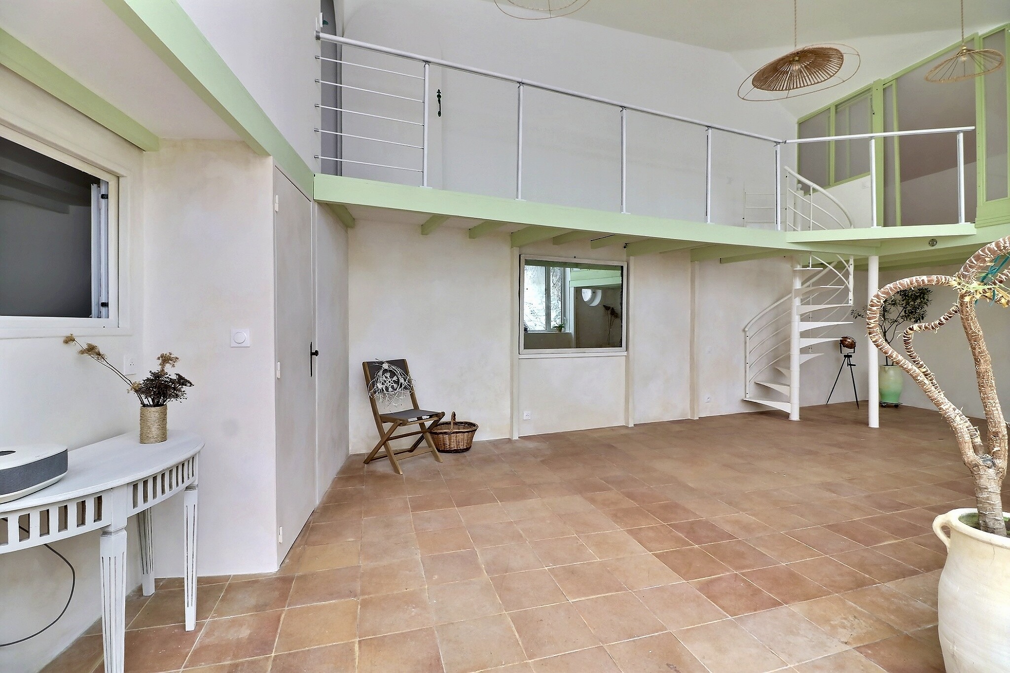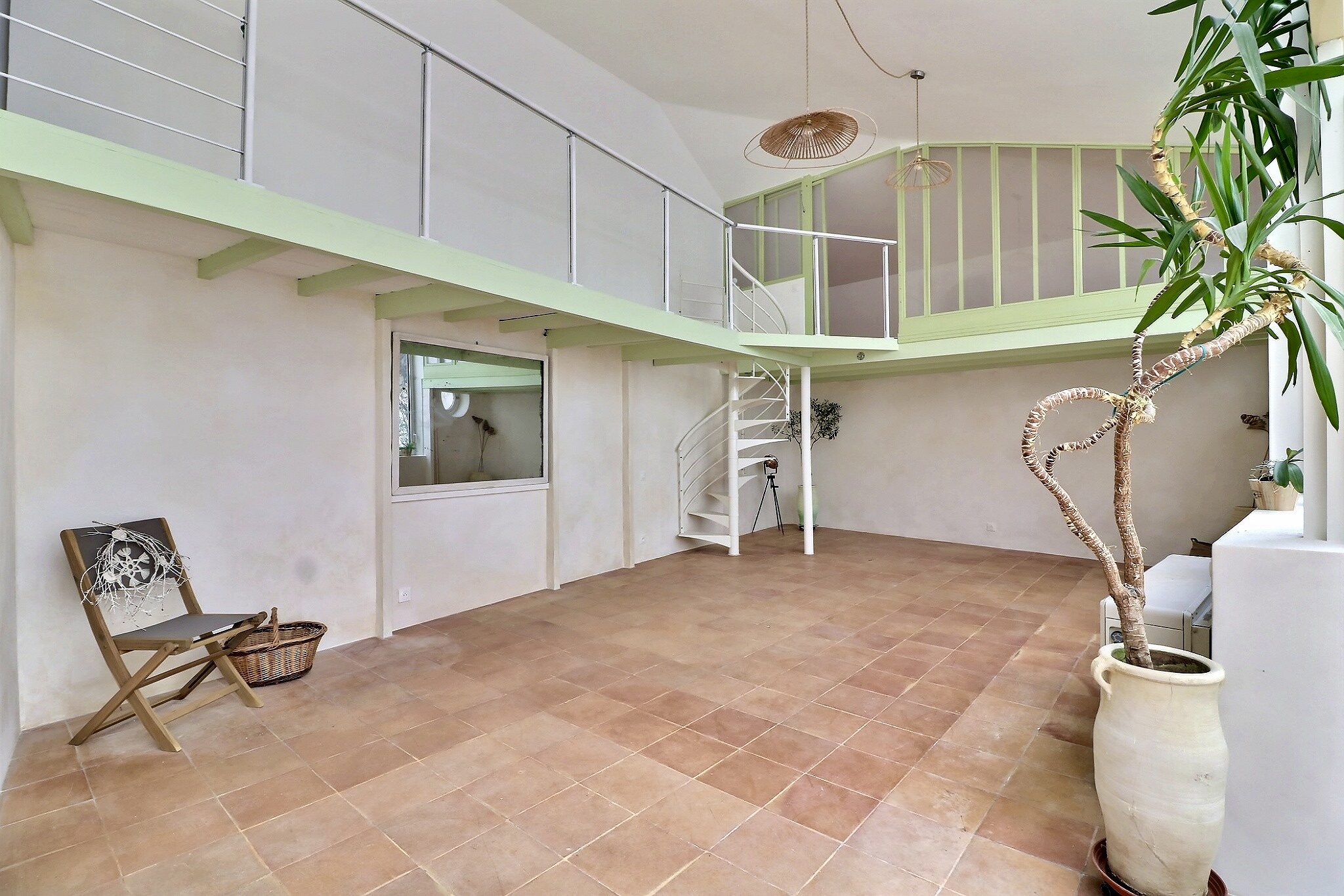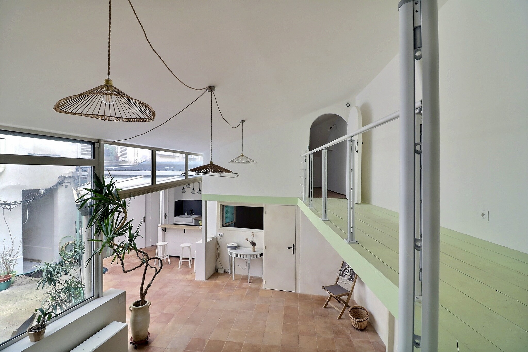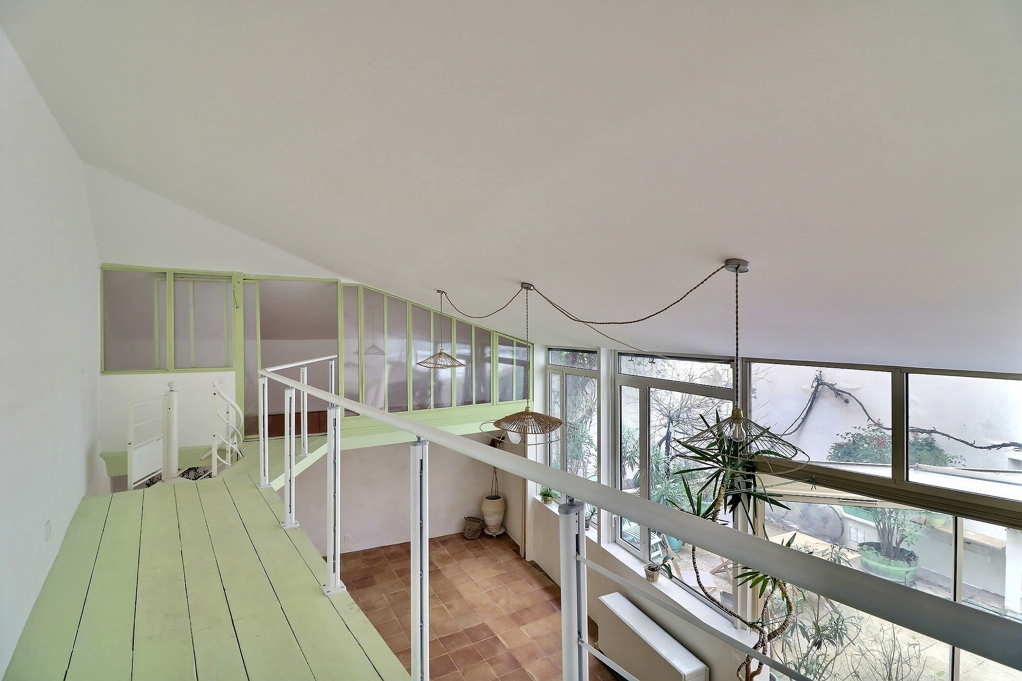 Ce bien est composé d'une entrée, d'une cuisine ouverte et aménagée face jardin, d'un séjour-salle à manger, de 2 chambres dont une accessible par mezzanine, d'un coin bureau ou salon lecture, d'une salle d'eau et de toilettes séparés