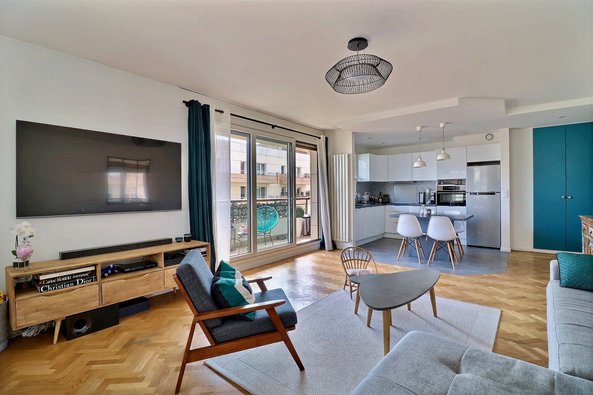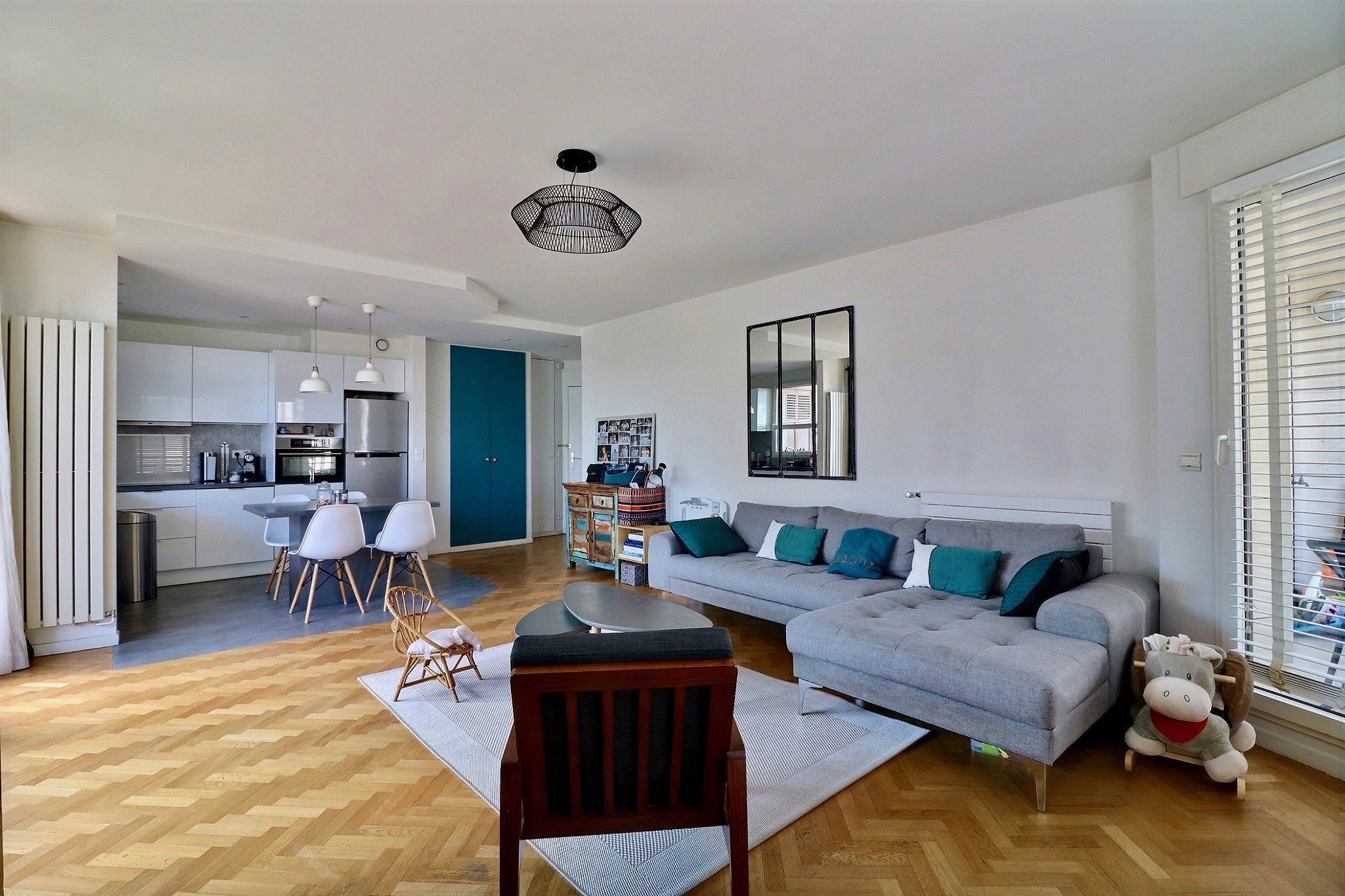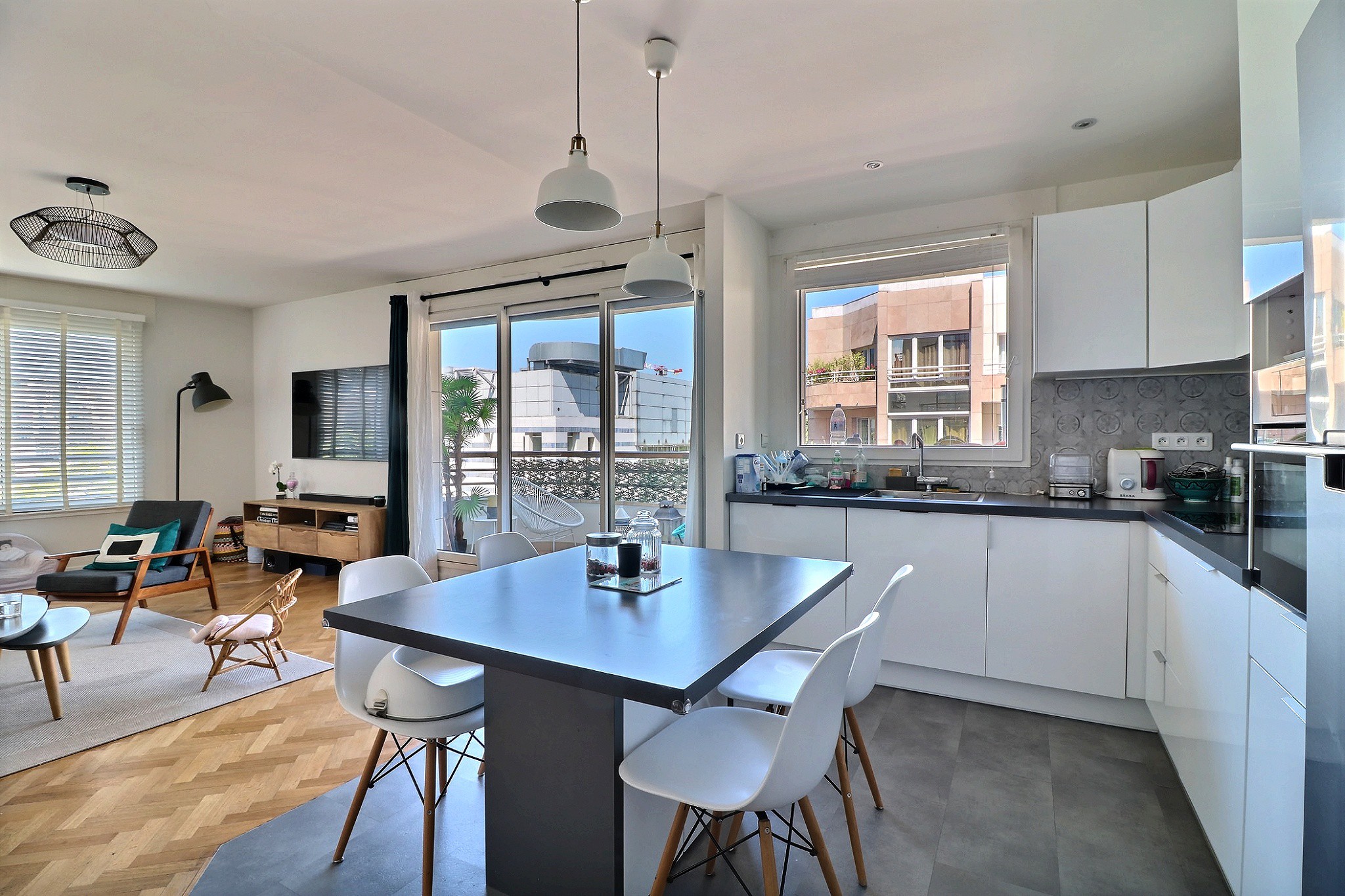 Dans une résidence récente de standing parfaitement entretenue. Au 4e étage avec ascenseur, un bel appartement familial composé d'une entrée, d'un double séjour en angle avec une cuisine ouverte entièrement aménagée et équipée de 35 m². Cet ensemble séjour-cuisine, donne accès aux deux balcons. Deux chambres très agréables sur l'un des balcons, avec grands rangements. Une salle de bain et un toilette indépendant. En très bon état, cet appartement profite de beaux volumes et d'une belle luminosité grâce à ses nombreuses et grandes ouvertures et à sa triple exposition. Un emplacement de parking (possibilité d’en louer un deuxième) et une cave agrémentent ce bien.