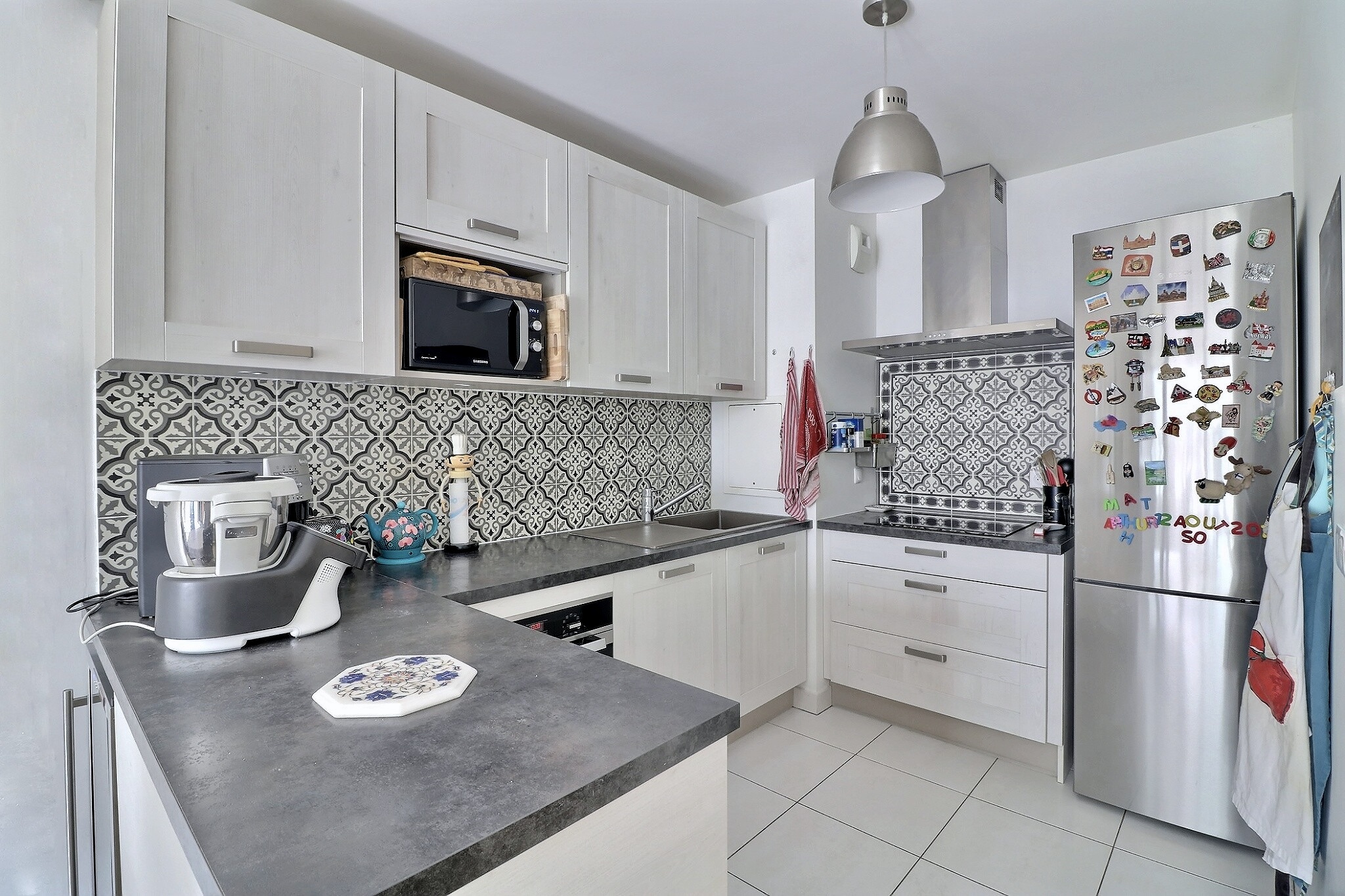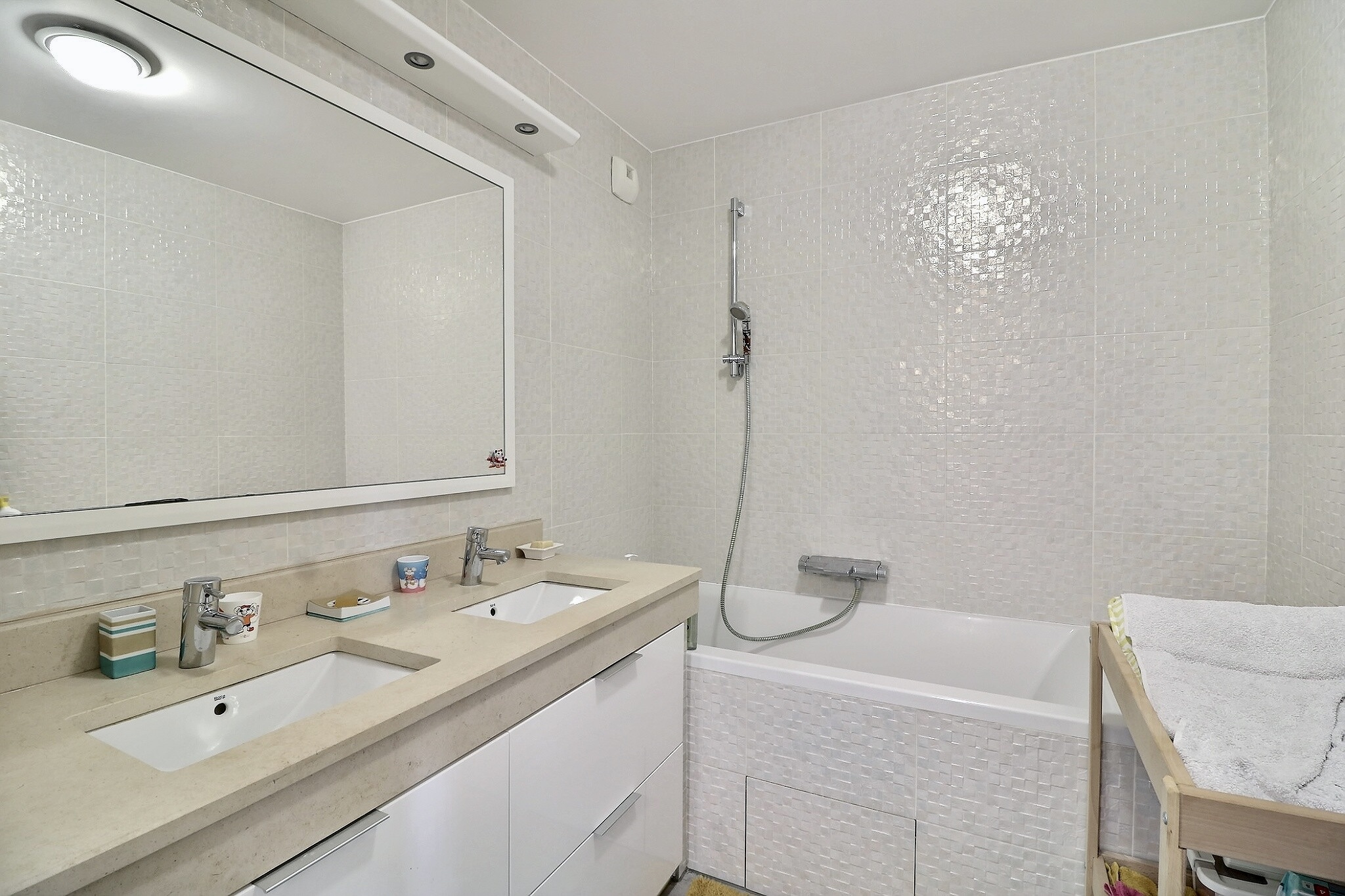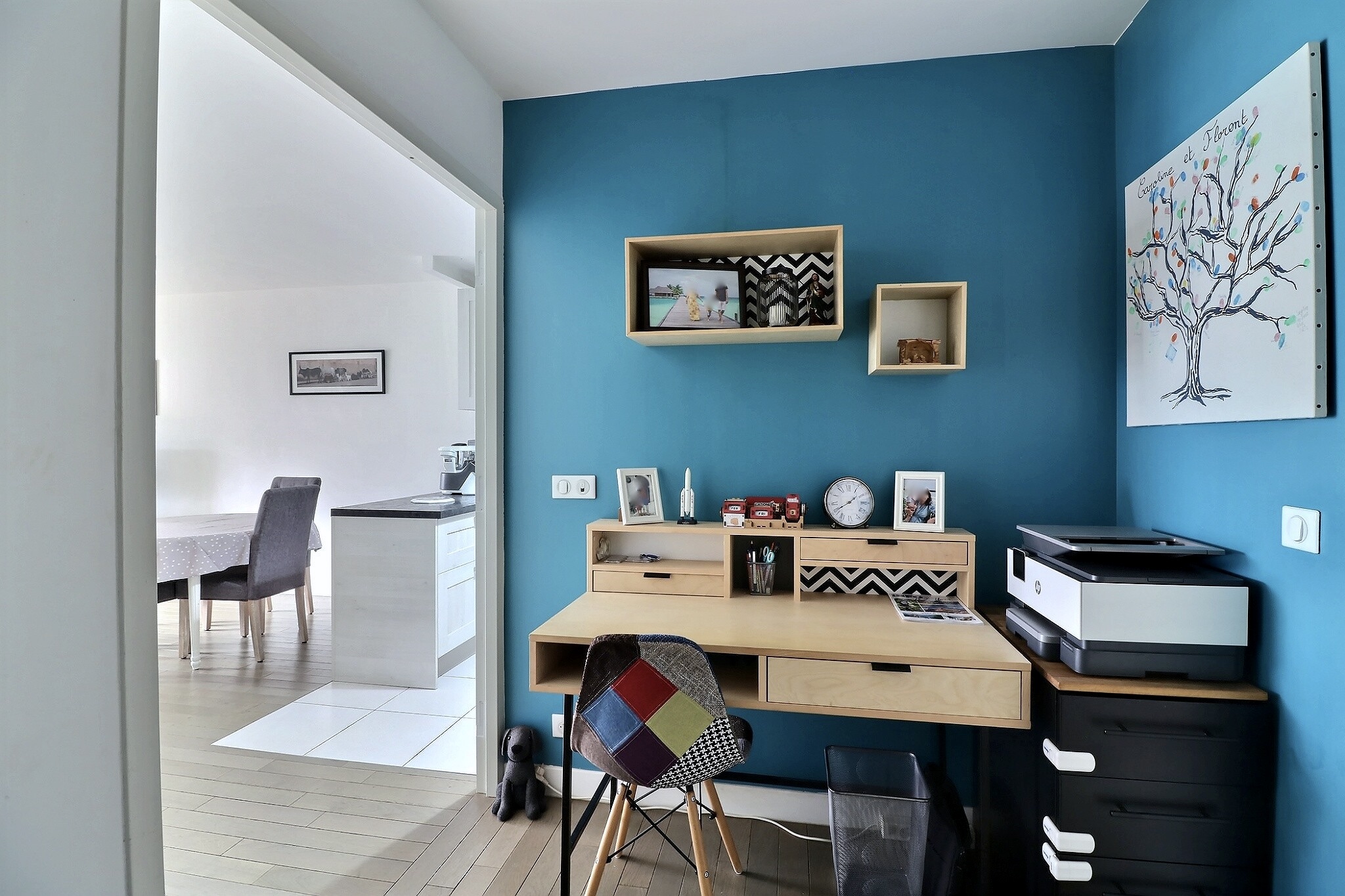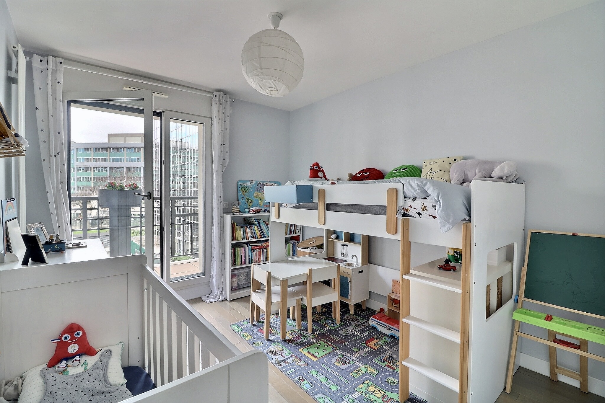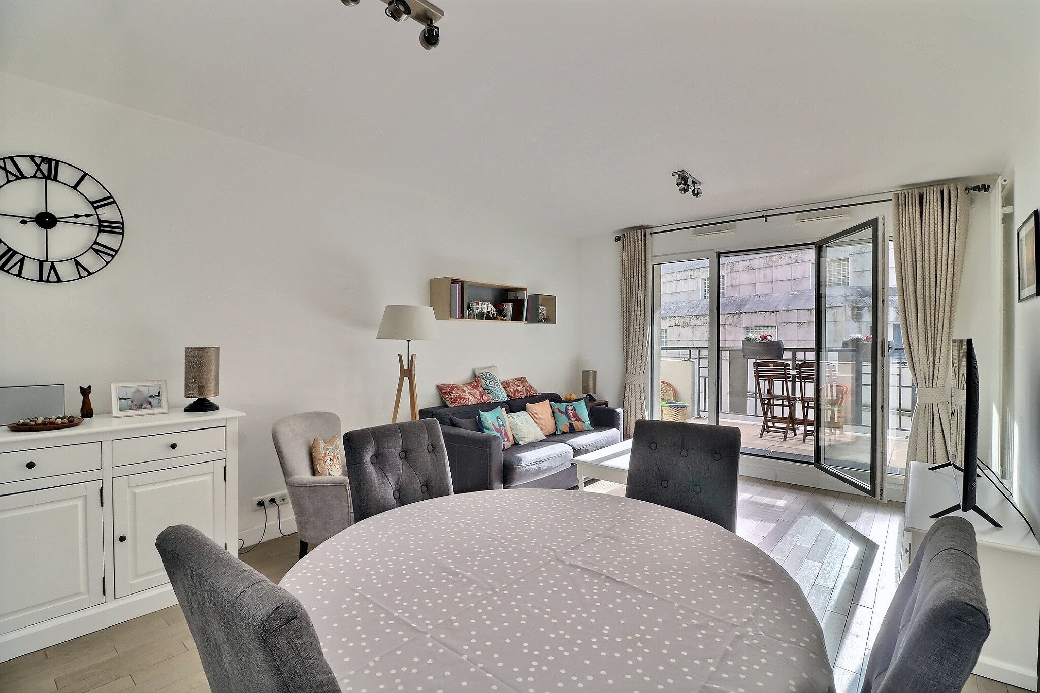 En parfait état, cet appartement est composé d'une entrée avec un espace bureau avec des placards sur mesure, d’un séjour/salle à manger donnant sur un grand balcon exposé plein Sud au calme sur jardin et sans vis à vis, d’une cuisine ouverte entièrement aménagée et équipée.