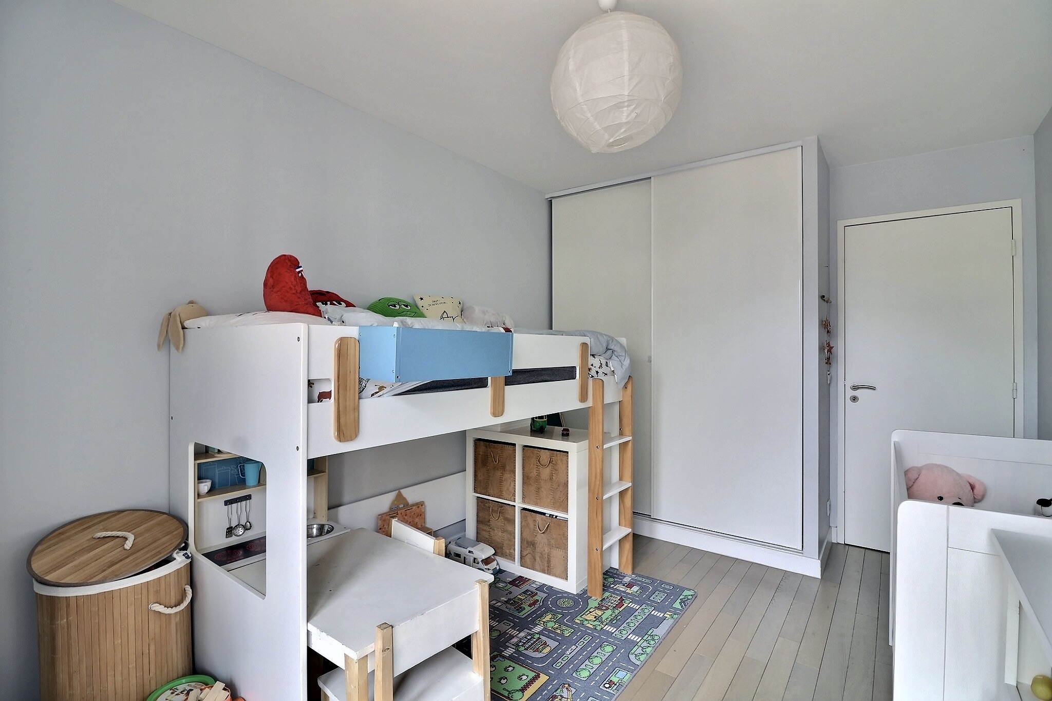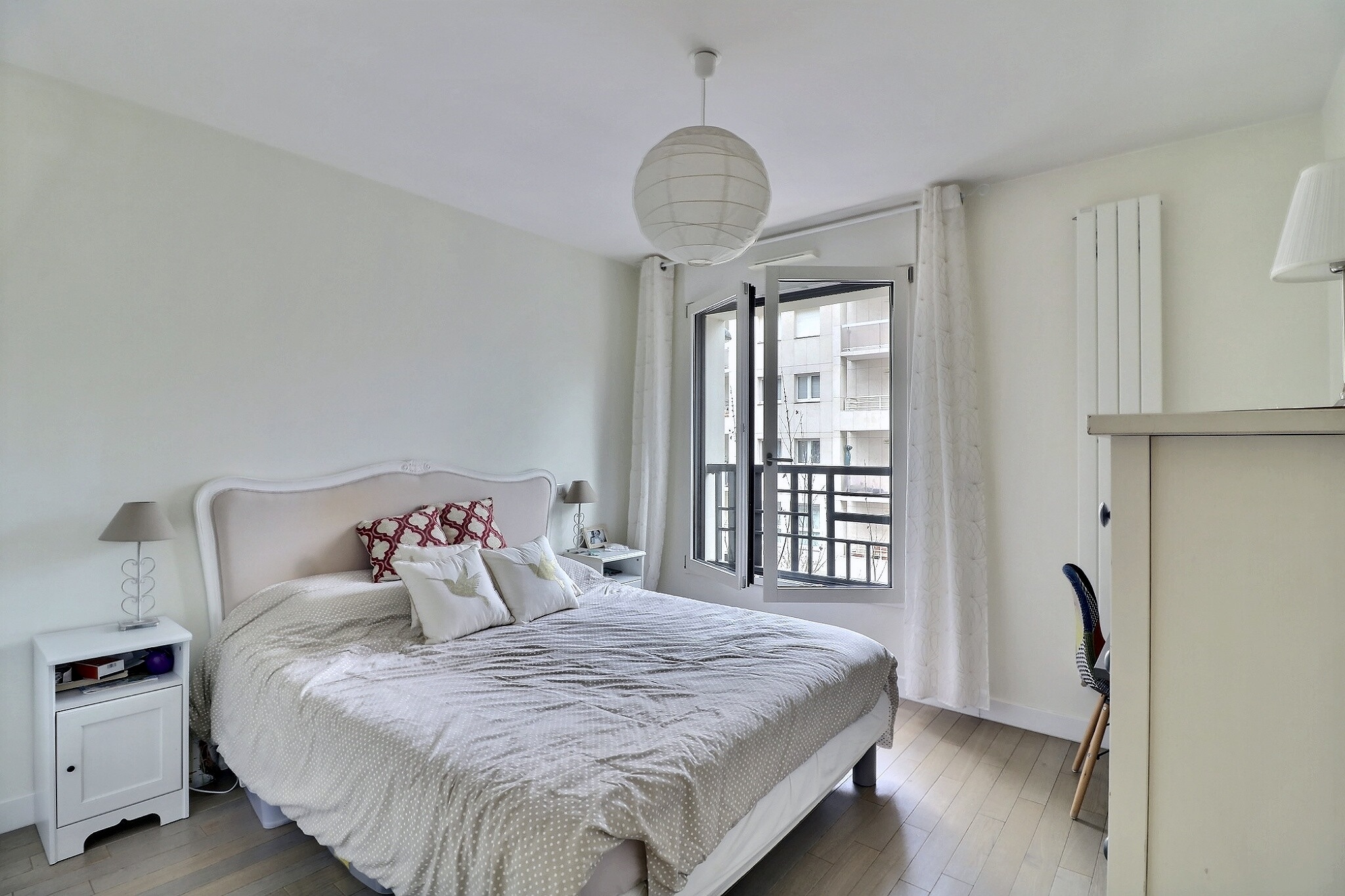 La partie nuit se compose de deux grandes chambres avec placards dont une ayant accès à un balcon, d’une belle salle de bain et d’un toilette indépendant.
