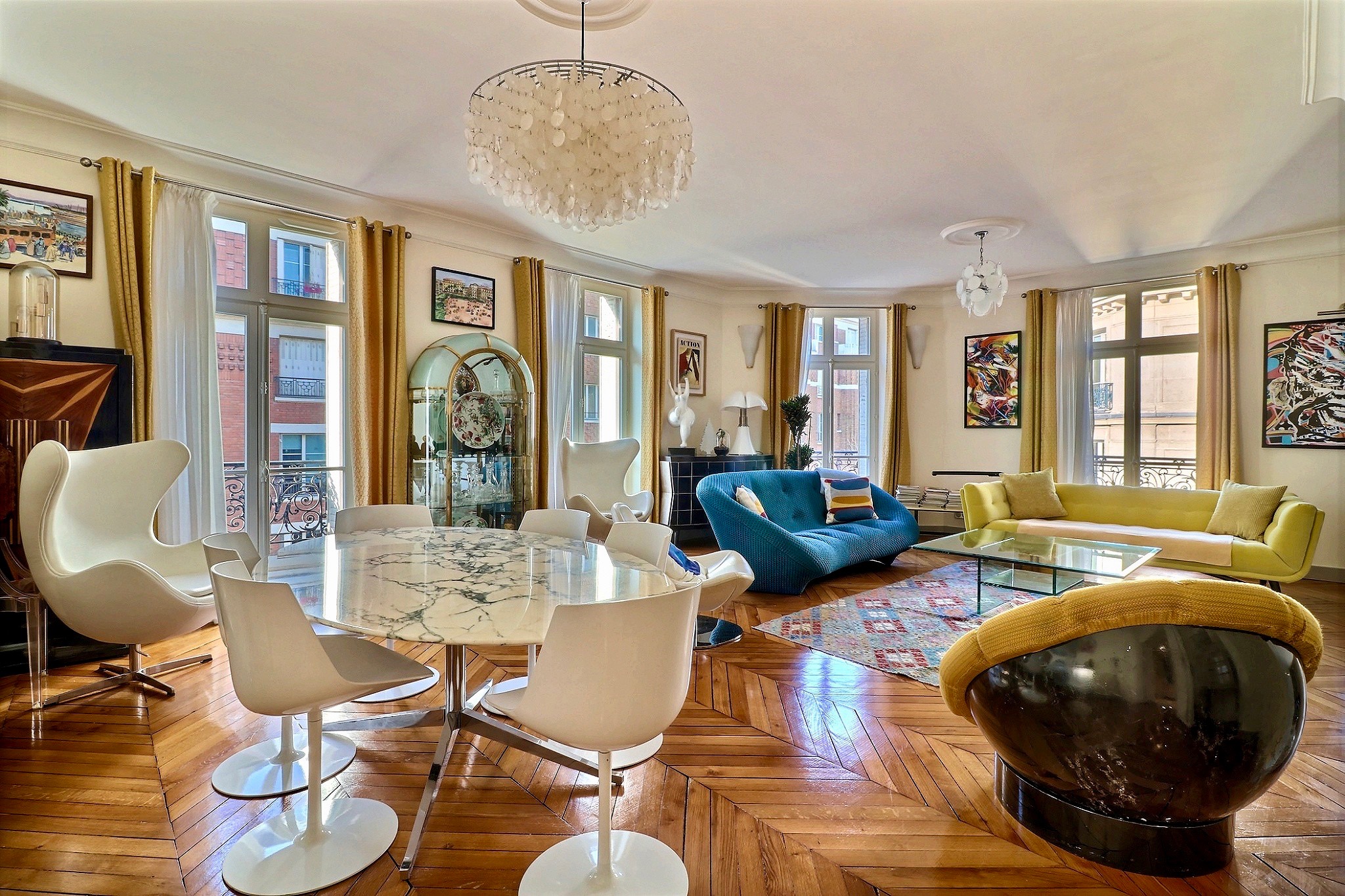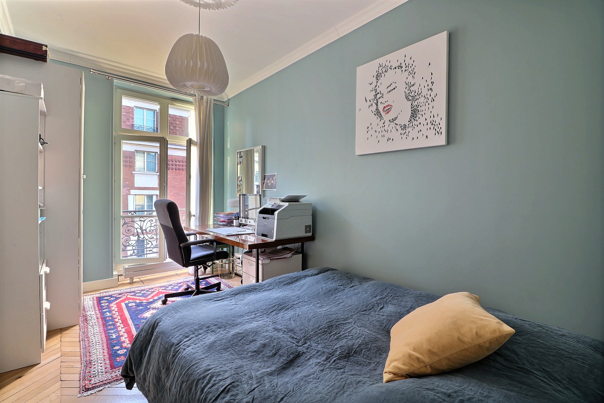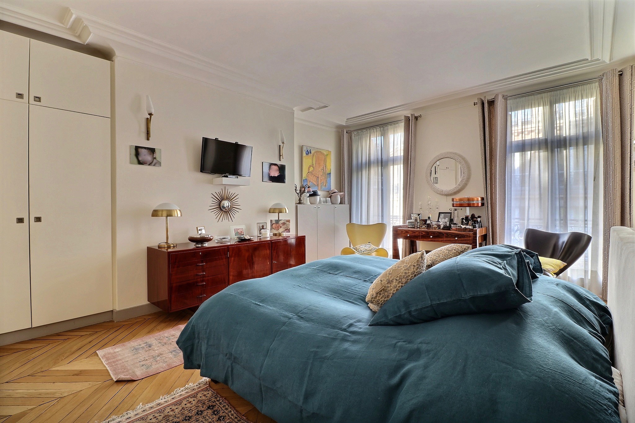 Situé au 4ème étage par ascenseur d'un bel haussmannien parfaitement entretenu, un appartement familial profitant de beaux volumes (2,90m d'hauteur sous plafond). Entièrement refait et offrant des prestations haut de gamme, il se compose d'une entrée, d'un vaste séjour d'angle d'environ 45m² avec quatre fenêtres et une cheminée, d'une cuisine indépendante aménagée et équipée avec un coin dinatoire, d'un espace nuit avec deux chambres, une salle d'eau et un dressing, une suite parentale avec une grande salle bain équipée d'une baignoire balnéo, une douche à l'italienne et un dressing attenant et enfin une buanderie et un toilette invité. Ce bien a su conjuguer esprit contemporain et charme de l'ancien, il profite de nombreux aménagements de confort, tels qu'un système domotique et des rangements sur mesure. Une cave agrémente l'appartement.