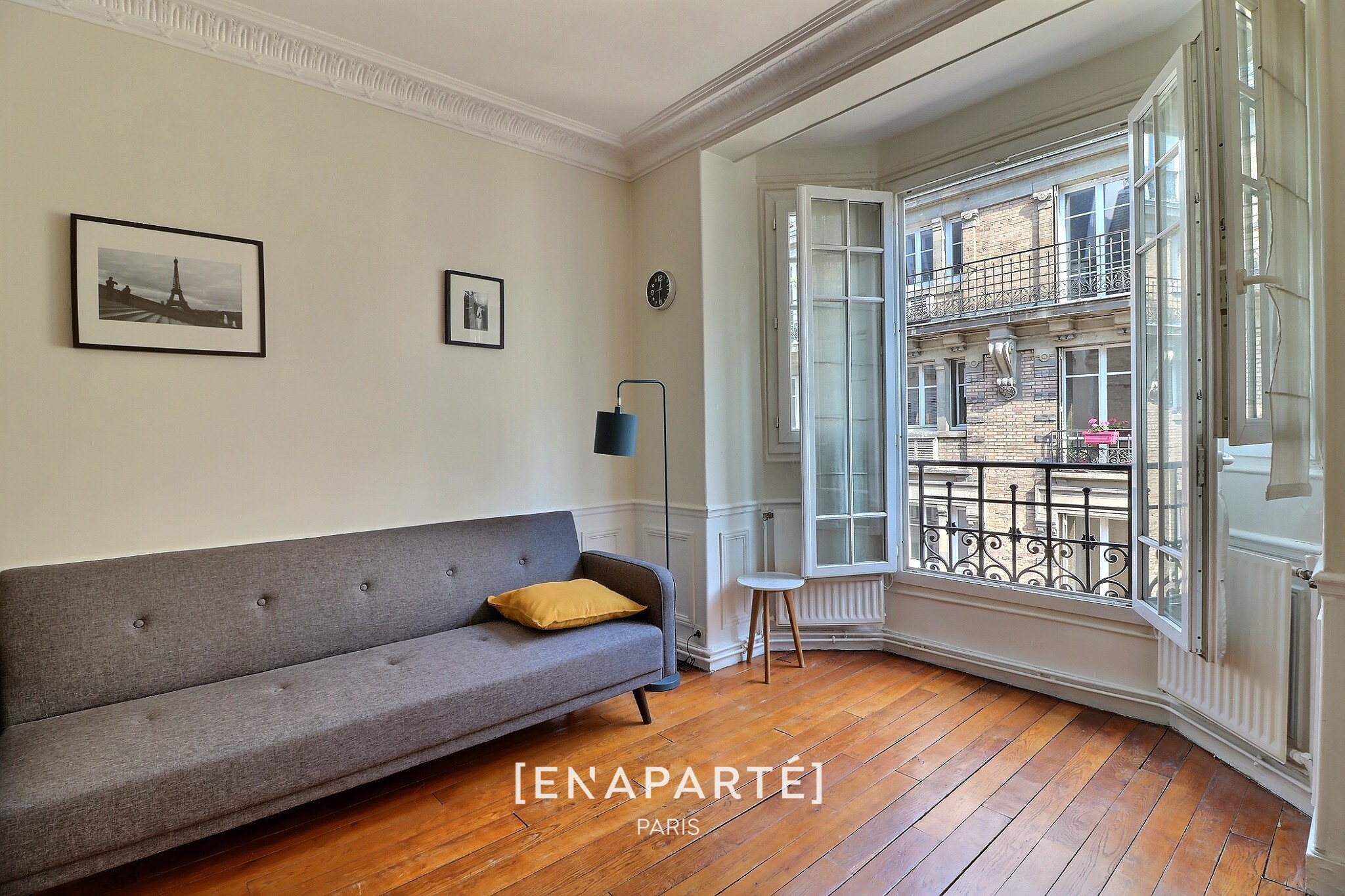 [ENAPARTÉ] Vous propose un appartement lumineux et tout confort, situé dans une rue calme du 16ème arrondissement entre l'Arc de Triomphe et le Trocadéro au 4ème étage (sans ascenseur) d'un immeuble de la fin du XIXe siècle.