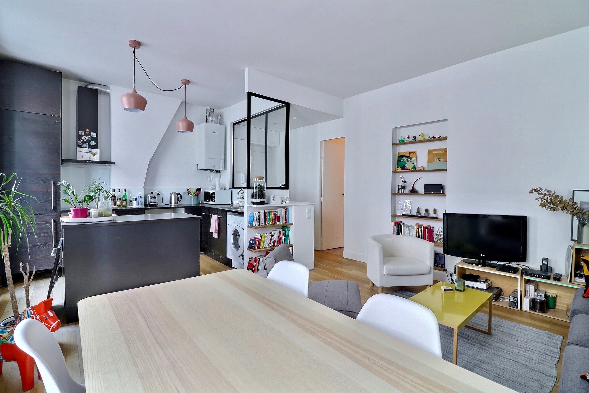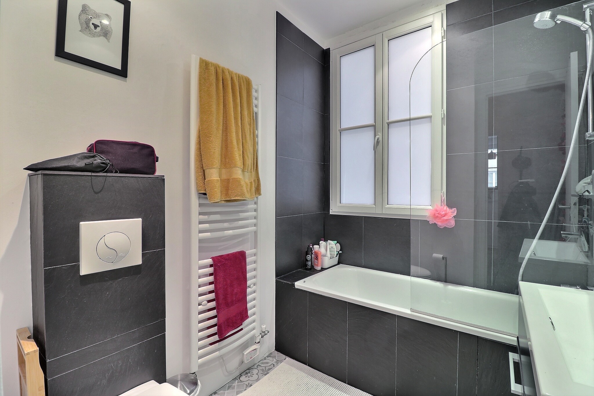Situé au 1er étage d’un immeuble en pierre de Paris bien entretenu, un deux pièces profitant d'un plan optimisé et de beaux volumes.