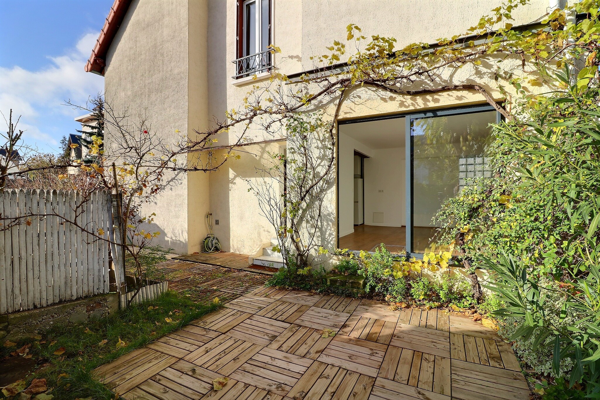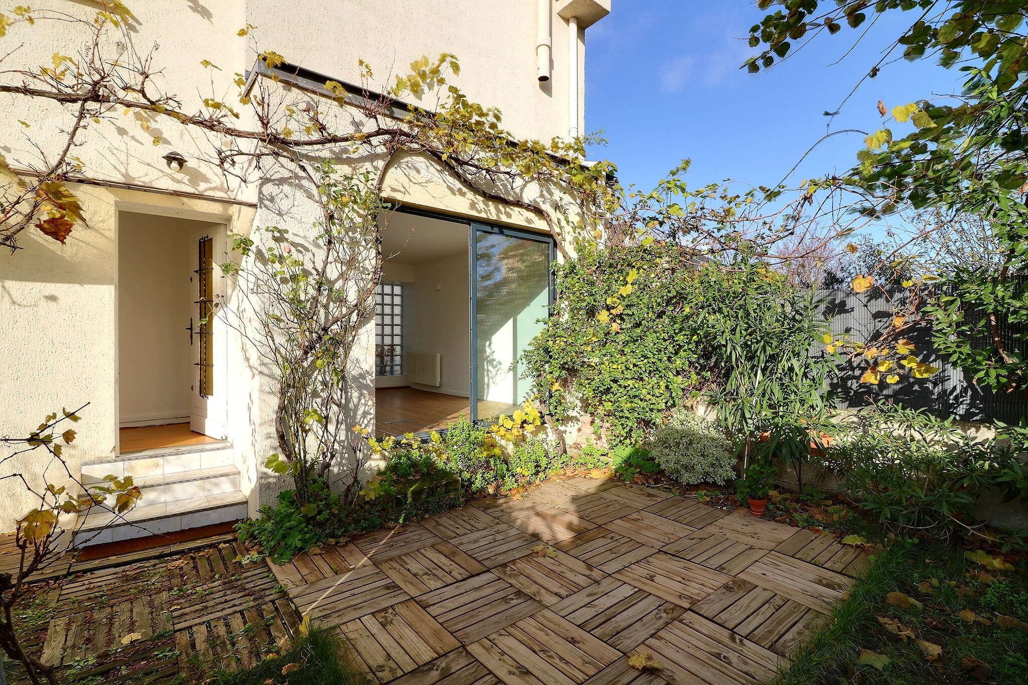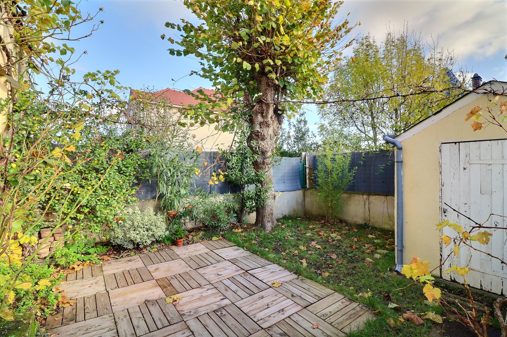 Charmante maison de 73 m² habitable avec une terrasse / jardin arboré d’environ 60 m², exposée plein Sud, elle se compose :