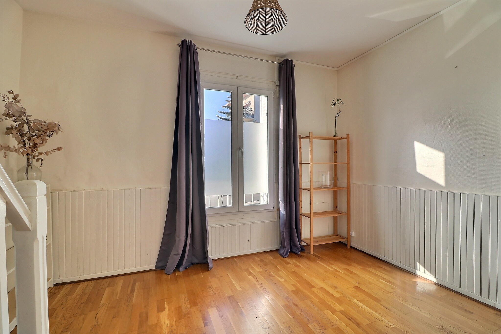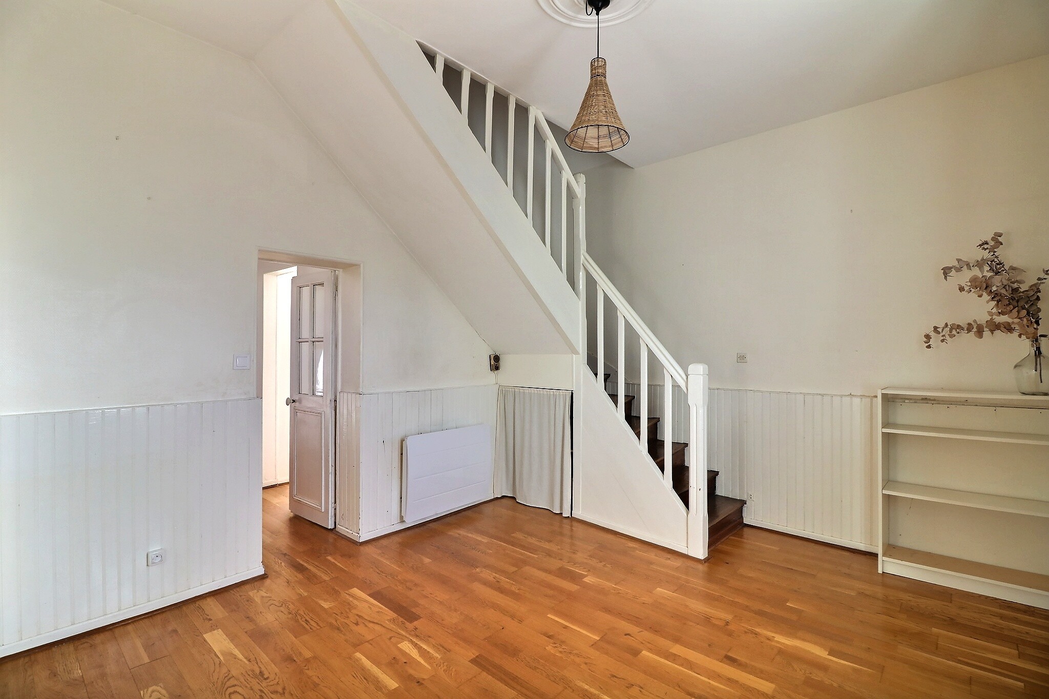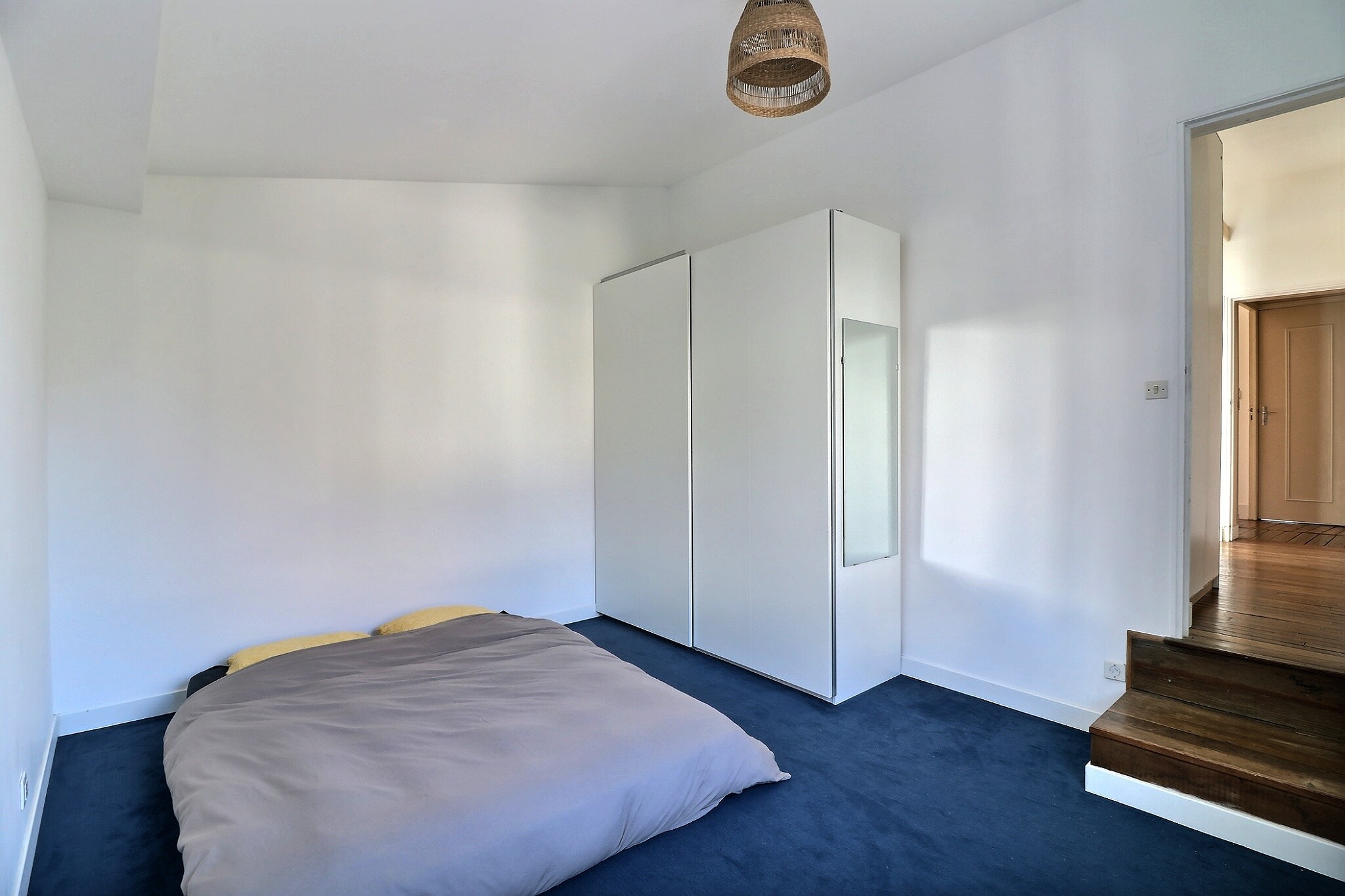 Le premier étage comprend une grande chambre avec une belle hauteur sous plafond, un espace petite chambre / bureau attenant, une 2ème chambre et une salle de bain.