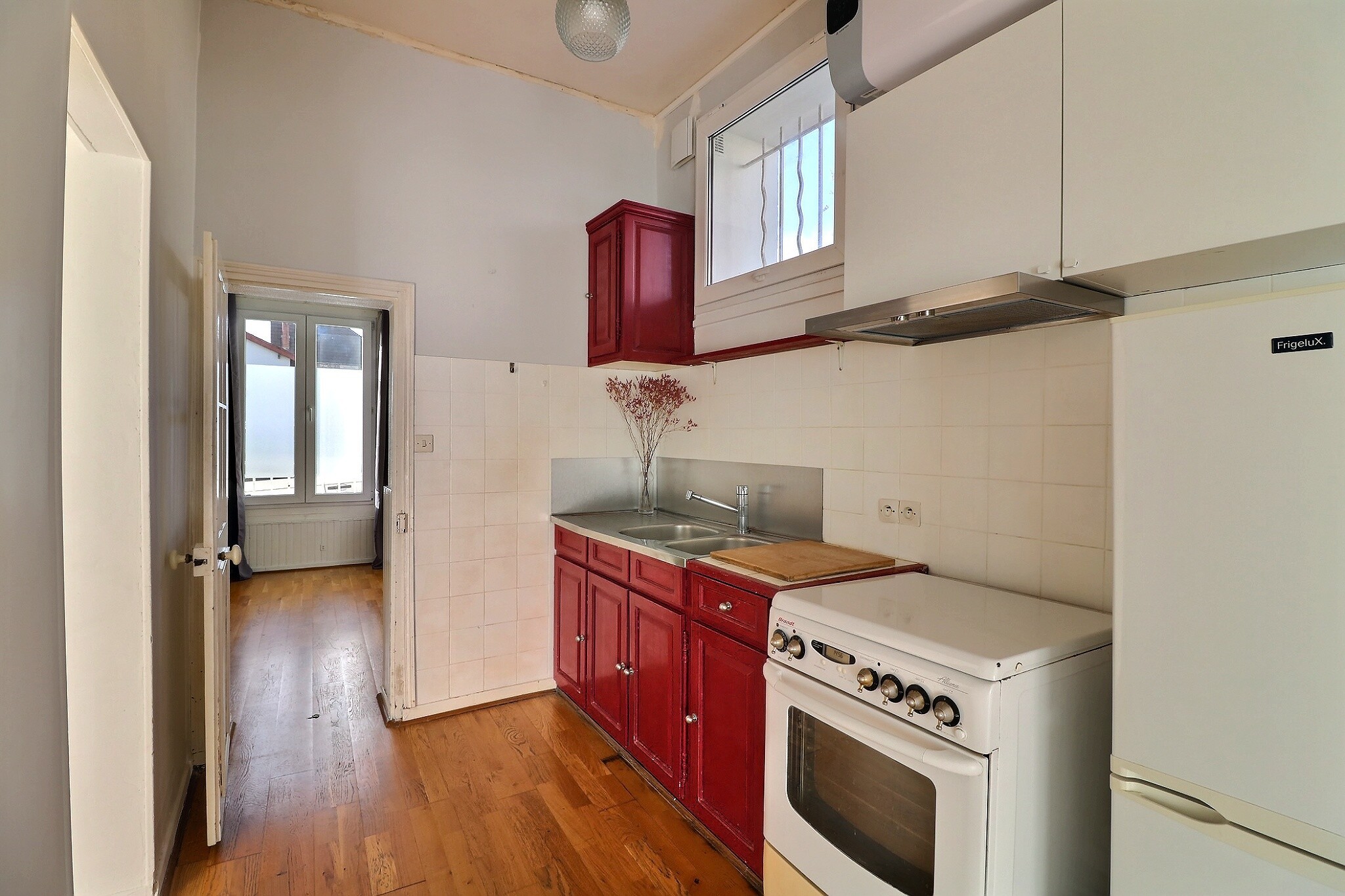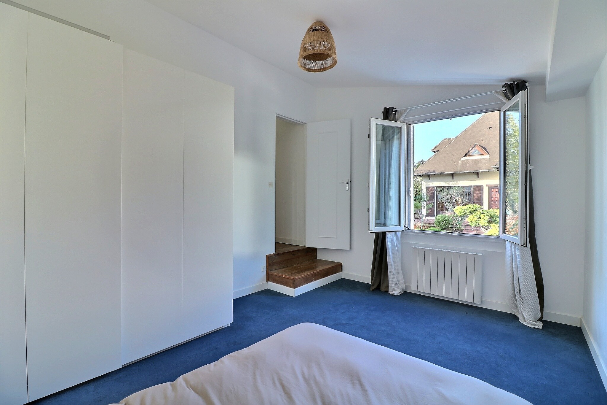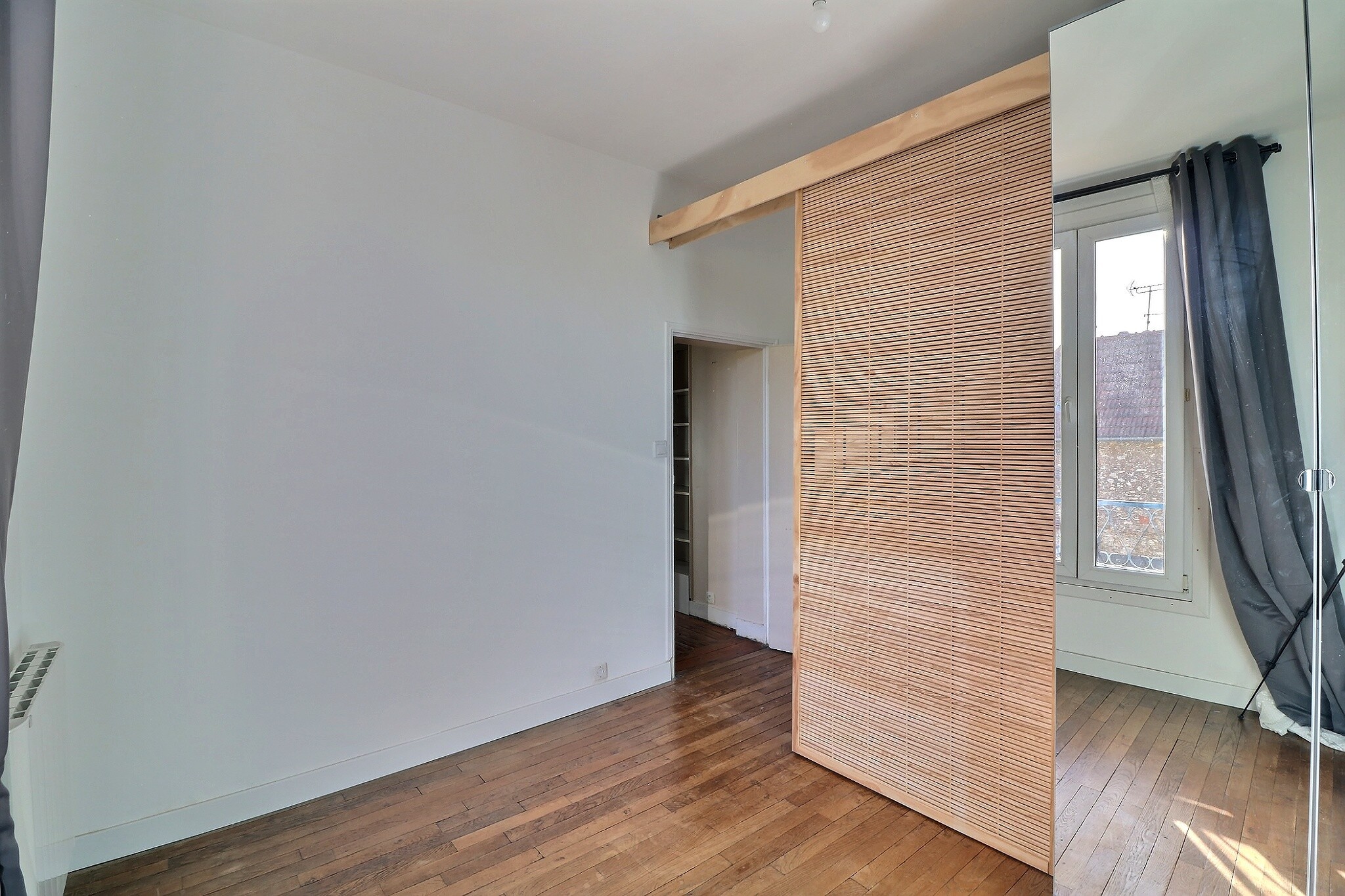 Le premier étage comprend une grande chambre avec une belle hauteur sous plafond, un espace petite chambre / bureau attenant, une 2ème chambre et une salle de bain.