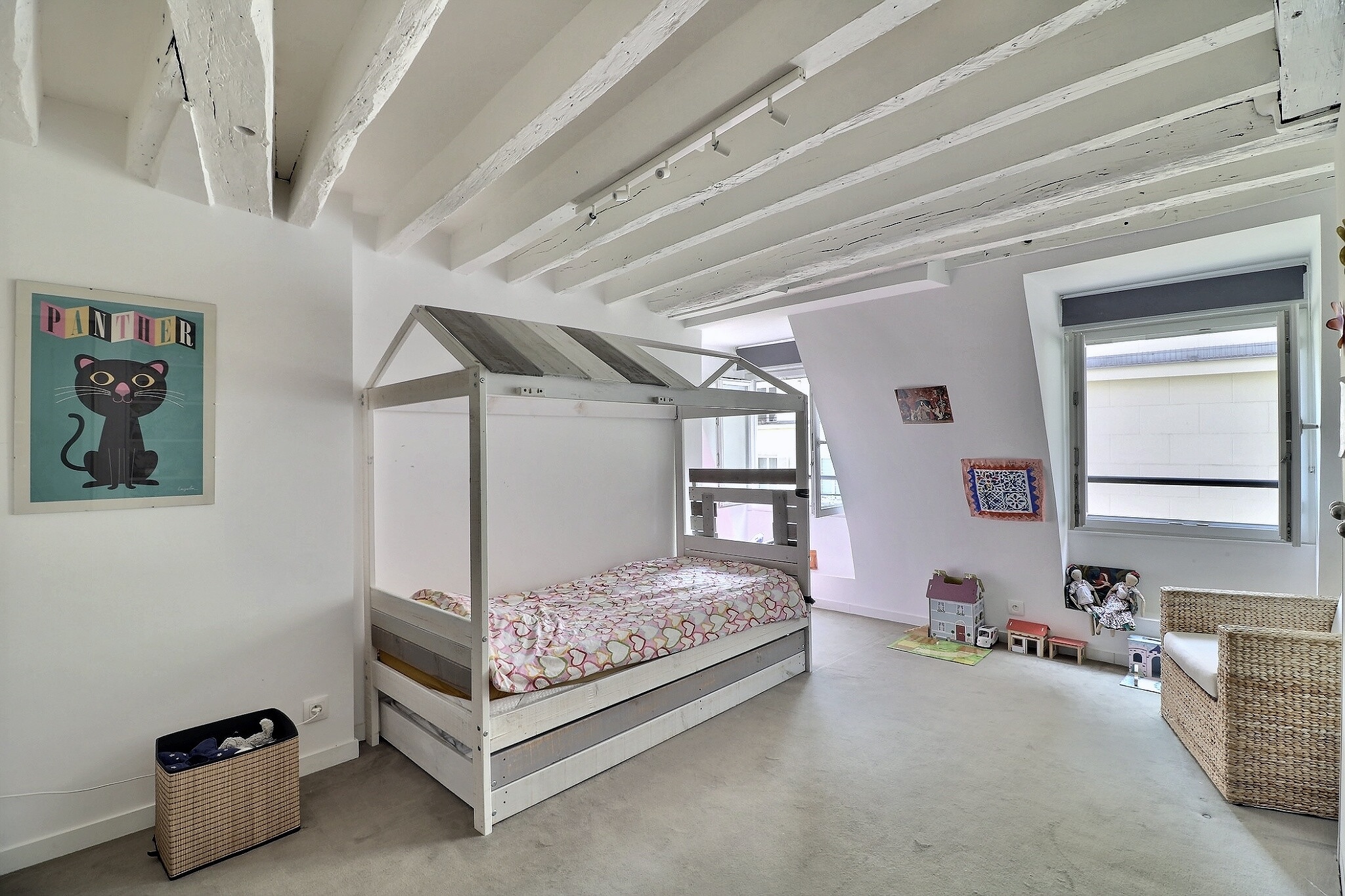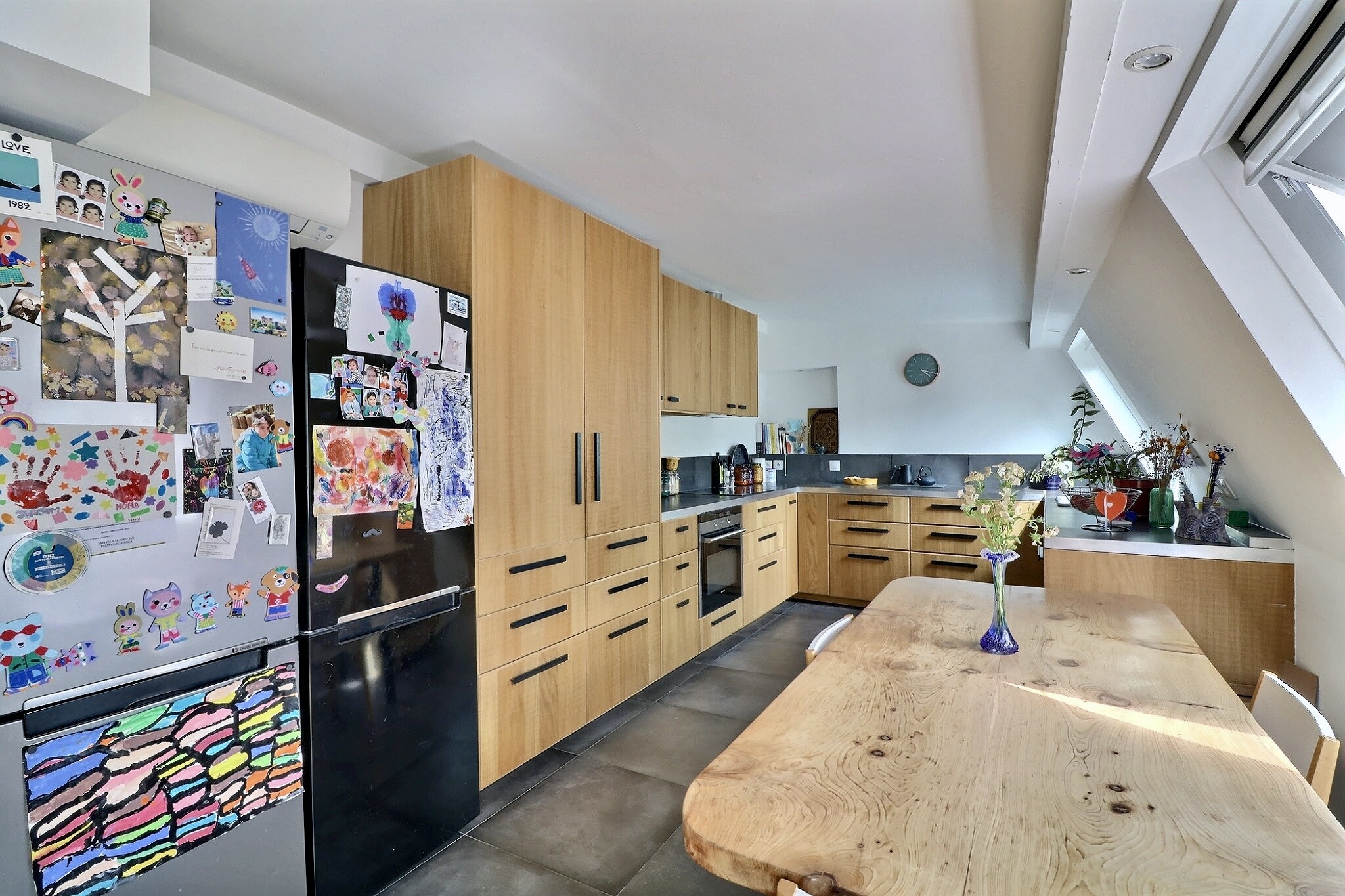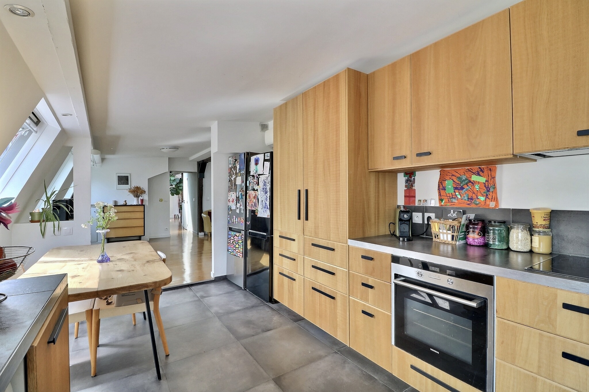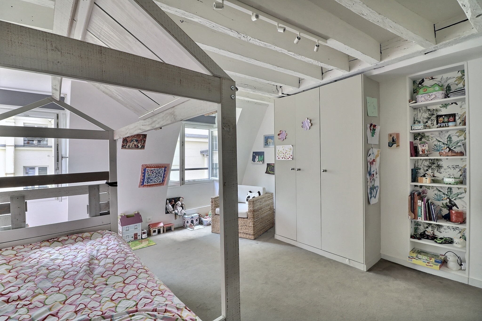 Un duplex Situé au 5ème et 6ème étage (derniers étages) d'un immeuble en pierre de Paris parfaitement entretenu.