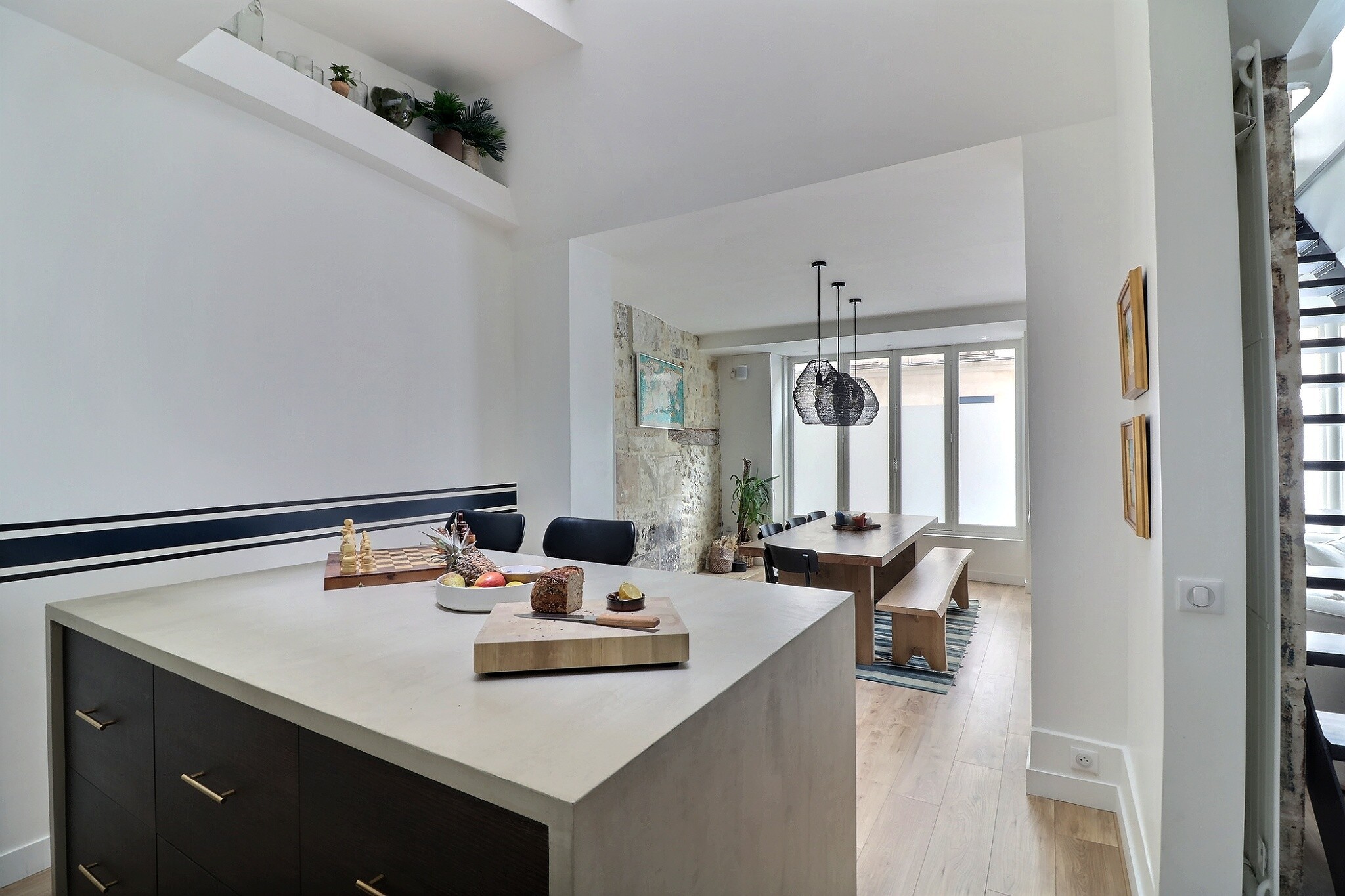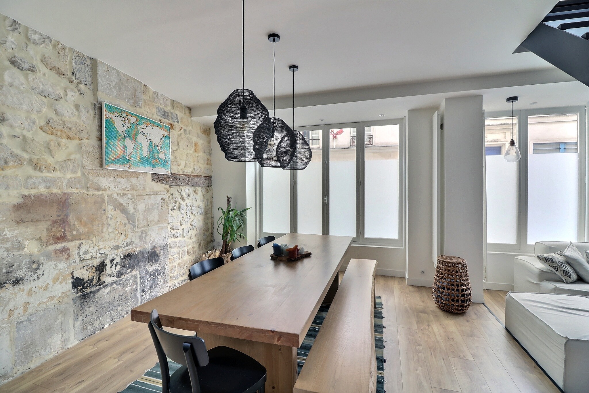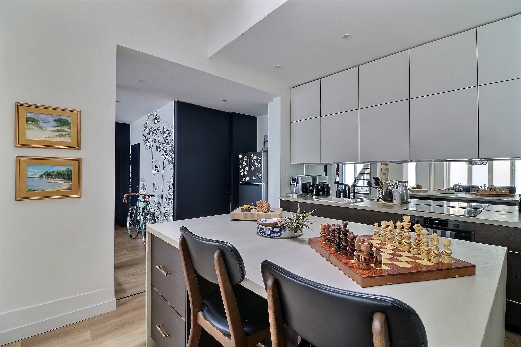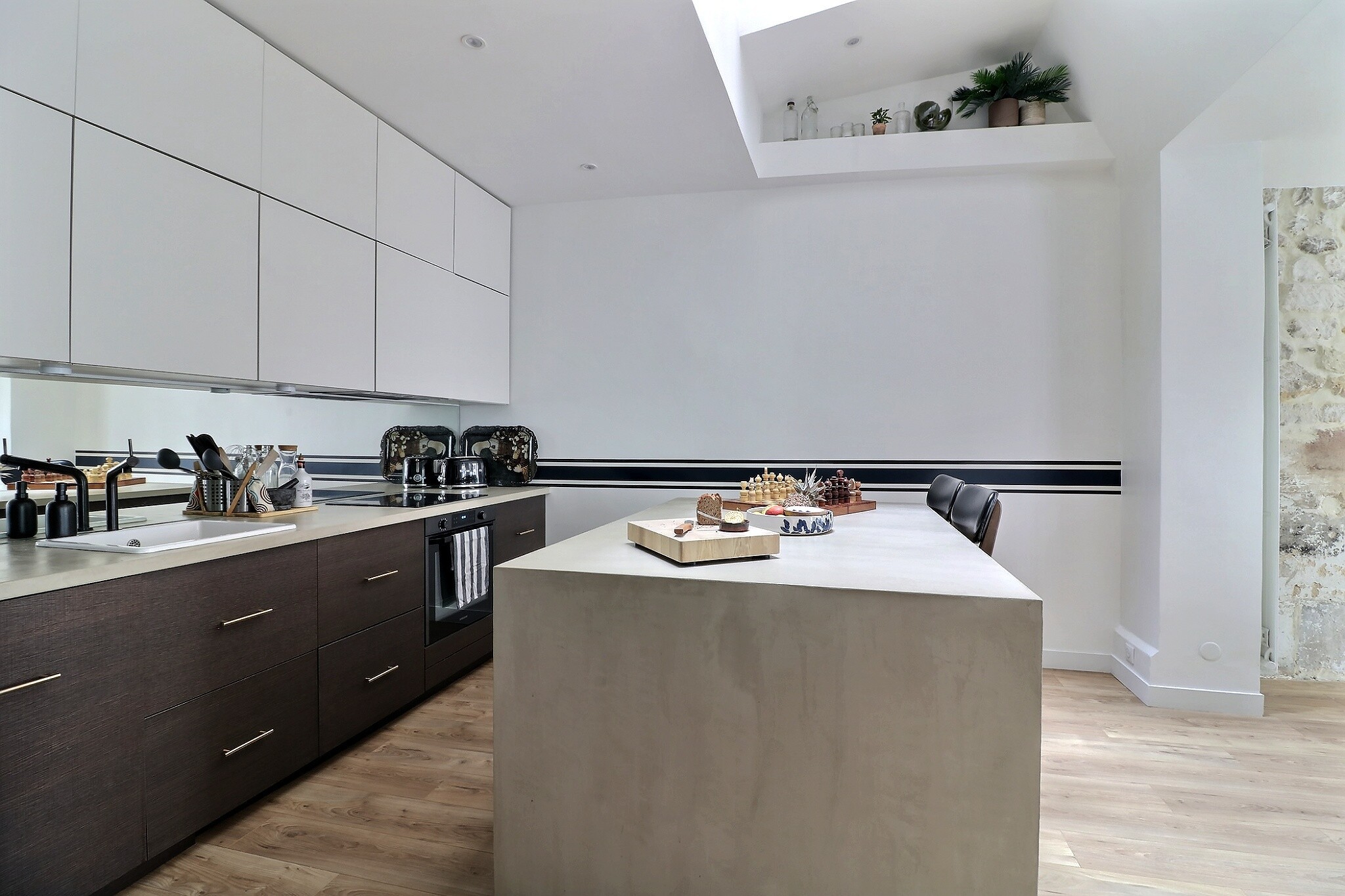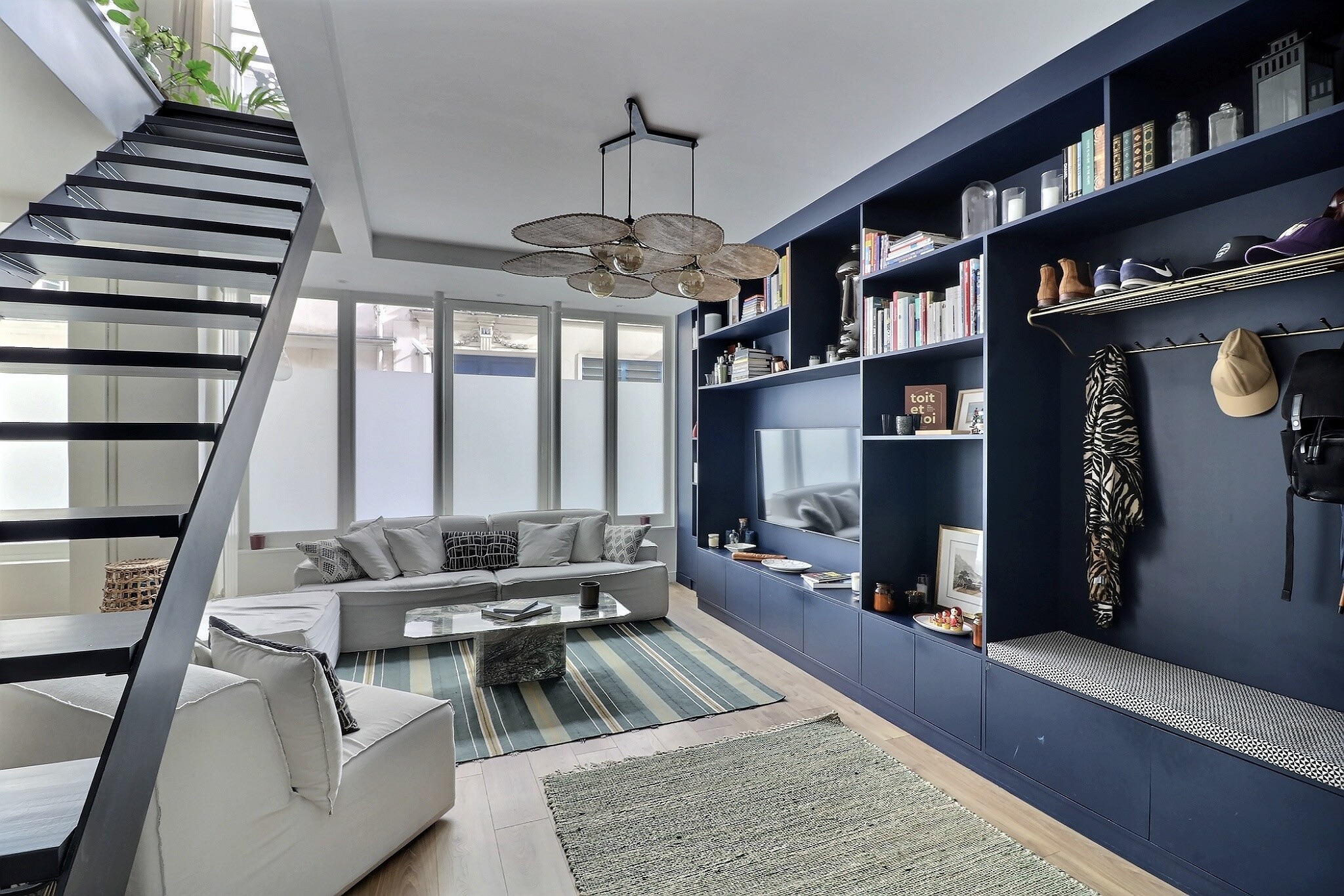 Ce duplex de 5 pièces au style loft séduit immédiatement de par ses beaux volumes avec une belle hauteur sous plafond, il se compose d'un vaste espace de réception composé d'un séjour avec une bibliothèque sur mesure, d'une cuisine ouverte aménagée et équipée haut de gamme donnant sur une salle à manger avec une verrière zénithale. Au premier étage, un espace nuit comprenant trois chambres avec placards sur-mesure dont une ayant une salle d'eau attenante, un coin dressing / bureau, une salle de bain, un toilette indépendant et un espace extérieur.