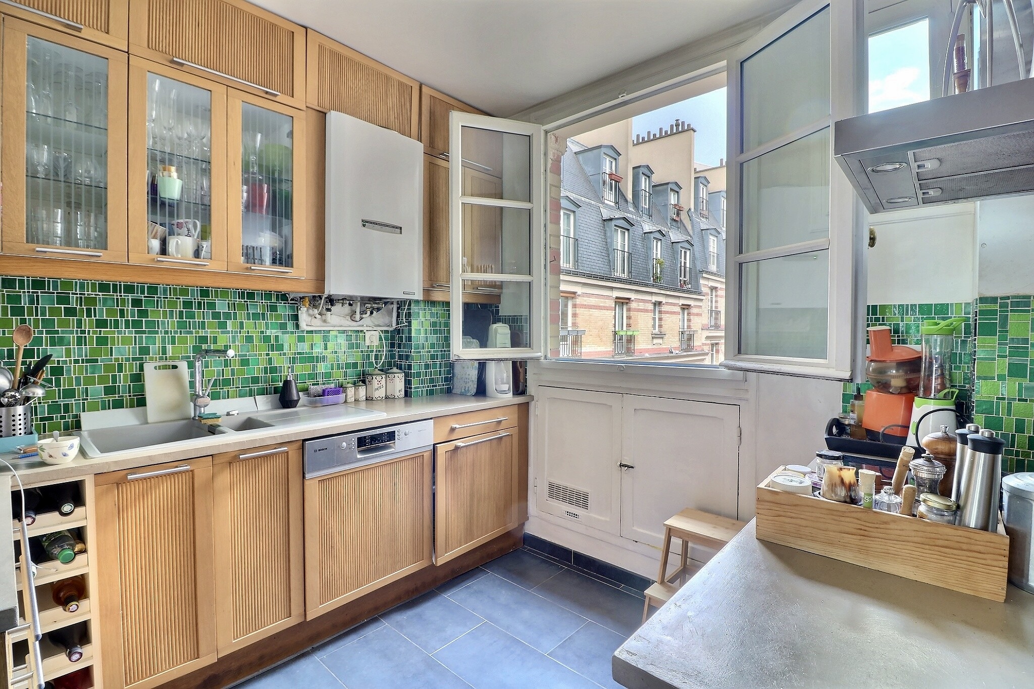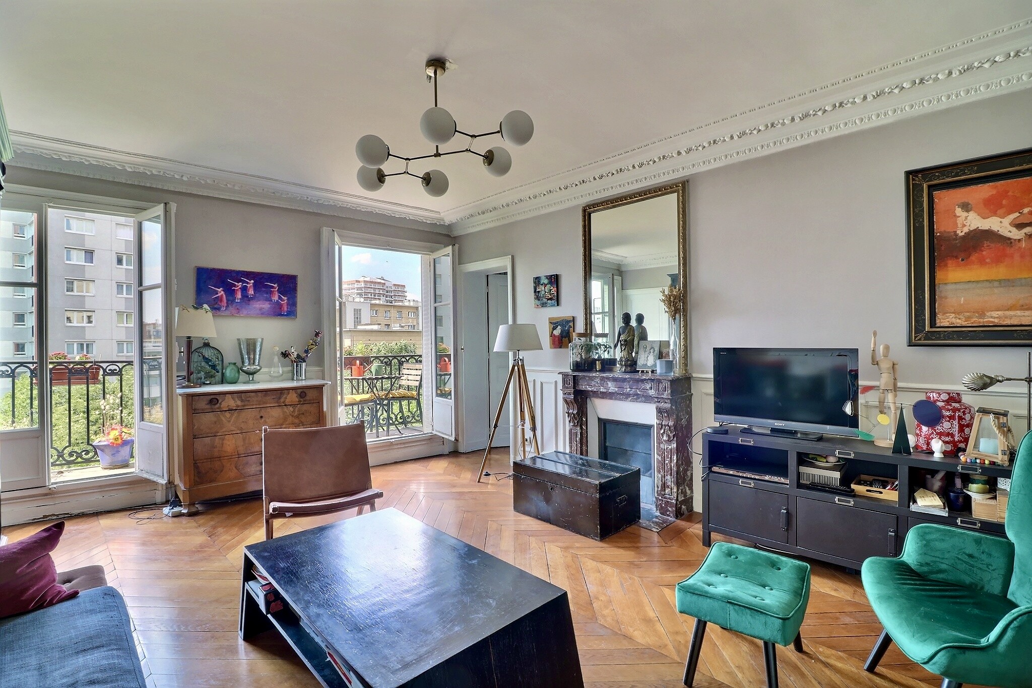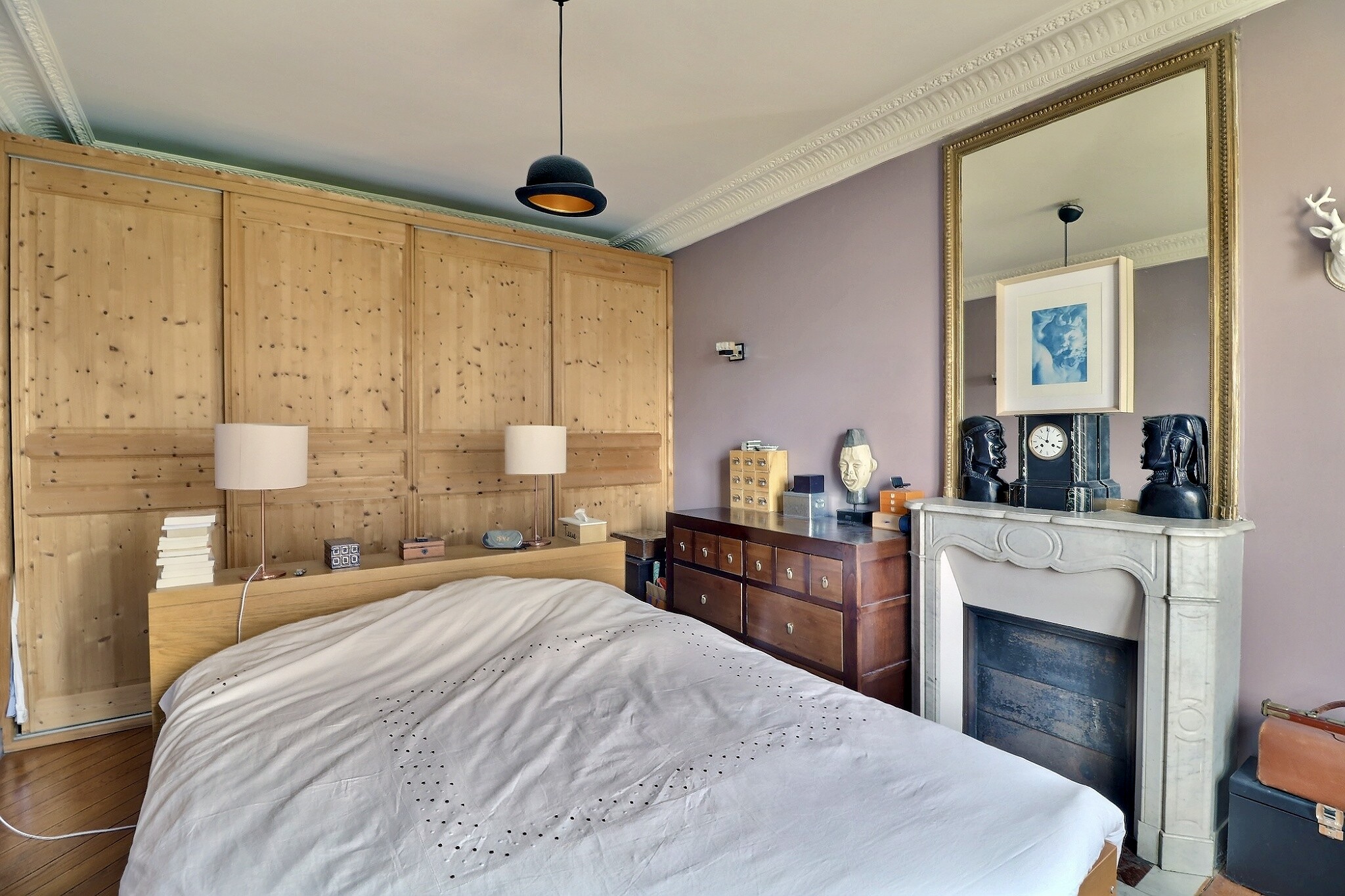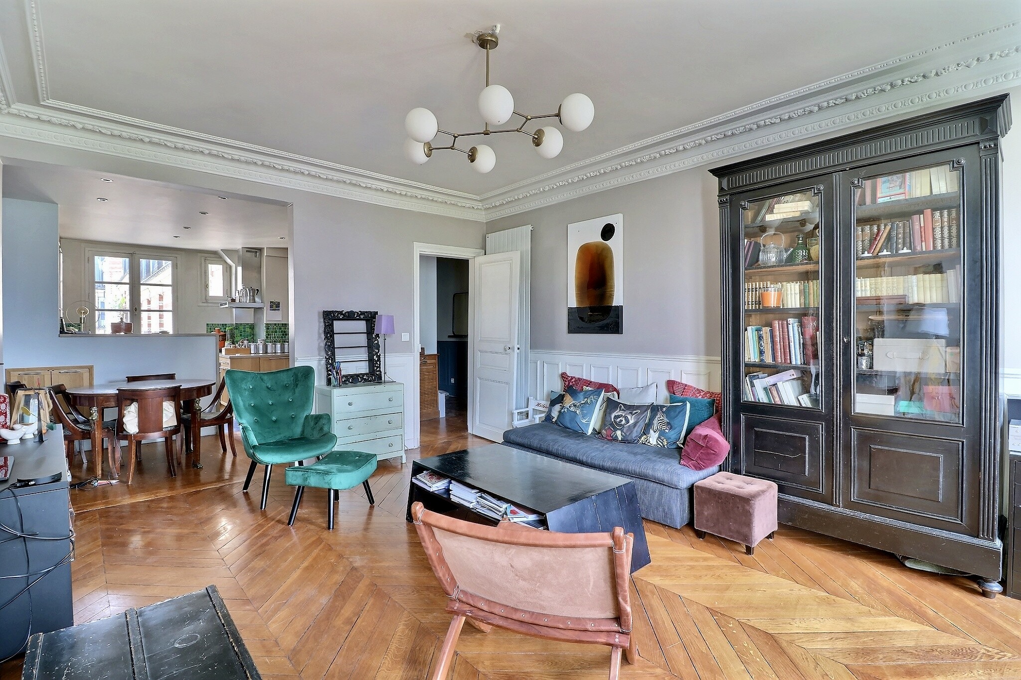 Situé au 5ème étage avec ascenseur, très élégant 3/4p en très bon état de 87m2 Parquet, moulures, cheminées, cimaises, belle hauteur sous plafond... tous les atouts du charme de l'ancien pour un appartement au confort contemporain : Cuisine ouverte aménagée et équipée (au gaz), vaste salon, spacieuse salle de bains avec Balnéo et douche à l'italienne