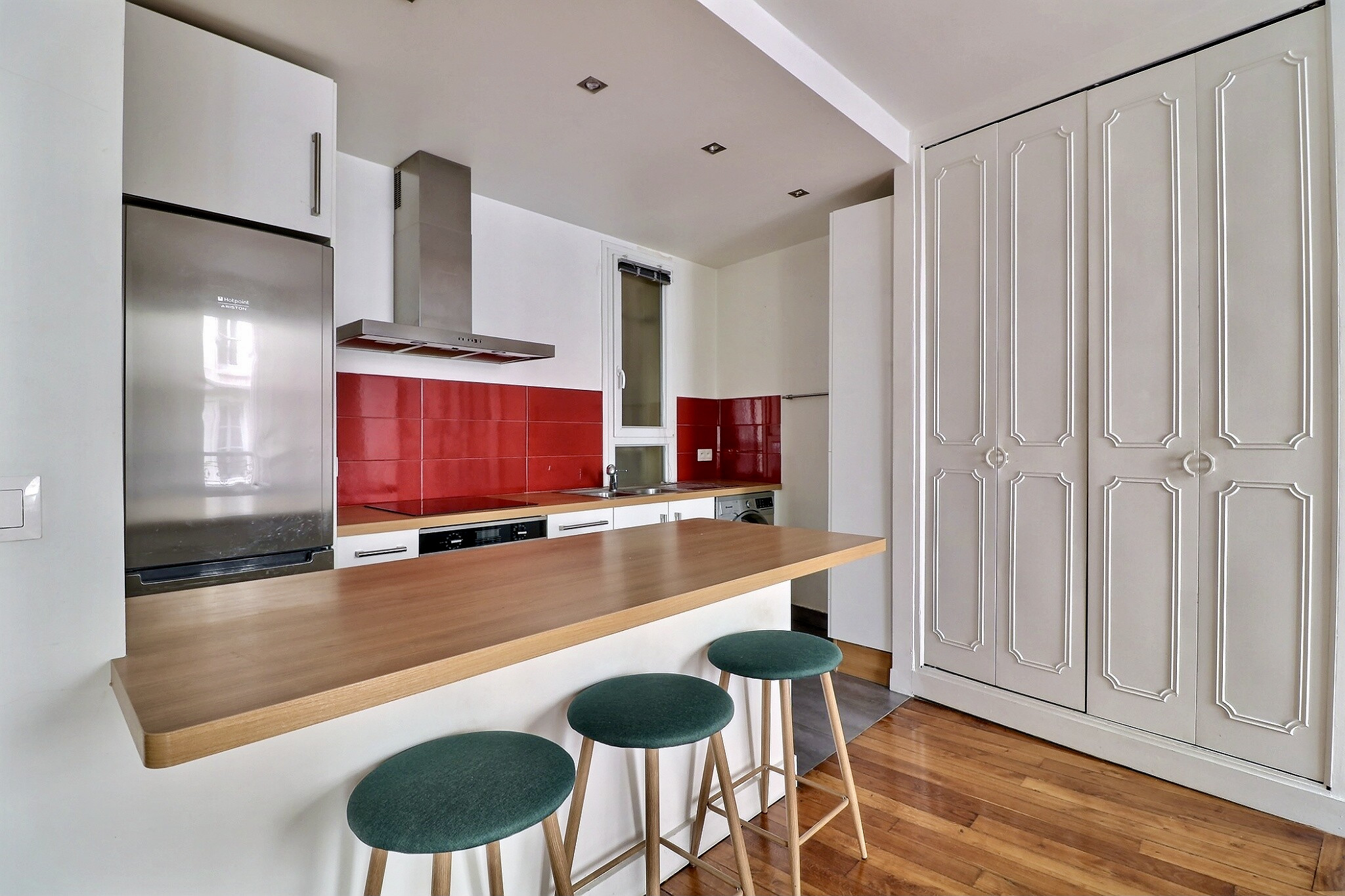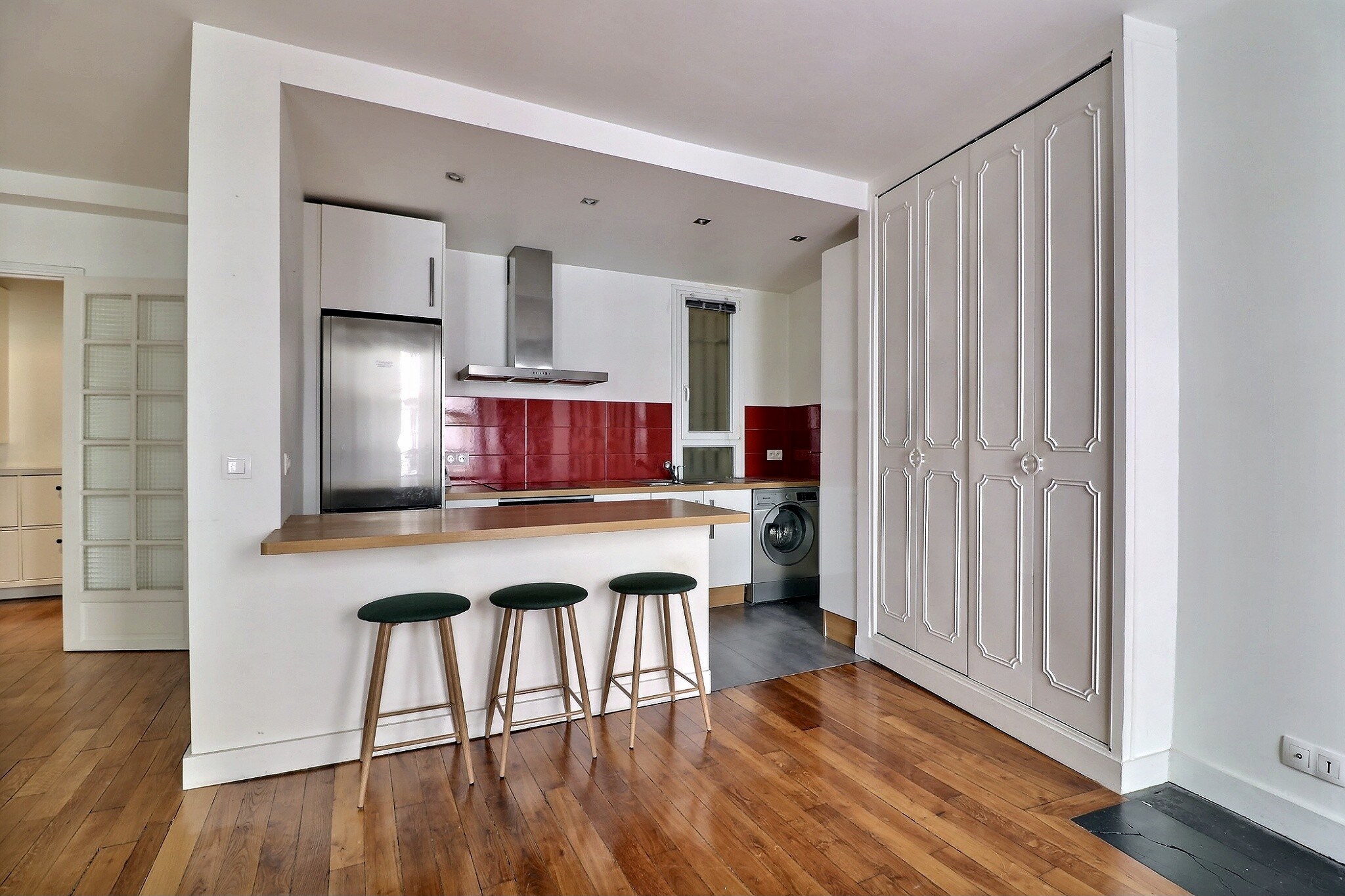 En très bon état, cet appartement sans perte de place à su conjuguer esprit contemporain et charme de l’ancien. Il profite de nombreux aménagements de confort, tel que des radiateurs à inertie et des rangements sur mesure.
