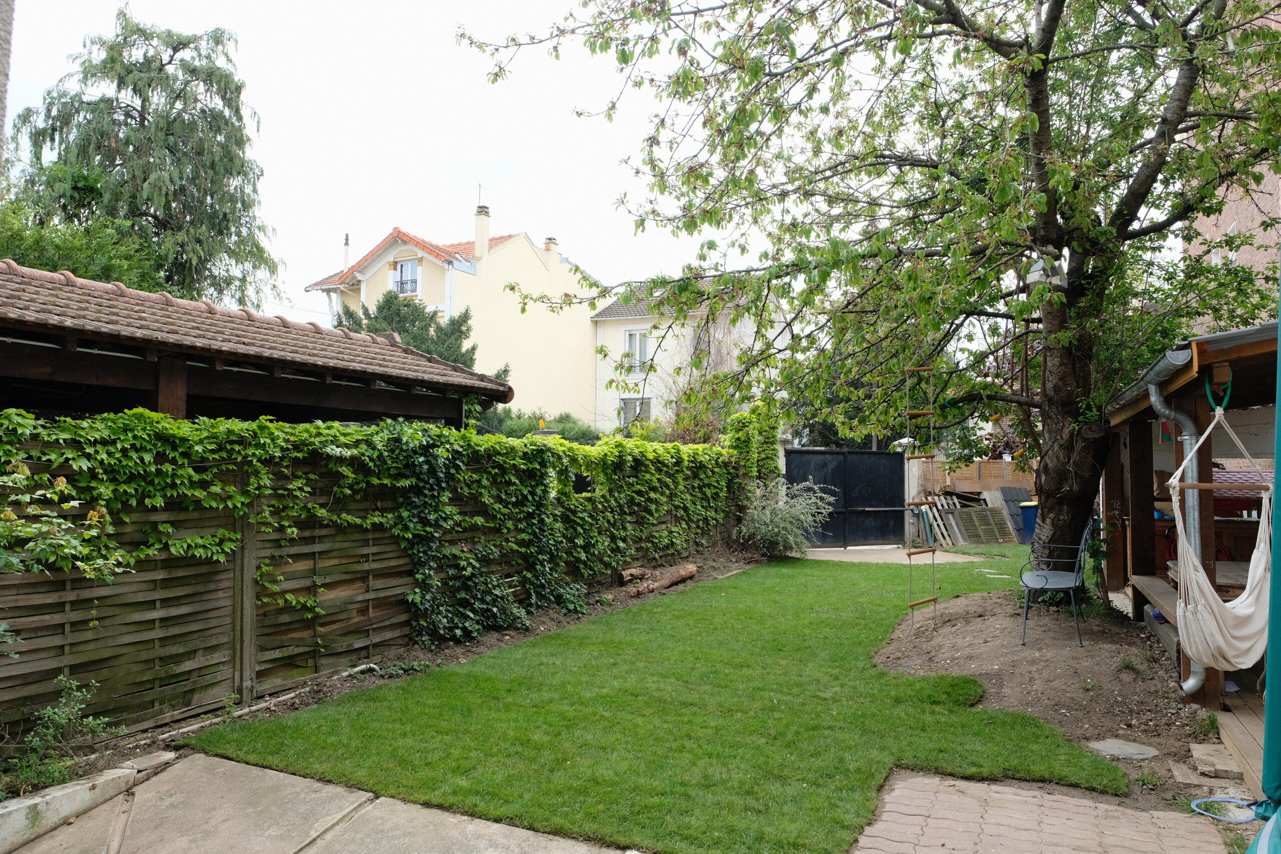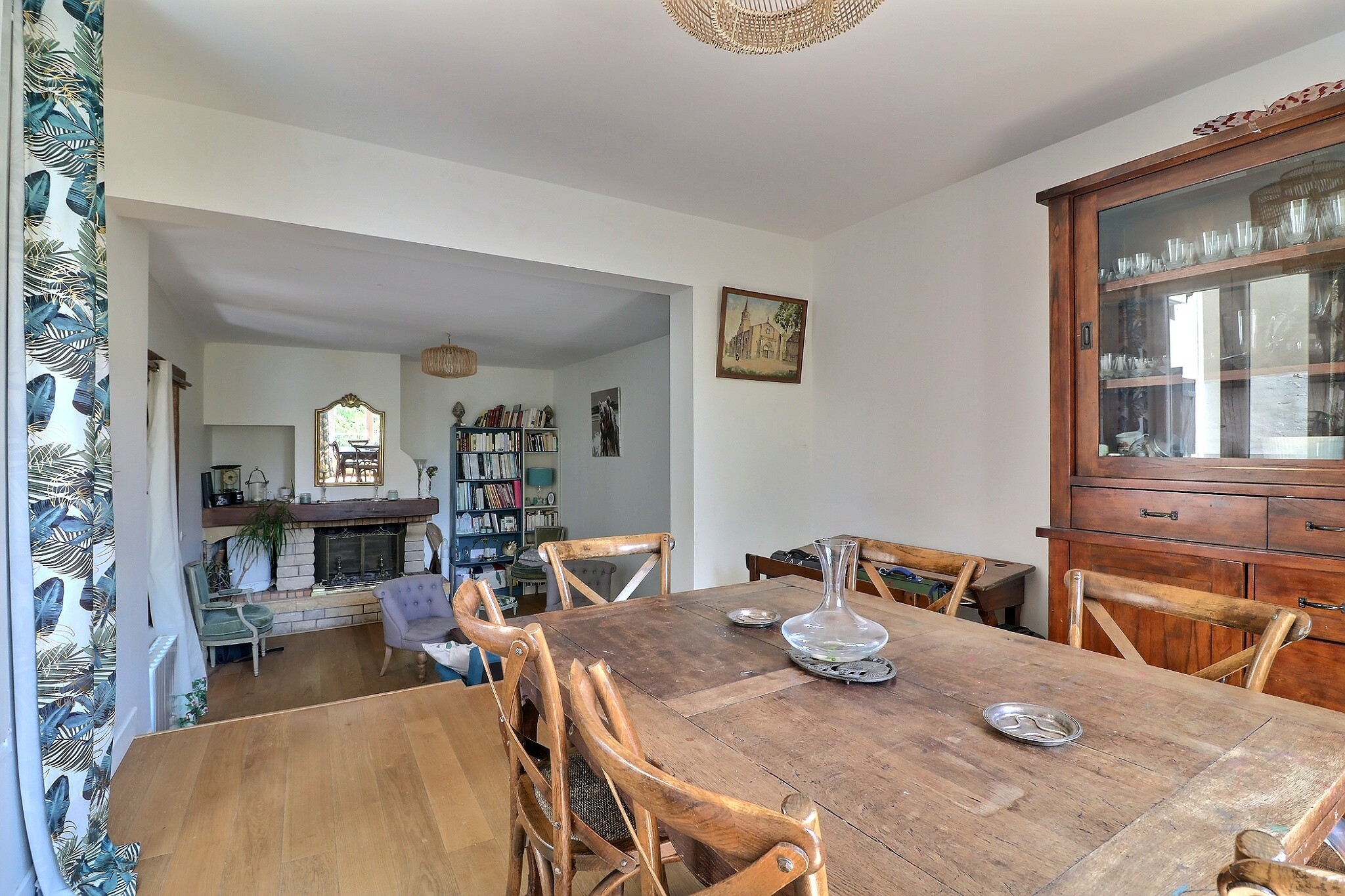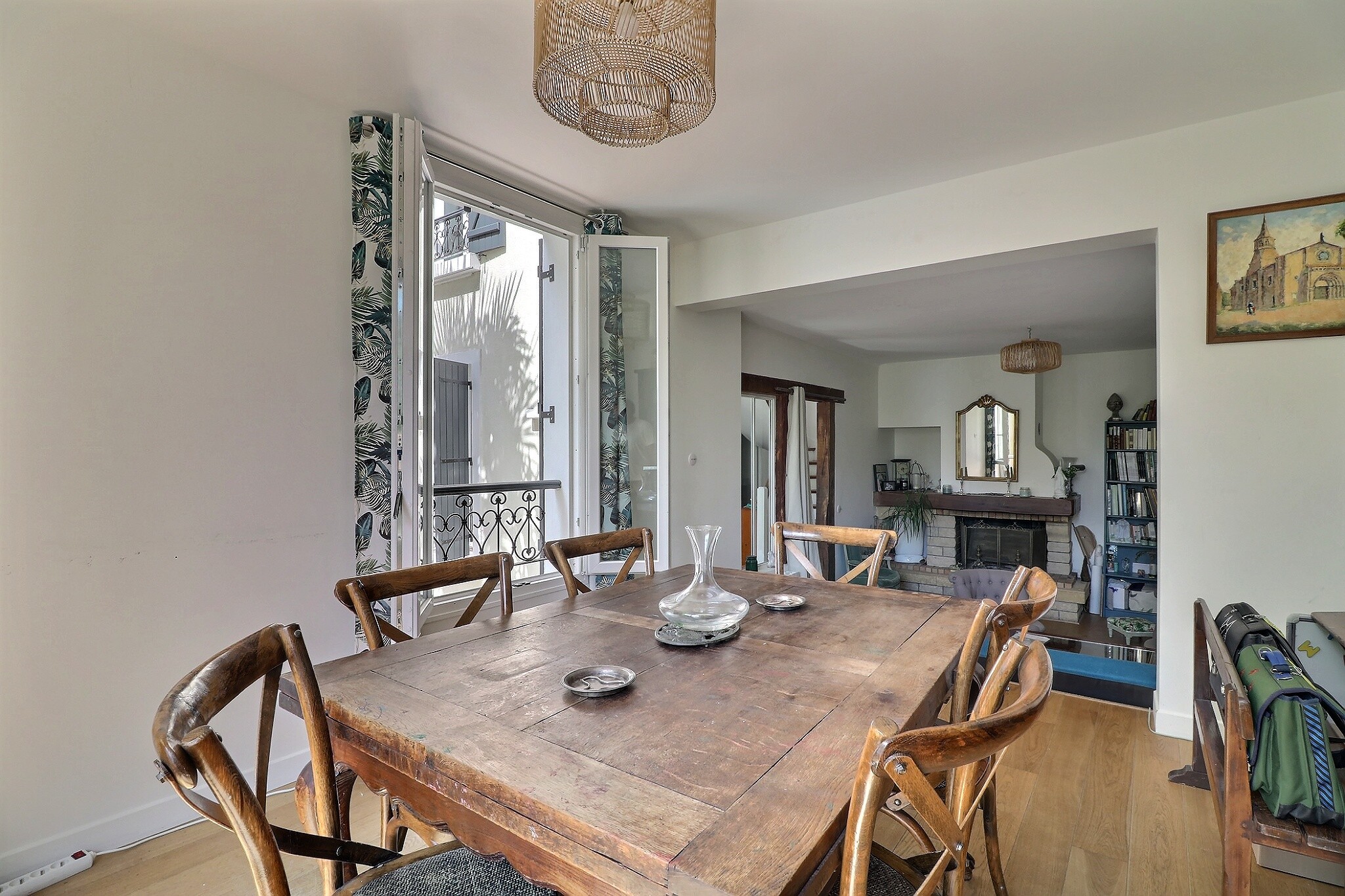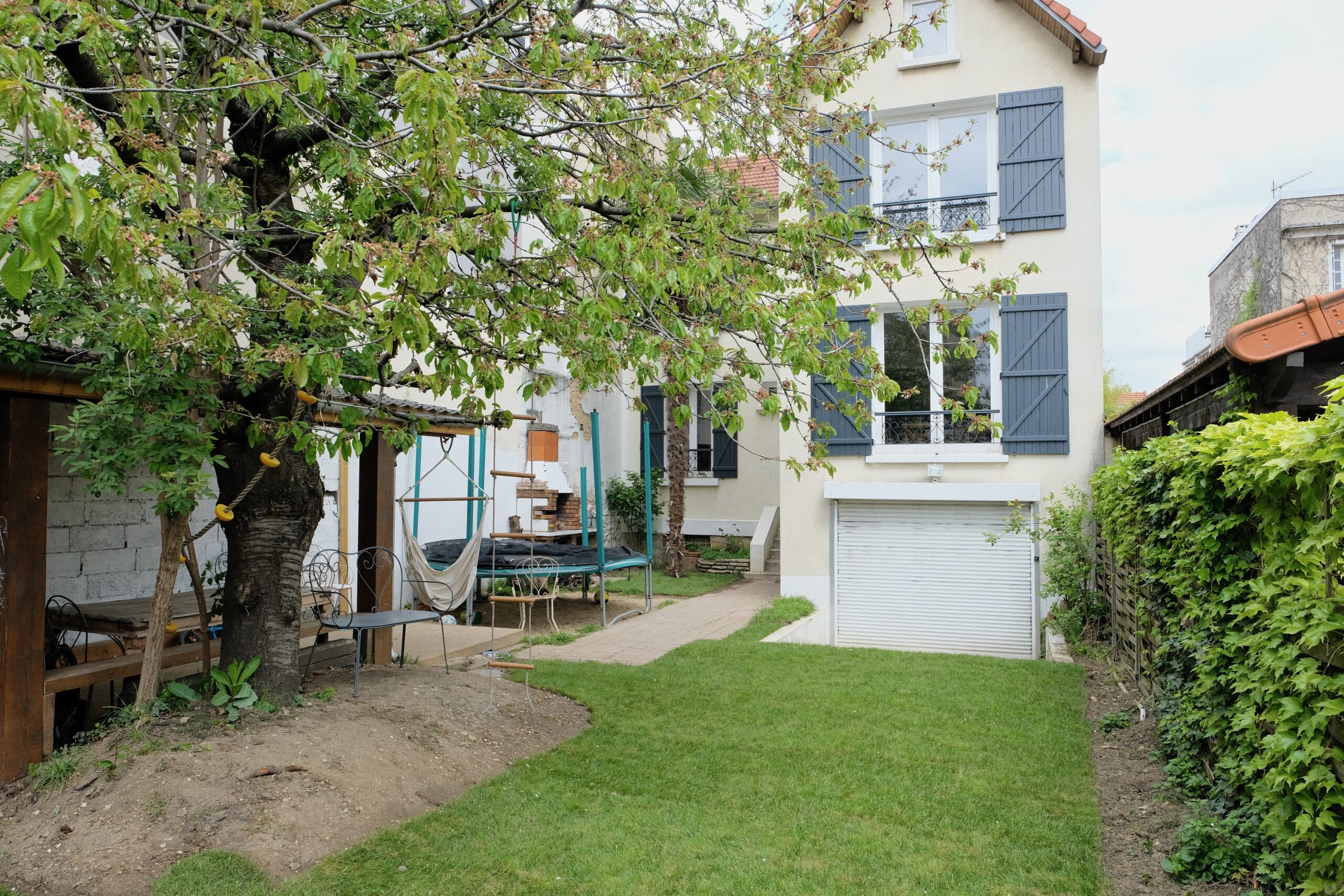Lumineuse et très charmante maison familiale nichée au fond d'un Jardin de 200m2 ; en très bon état et composée au 1er niveau : d’un salon, d’une salle à manger et d’une cuisine aménagée, toilettes séparés et accès au sous-sol.