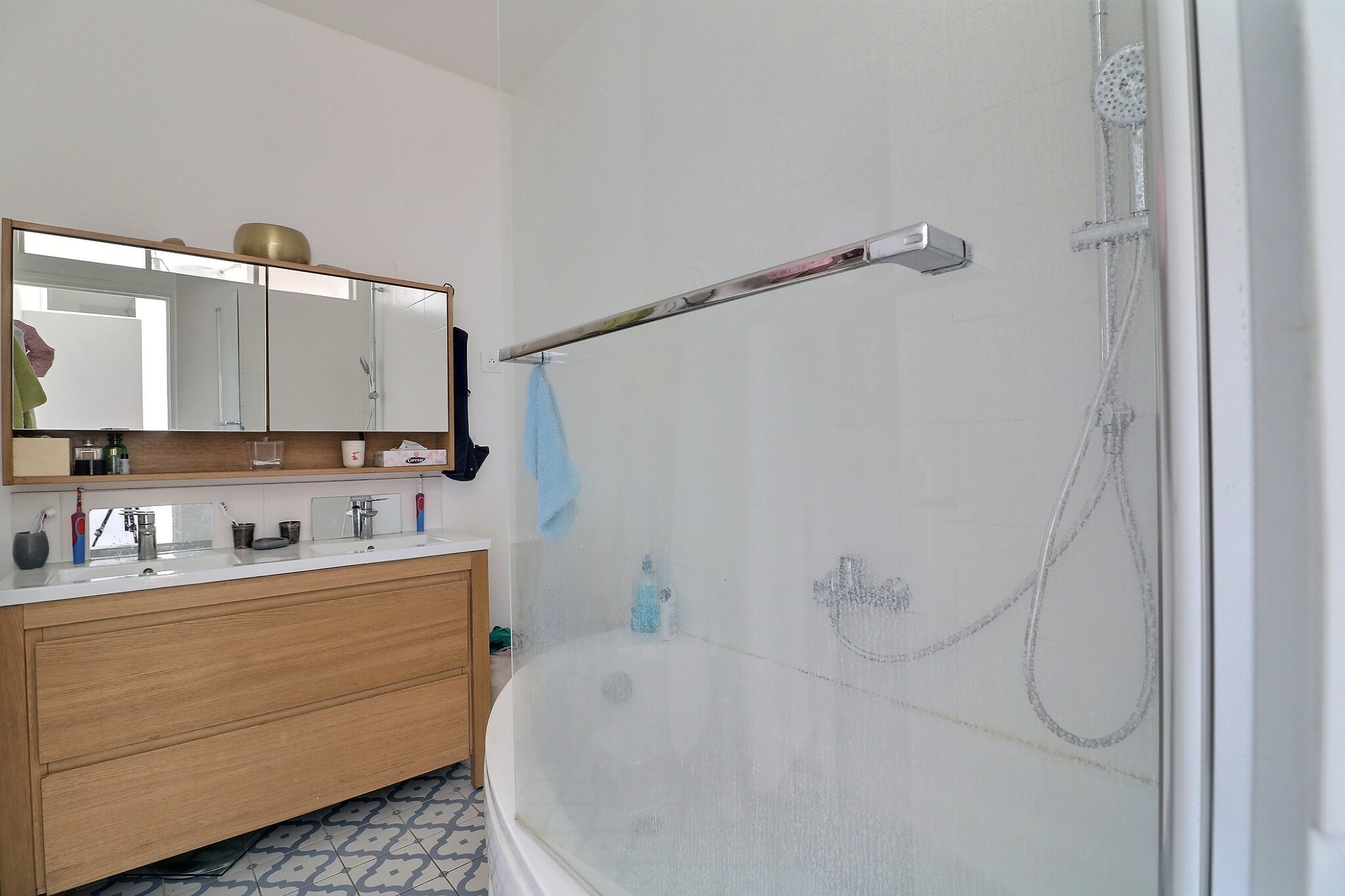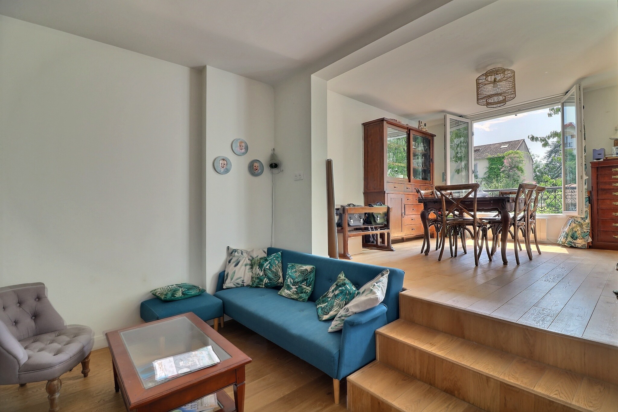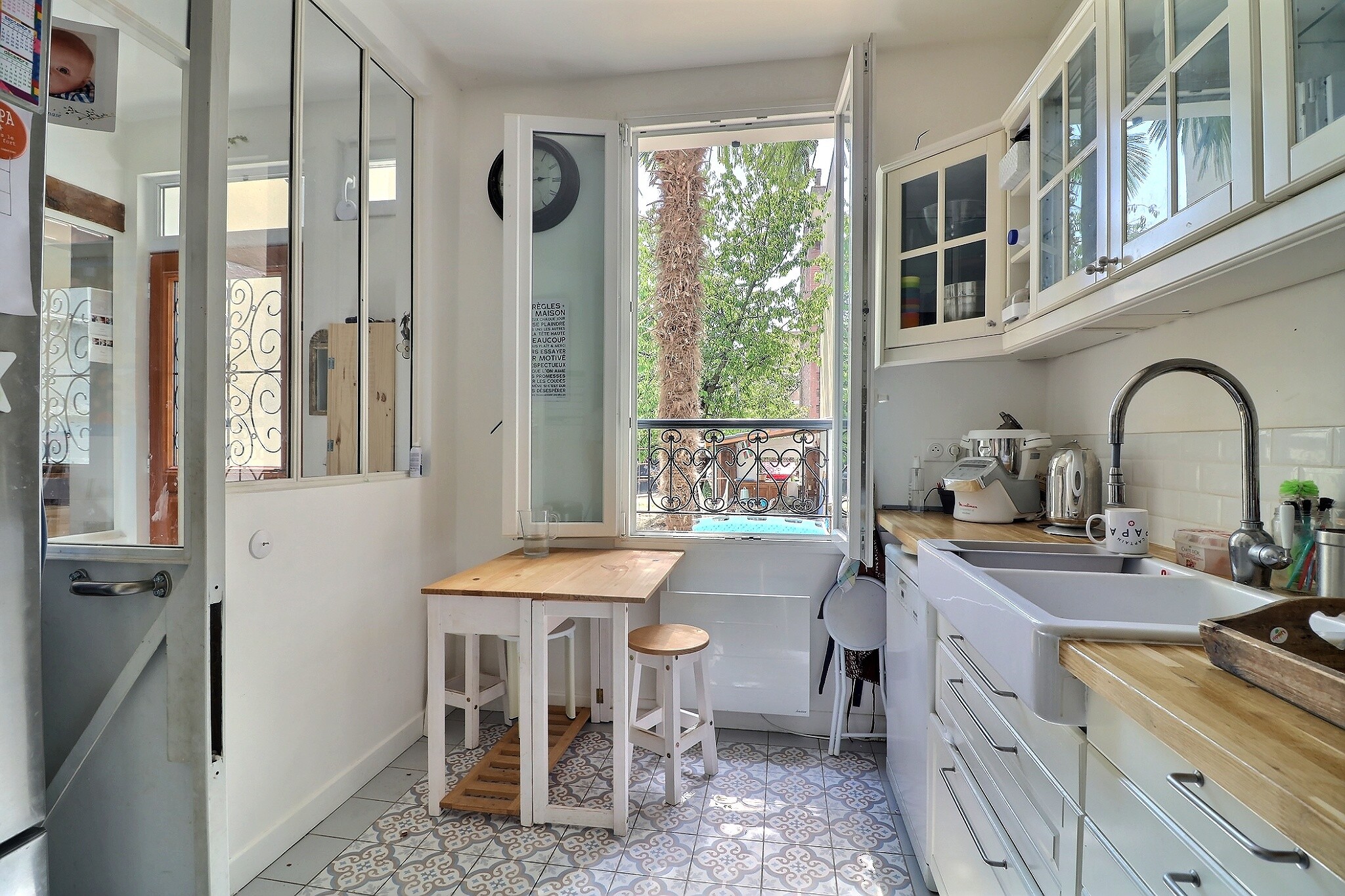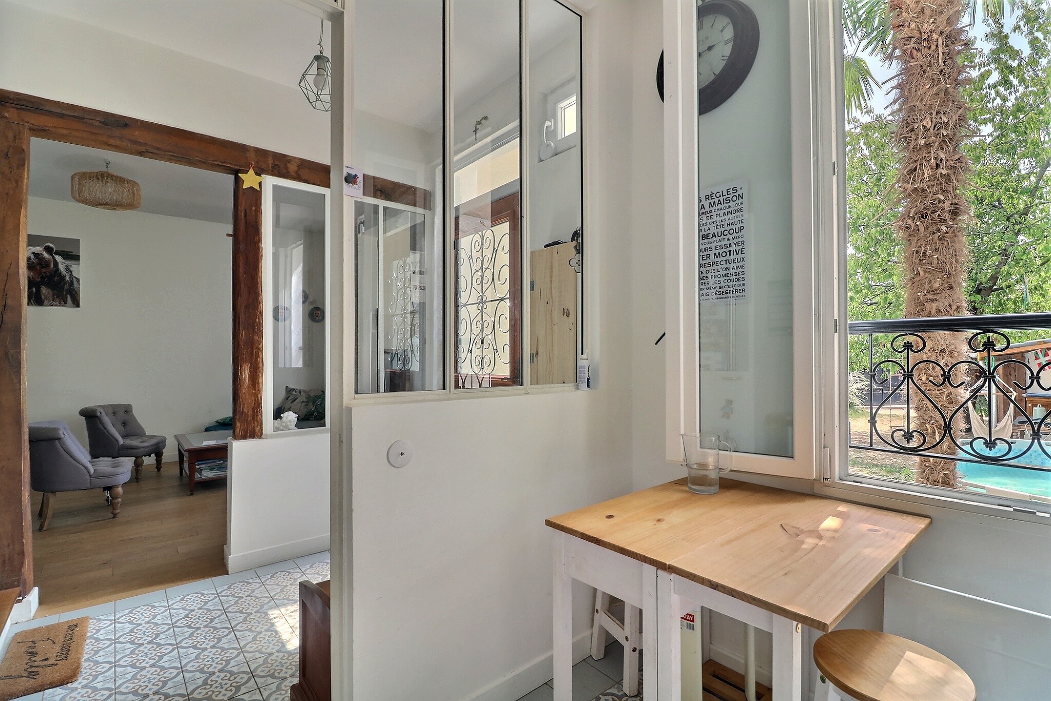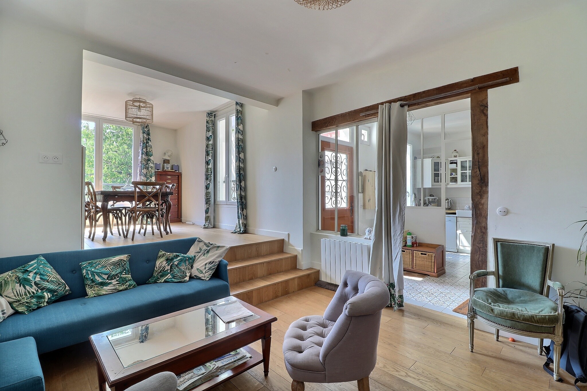 Lumineuse et très charmante maison familiale nichée au fond d'un Jardin de 200m2 ; en très bon état et composée au 1er niveau : d’un salon, d’une salle à manger et d’une cuisine aménagée, toilettes séparés et accès au sous-sol.